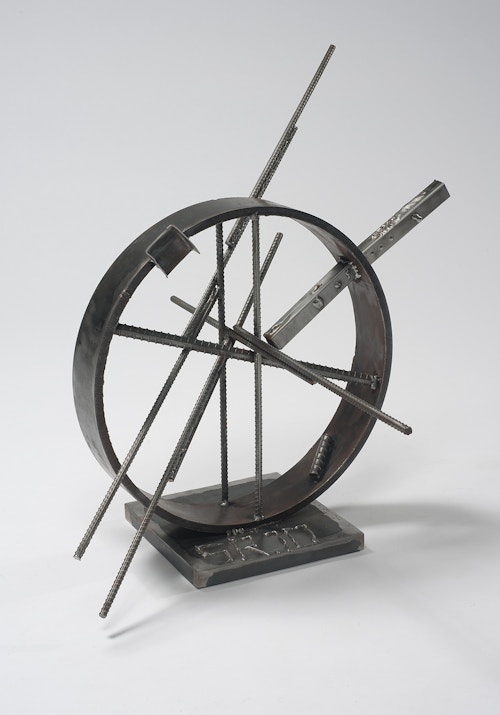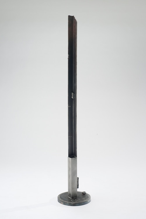 Throughout his practice, Ruby has confronted the limits of rationality and rebellious impulses of the untrained or liminal individual against the confines of social order. The conspicuous or bad welds incorporated into these works, sometimes referred to as pocked welds, are the kind made by unskilled or amateur welders, and prone to structural failure. As with his previous large metal sculpture Pig Pen, these raw metal works confront the contradictions and burdens within the precarious mechanisms of power.