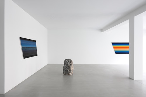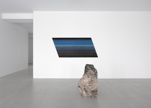 Often emerging from simple gestures — folding, cutting, casting, dripping or bending — François allows chance, instability and impermanence to actively shape his work. He frequently works with utilitarian or industrial materials, including sand, rubber, metal, paper, glass, wax and found objects. In François’s practice, small interventions or adjustments will trigger significant — often transformative — effects that can generate complex meanings. Painting is a relatively new pursuit, one that connects to his late father, an amateur artist who repeatedly painted the same landscape. Reflecting on this act of repetition over time led François to develop his ‘roto’ technique as a reverse response to the endeavour: fast, mechanical, and non-observational, with a horizon endlessly replicated — always the same, yet subtly different; mechanical in process, yet still guided by the artist’s hand.