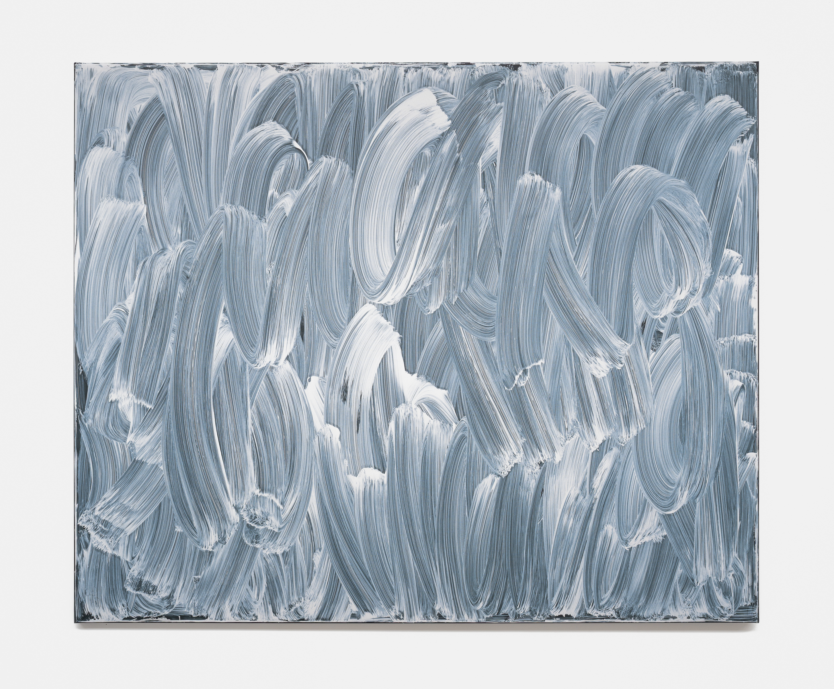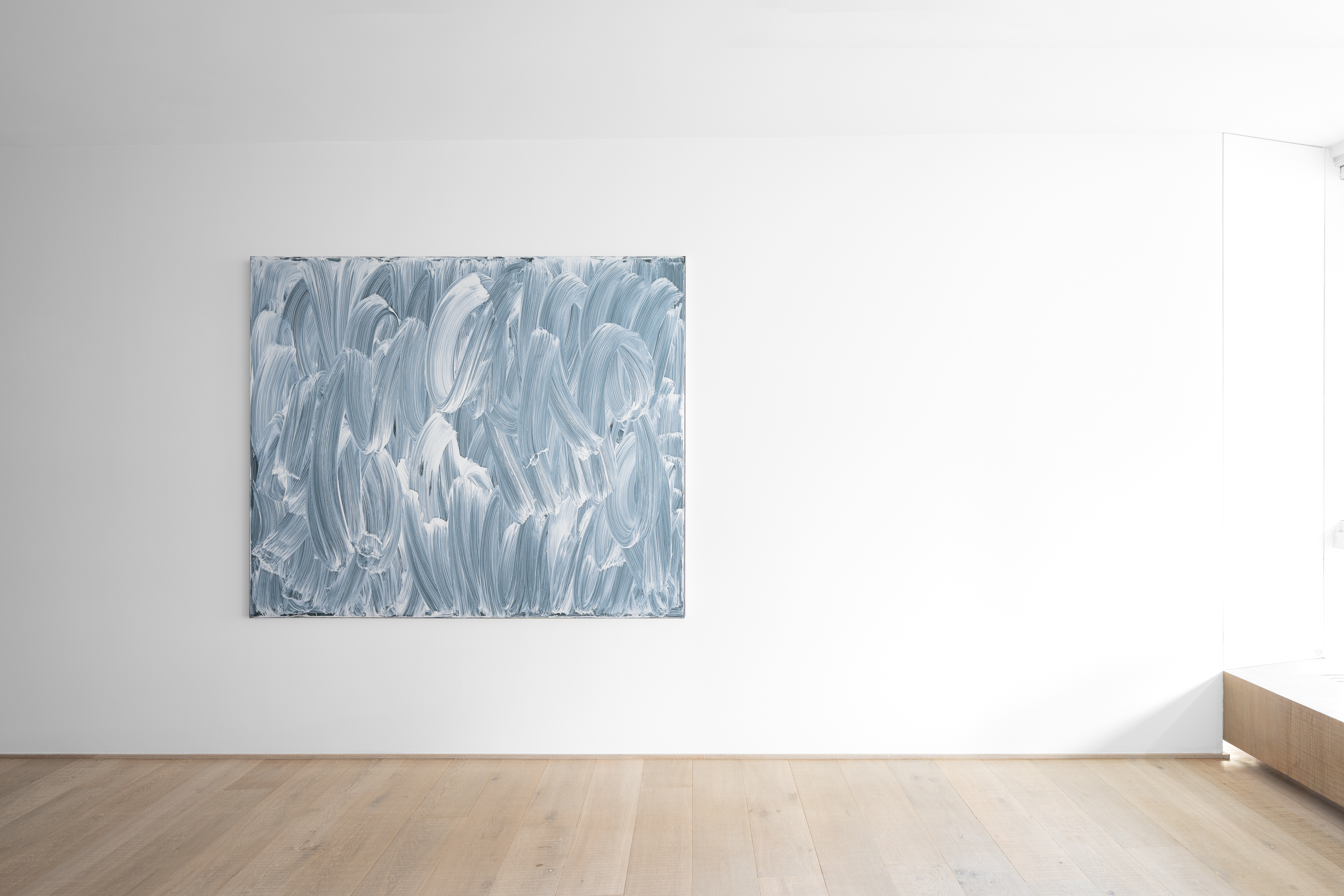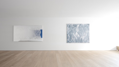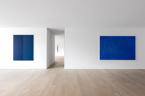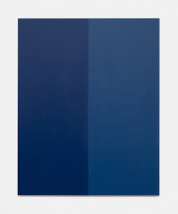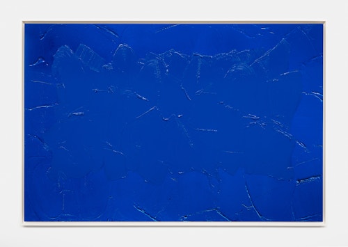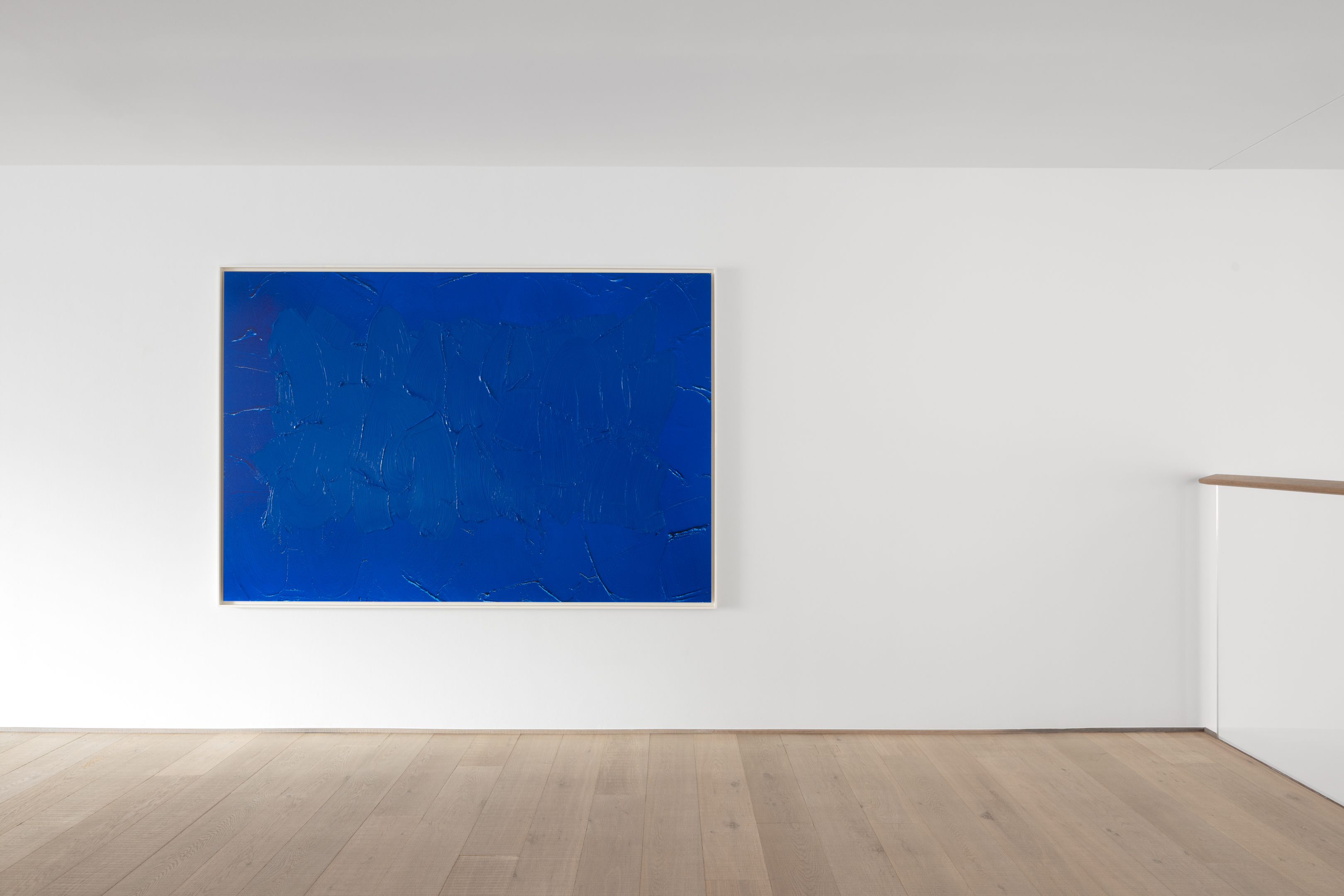 Finally, the juxtaposed-colour painting Bleu de France par Tollens et Ripolin (2025) addresses painting in its most elemental terms. Here, Lavier explores colour not for its representational potential, but as pure matter. In doing so, these works assert painting as a physical and material presence rather than a representational system, shifting attention from depiction to an immediate encounter with colour itself.