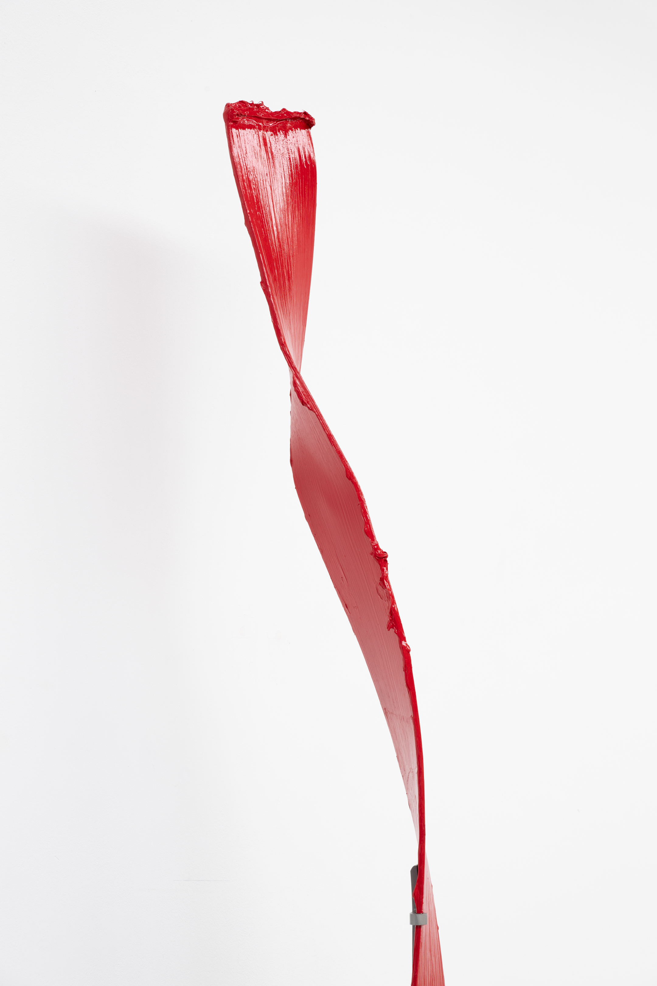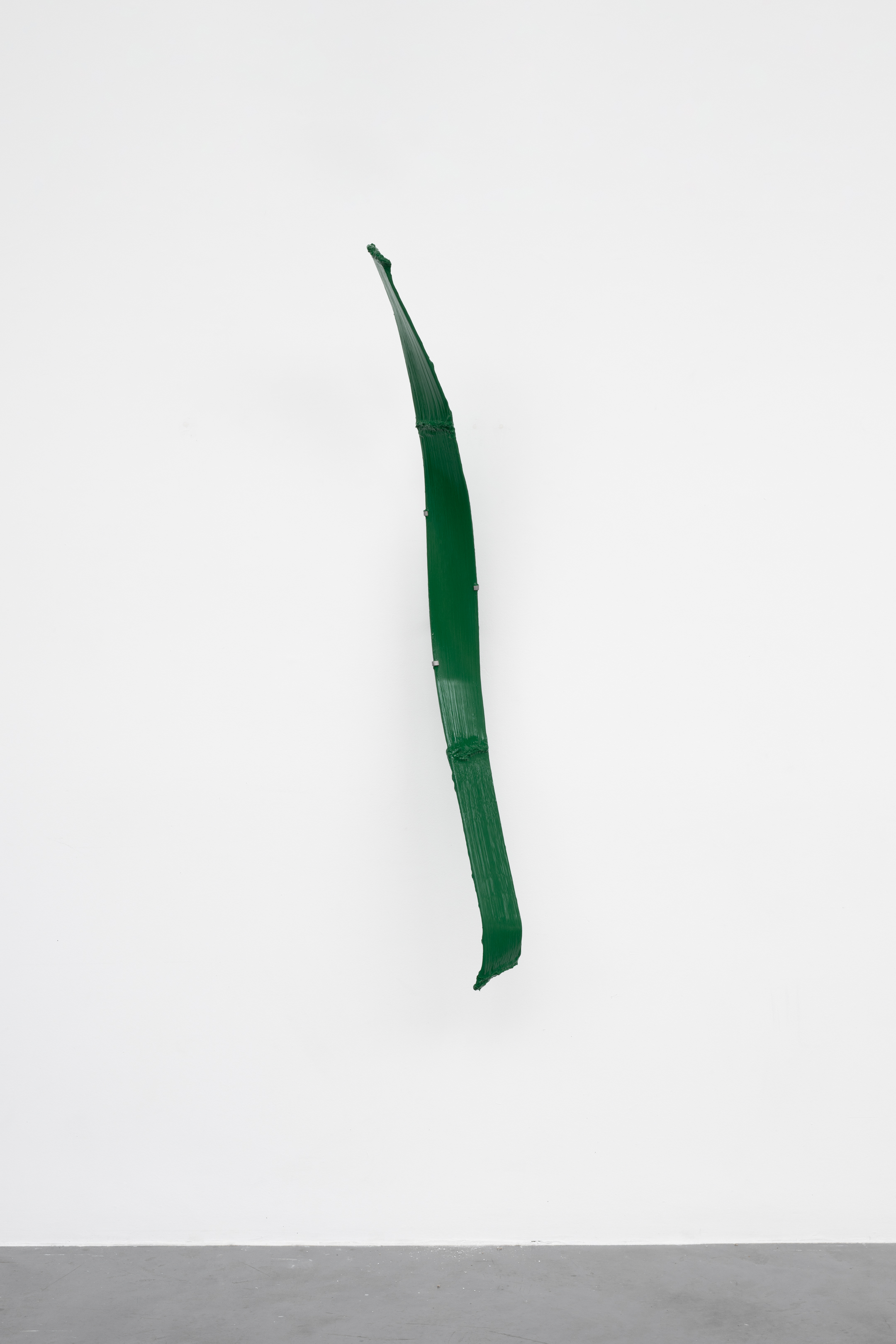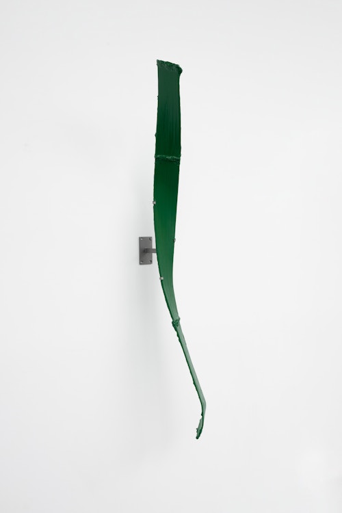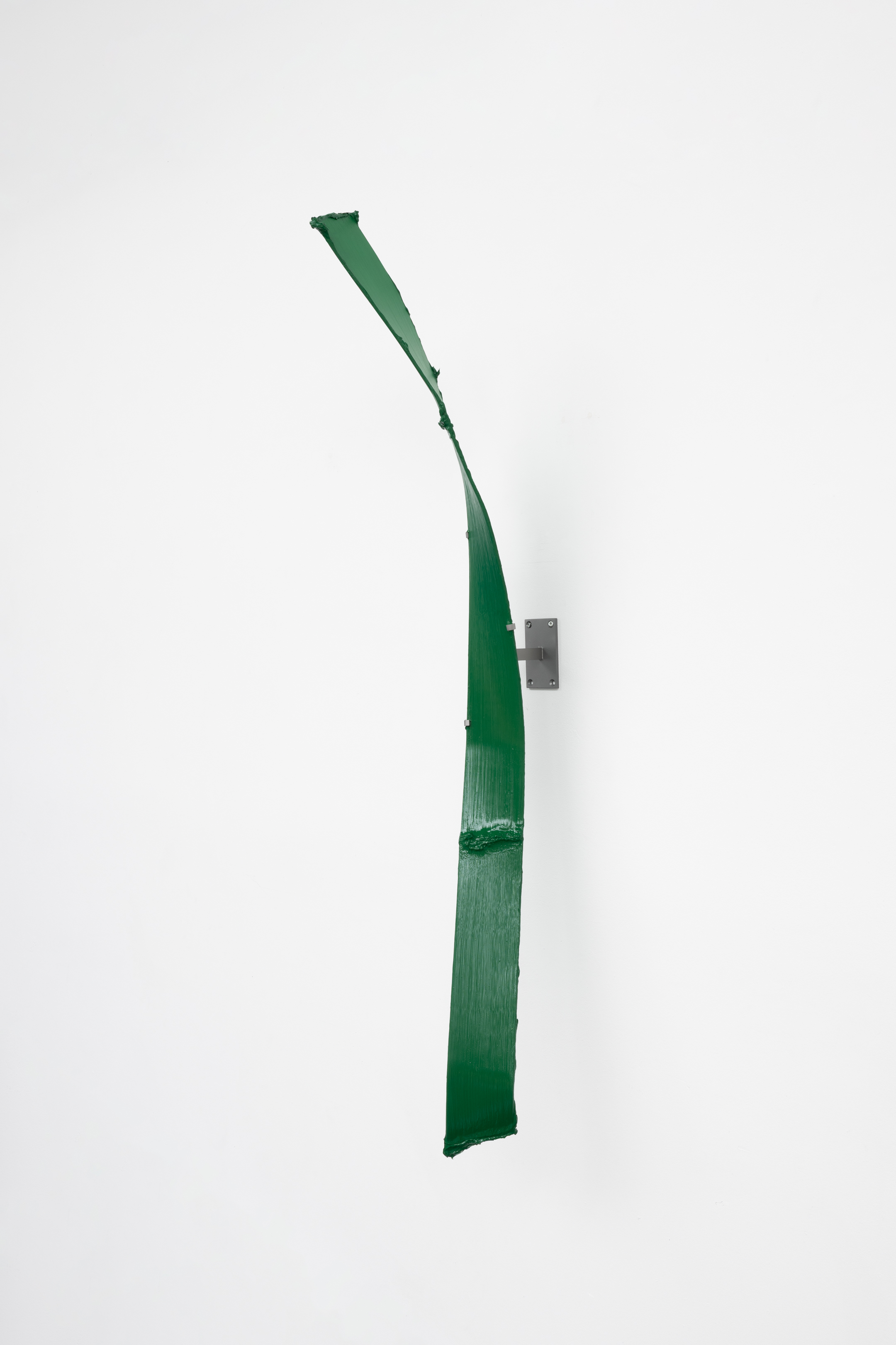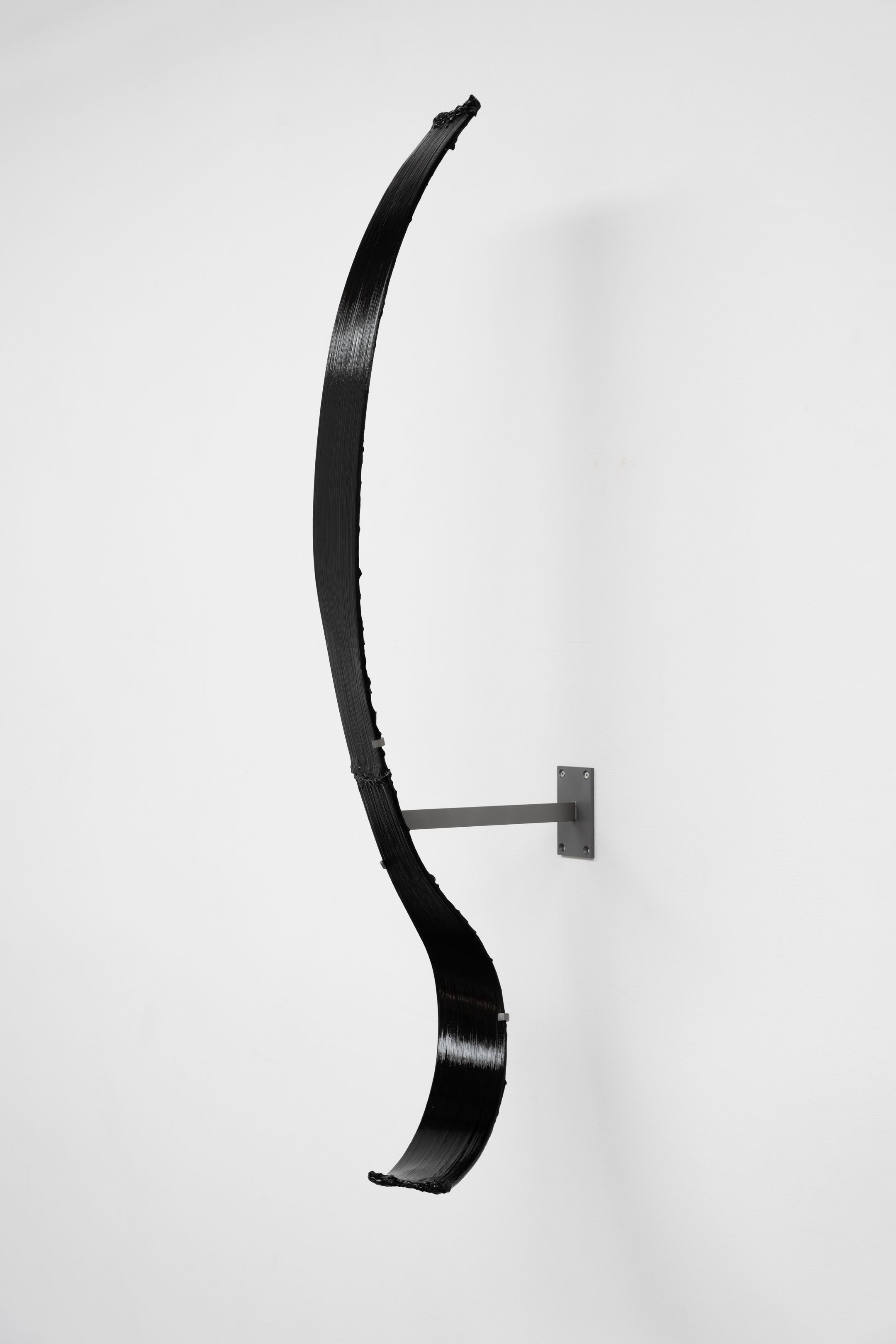 Shown in the same gallery, Brushstrokes forms the exhibition’s second new body of work. Fabricated from painted steel, these literal brushstrokes translate gesture into three-dimensional form, occupying a similarly ambiguous territory between painting and sculpture. Unlike the Inclusions, which rest on plinths and invite the viewer to move around them, the Brushstrokes are wall-mounted, like paintings — yet they do not lie flat. In contrast to figures such as Roy Lichtenstein, who depicted brushstrokes, Lavier gives them physical presence. The difference signals a broader divergence between American Pop Art’s interest in representation and the European tradition of New Realists’ commitment to presenting reality itself.