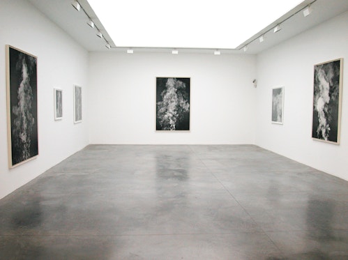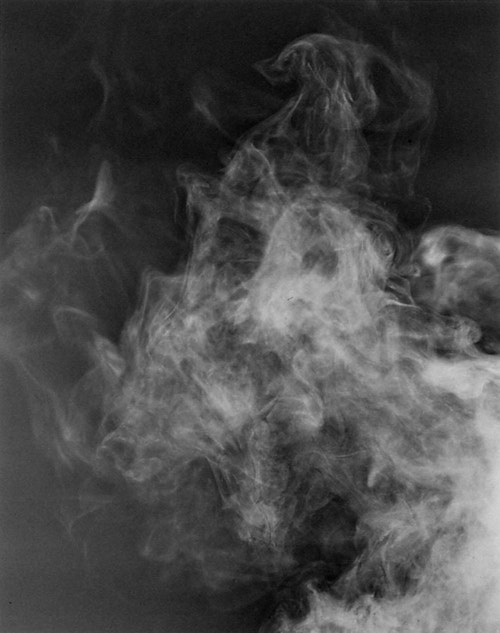 The definition of photography as a trace of the past, a remembered light, can be perfectly applied to the work of Adam Fuss. By using archaic techniques like the photogram and the daguerrotype, he intensifies the notion of melancholic remembrance and evokes specific associations that are impossible to accomplish with modern technology. Despite its historic associations, there is no sentimental longing for the past. Adam Fuss approaches photography in a contemporary, rather formal and controlled manner. He does not point out a definite story line but preserves the ambiguous character of the motifs by incorporating chance occurence into the photographic moment. The enigma of a smoke column is, for instance, recorded directly on paper by a flash of light and stilled on the tangible format of the photogram. As a result, the veil of smoke seems to literally descend on the paper; becomes nearly tactile, almost real. It is precisely this quality of presence – the moment the subliminal passes into the spiritual – that the artist tries to retain in the photographs of “My Ghost”.