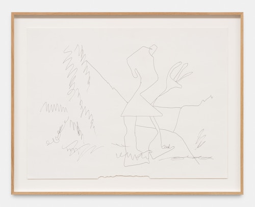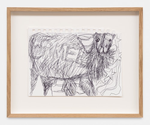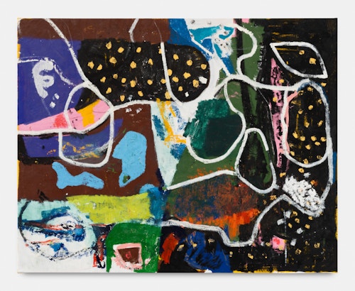 For his new exhibition, Bradley will present a large group of recent paintings and works on paper. Painted on the floor, his large gestural works challenge the legacy of Abstract Expressionism and record the detritus and history of the studio, resulting in radiant and layered paintings that evoke a wealth of associations. Executed in pencil, pen, or marker, the new drawings often suggest the framing logic of comic strips while refusing any narrative structure inherent to the genre. These spontaneous compositions feature figures, text and abstractions uncovered from Bradley’s imaginative reference library of jokes and enigmas.