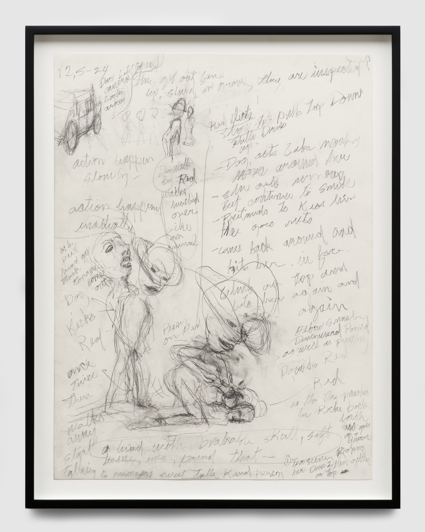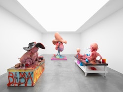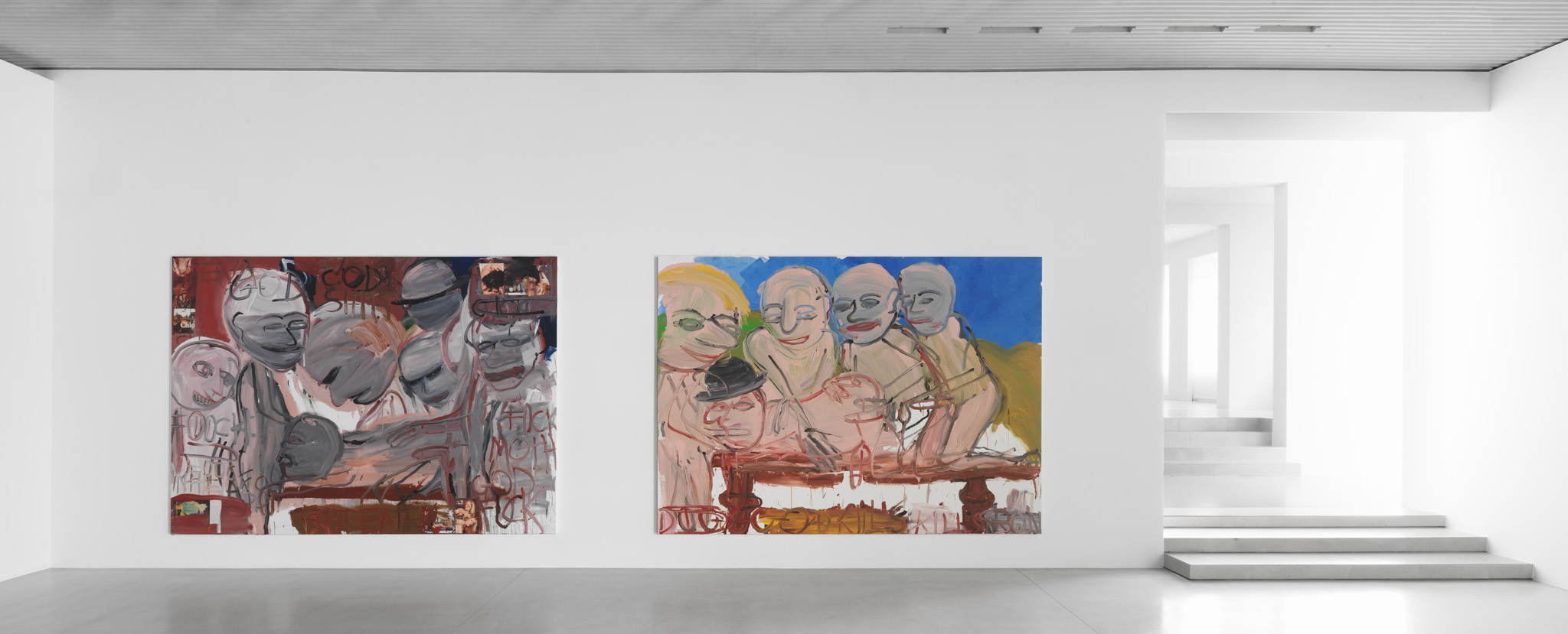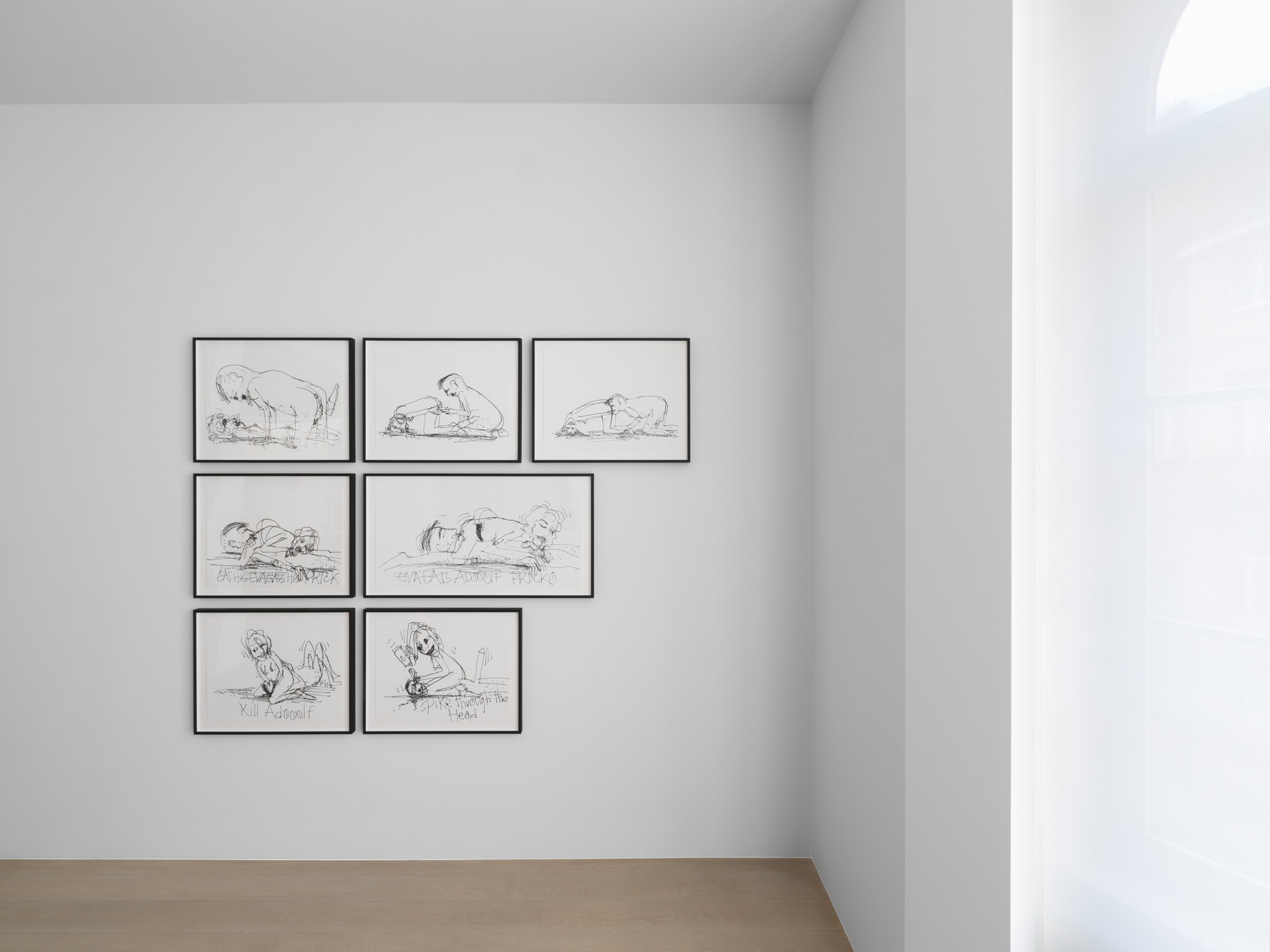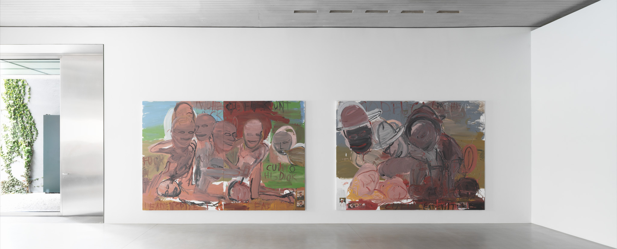 In his new exhibition, Paul McCarthy presents a diverse body of work around the theme of CSSC The Dogs The Attack, a pivotal and hitherto unseen film from his on-going stagecoach project CSSC (Coach Stage Stage Coach) (2016) and DADDA (Donald and Daisy Duck Adventure) (2018). The new video is accompanied by works on paper, recent paintings and a group of sculptures, including three unique works from the film. The selection not only showcases the full extent of McCarthy’s wide-ranging practice but also its dynamic and regenerative nature, whereby ideas cross-fertilise and permeate each other to create a complex web of interconnected links and allusions.