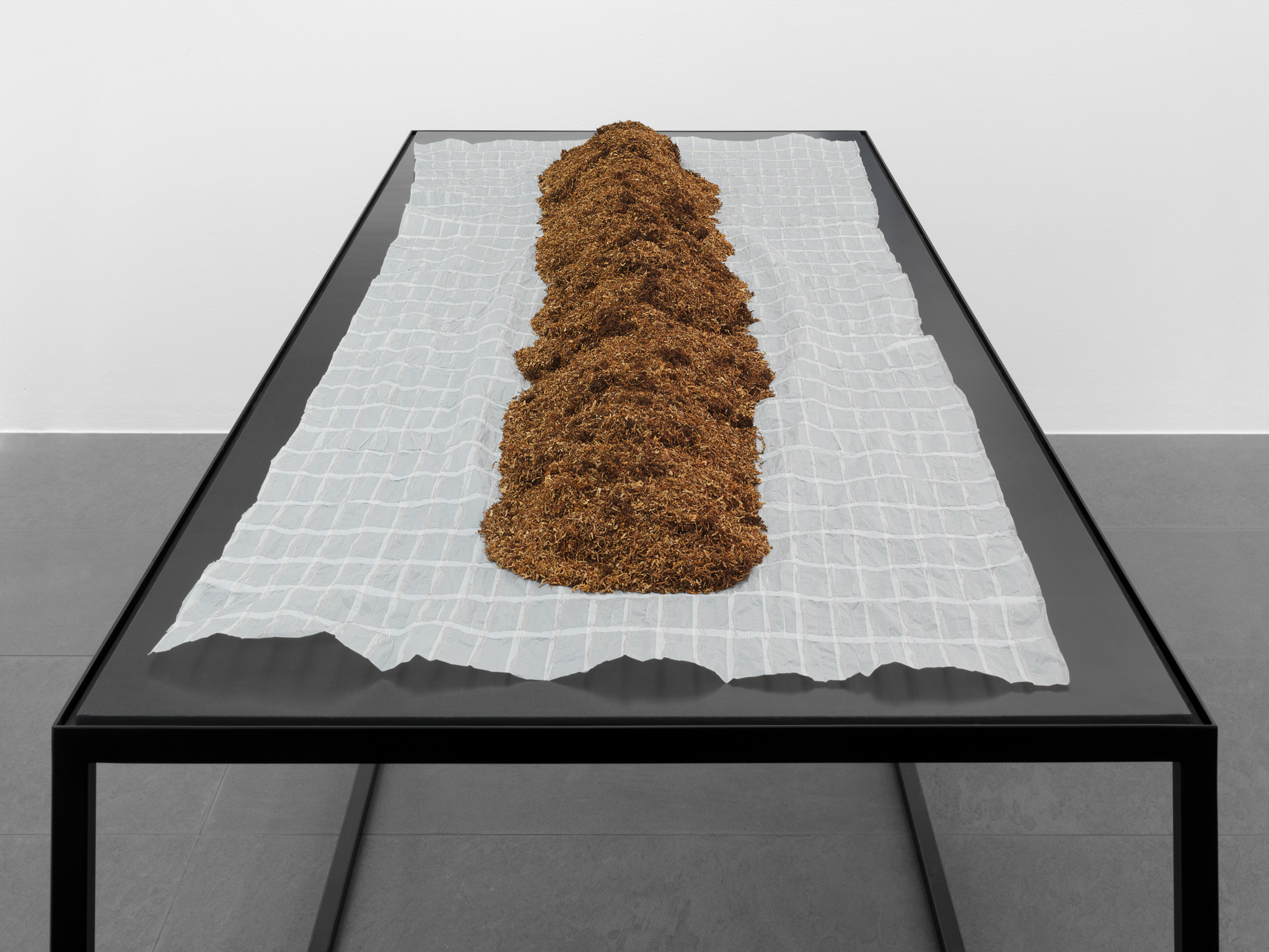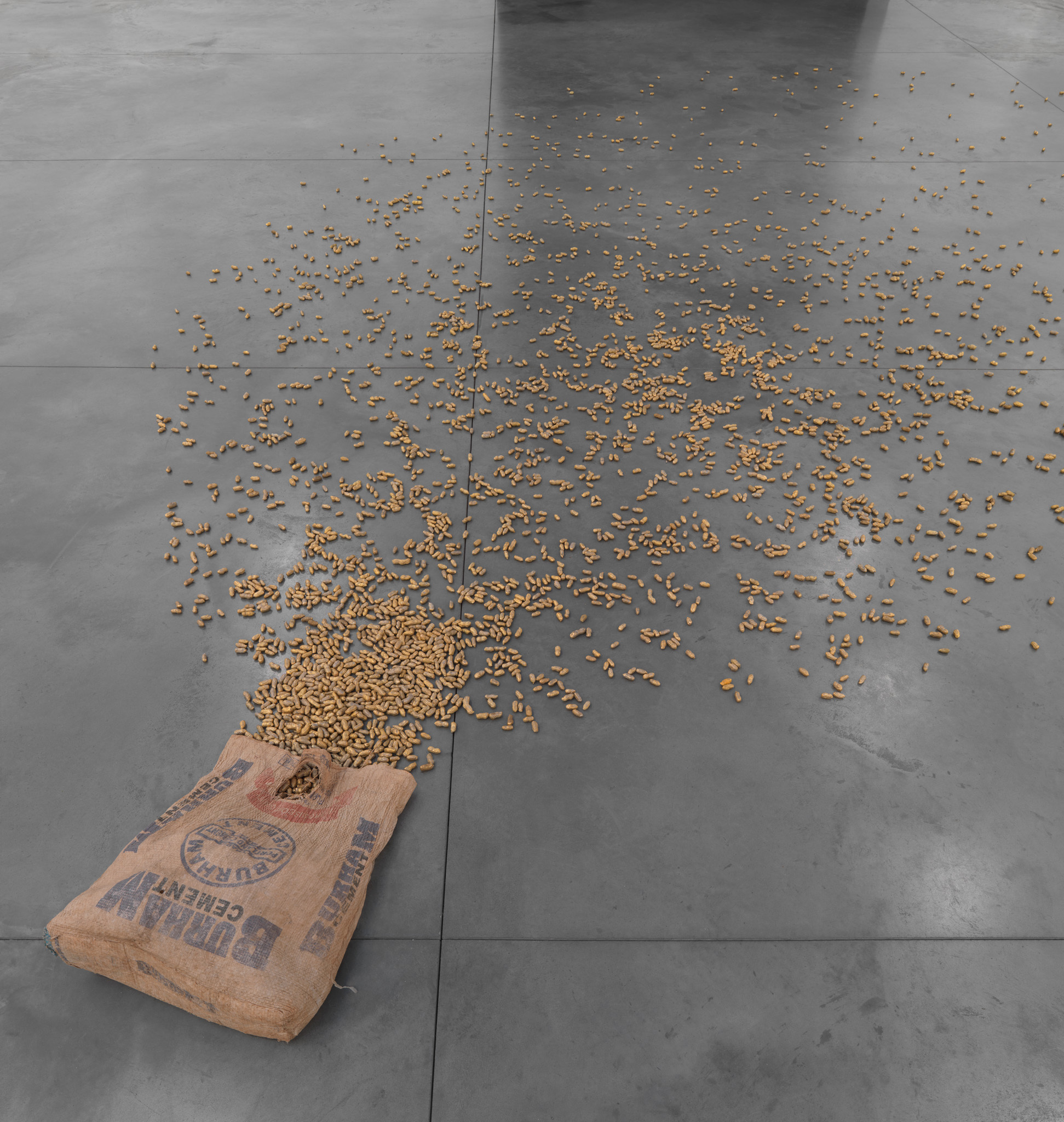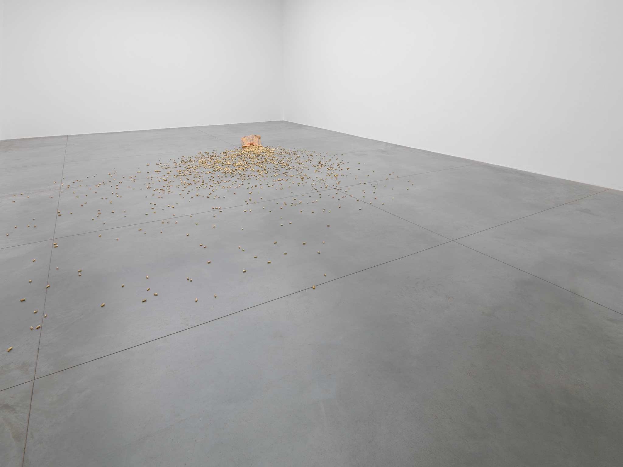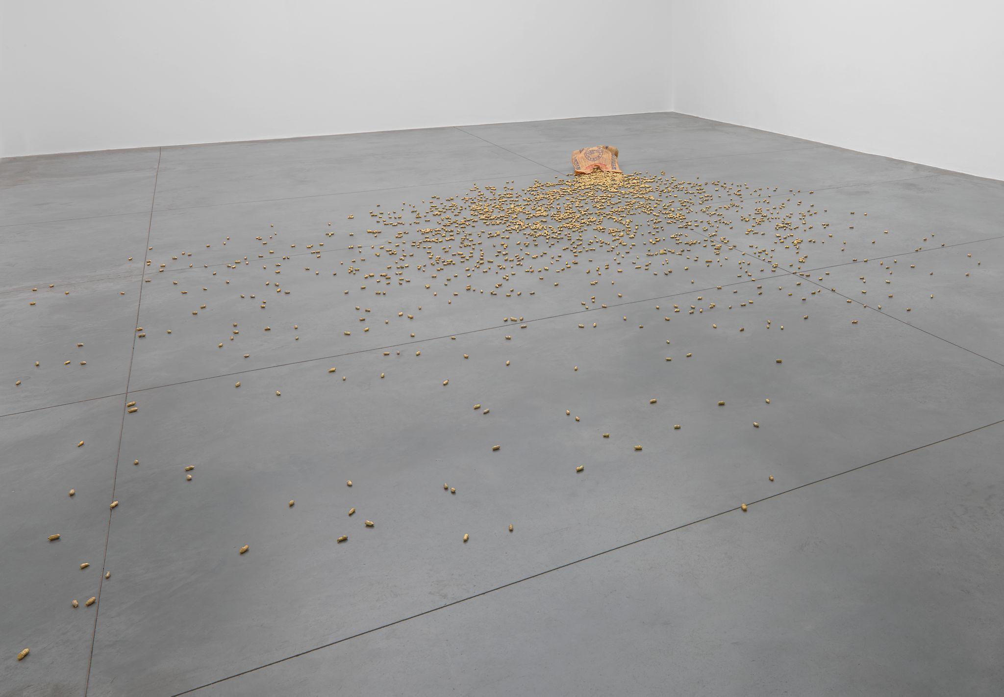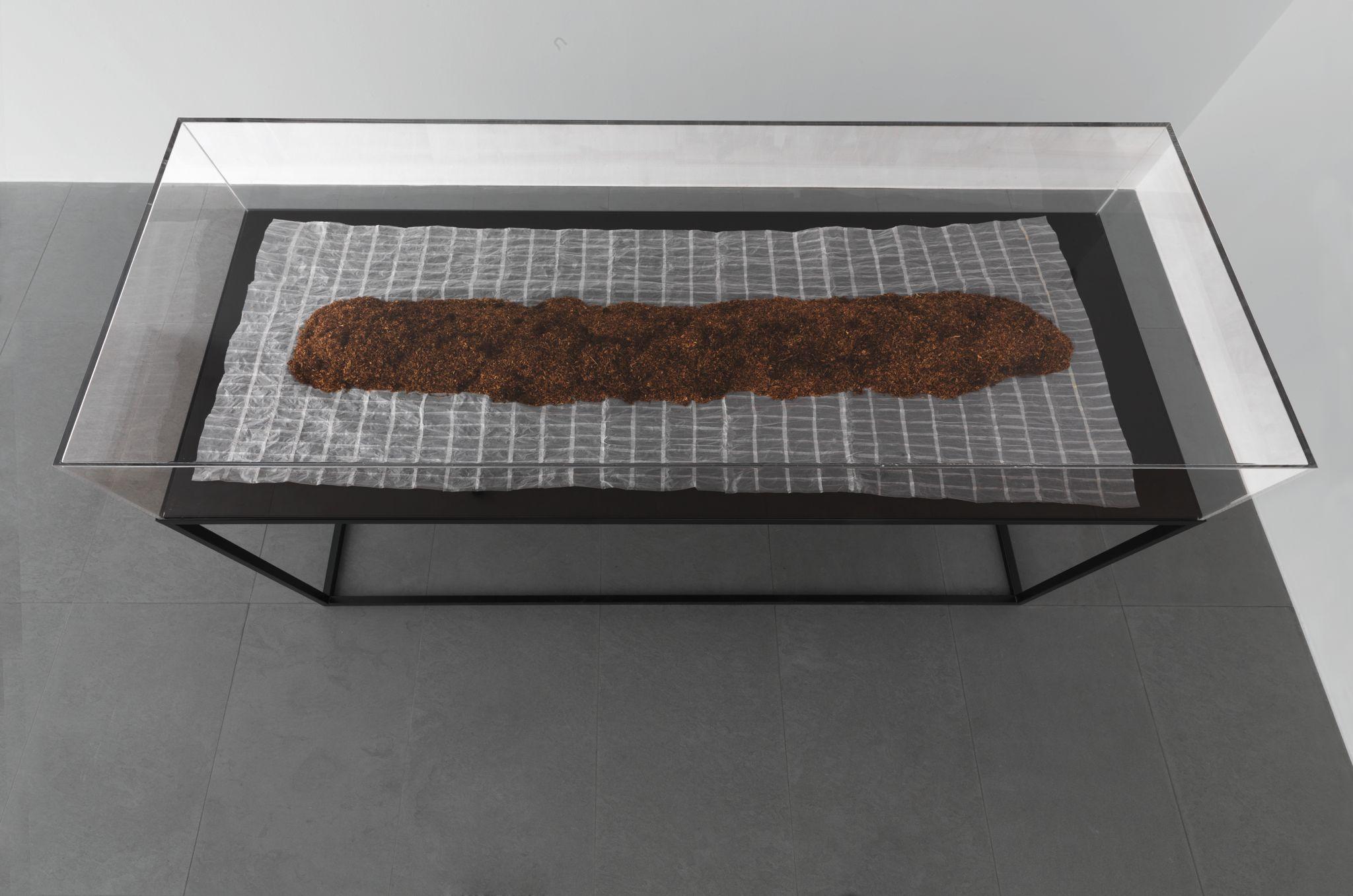45/65-45 (2012) consists of an enormous tractor tyre with a diameter of 258 cm. The title refers to the type of tyre. As a material object, it is not the result of the artist’s intervention. Nevertheless, the meaning it acquires in the exhibition, and in the corpus of the artist’s oeuvre, is entirely his responsibility.