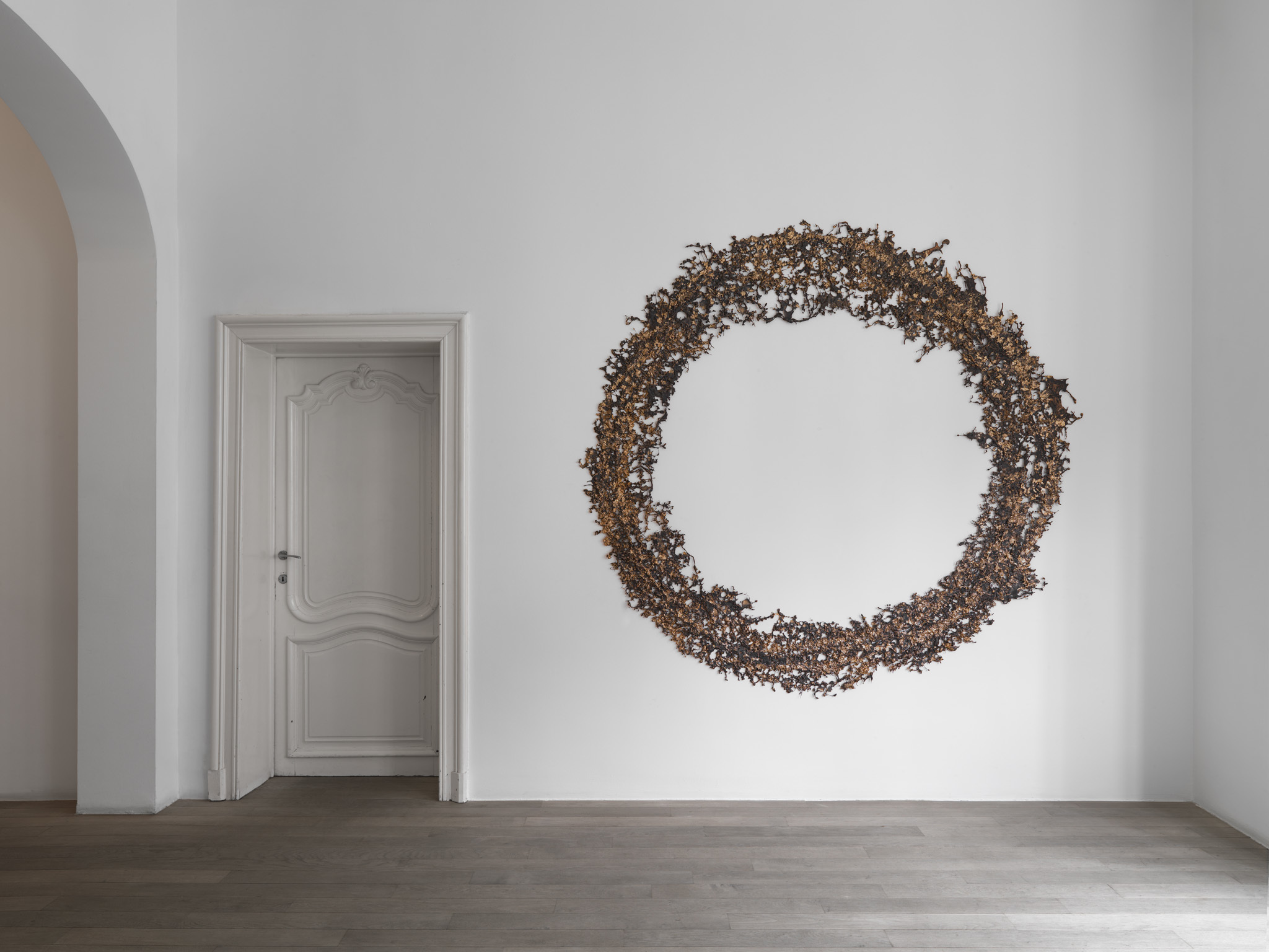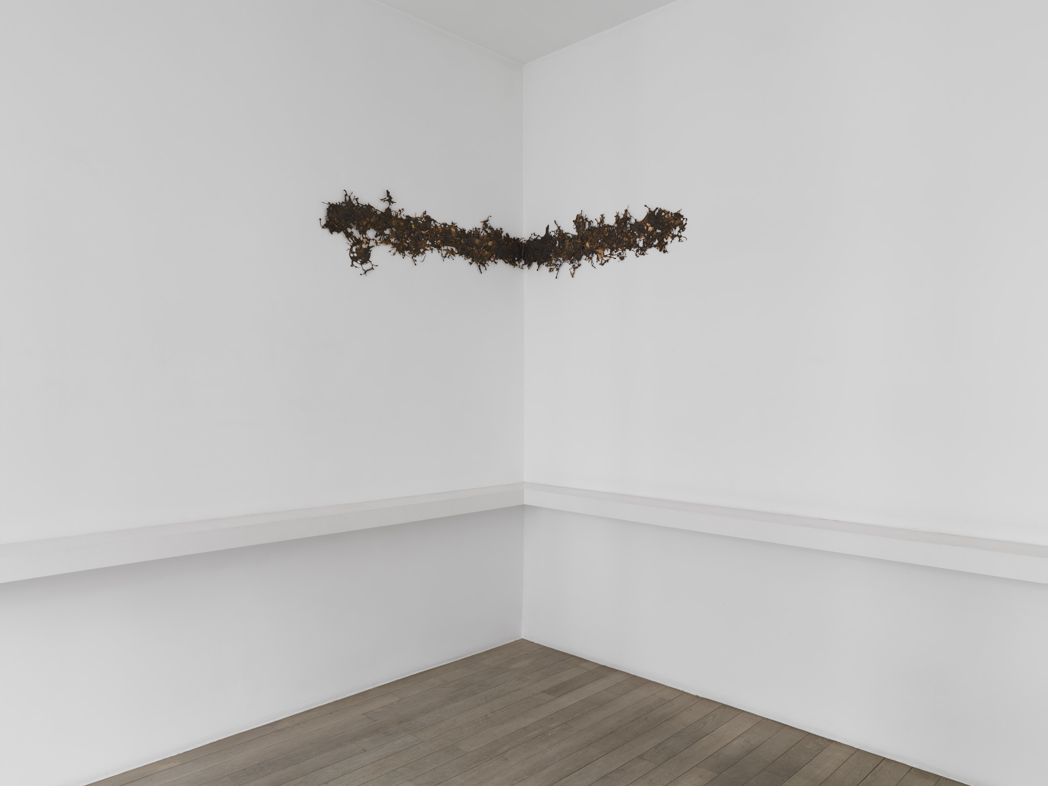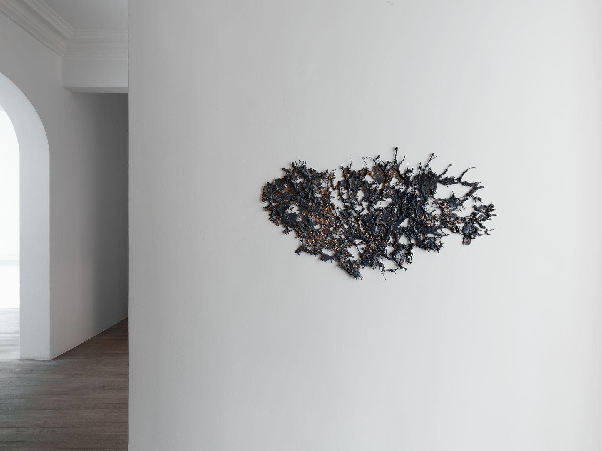 The lace-like bronze wall sculptures Instant Gratifications(2012) are the result of a thermic shock, provoked by the confrontation of burning hot liquid bronze being poured onto a cold floor. By diverting centuries-old techniques, Michel François obtains new forms and new meanings.