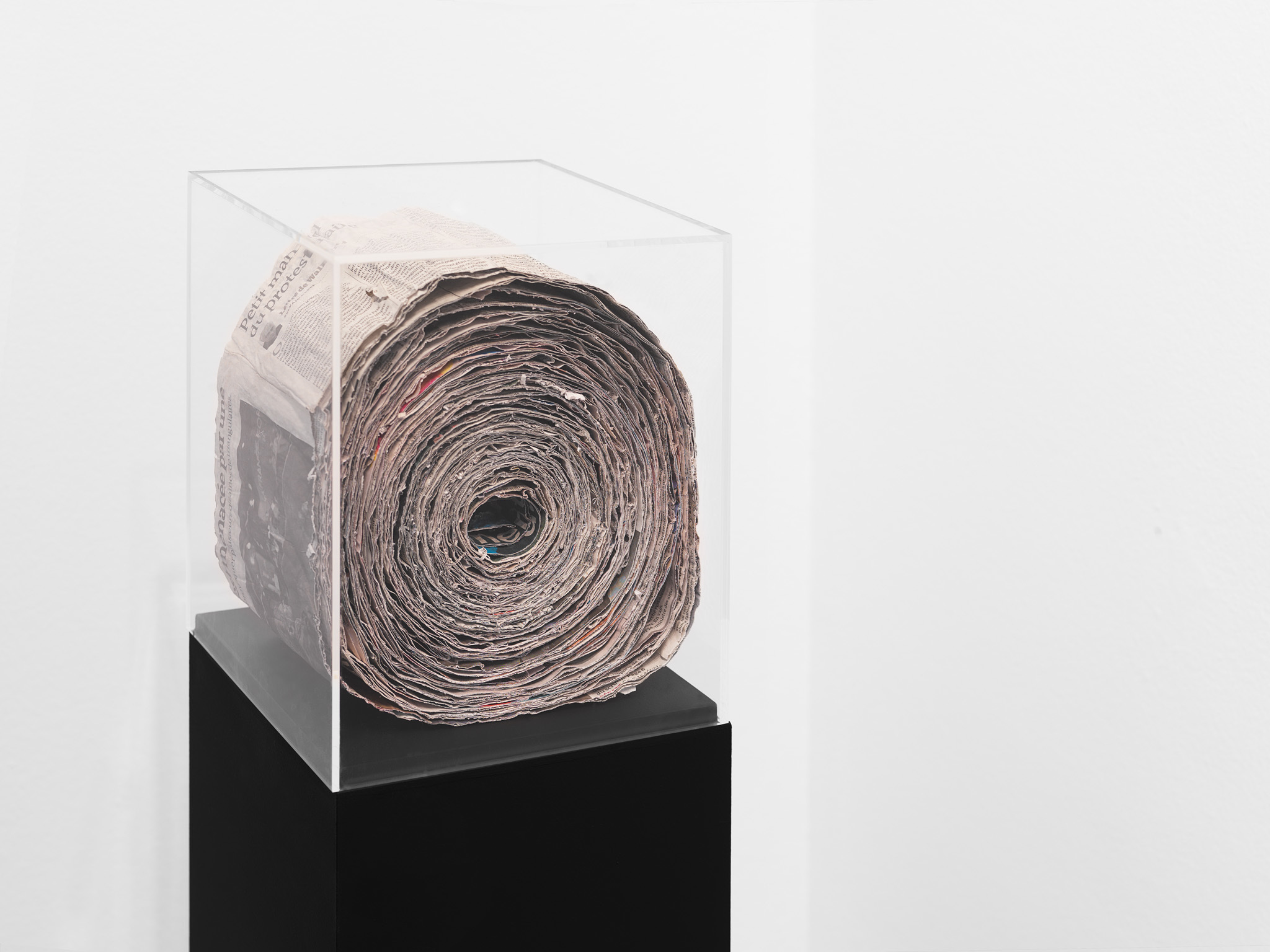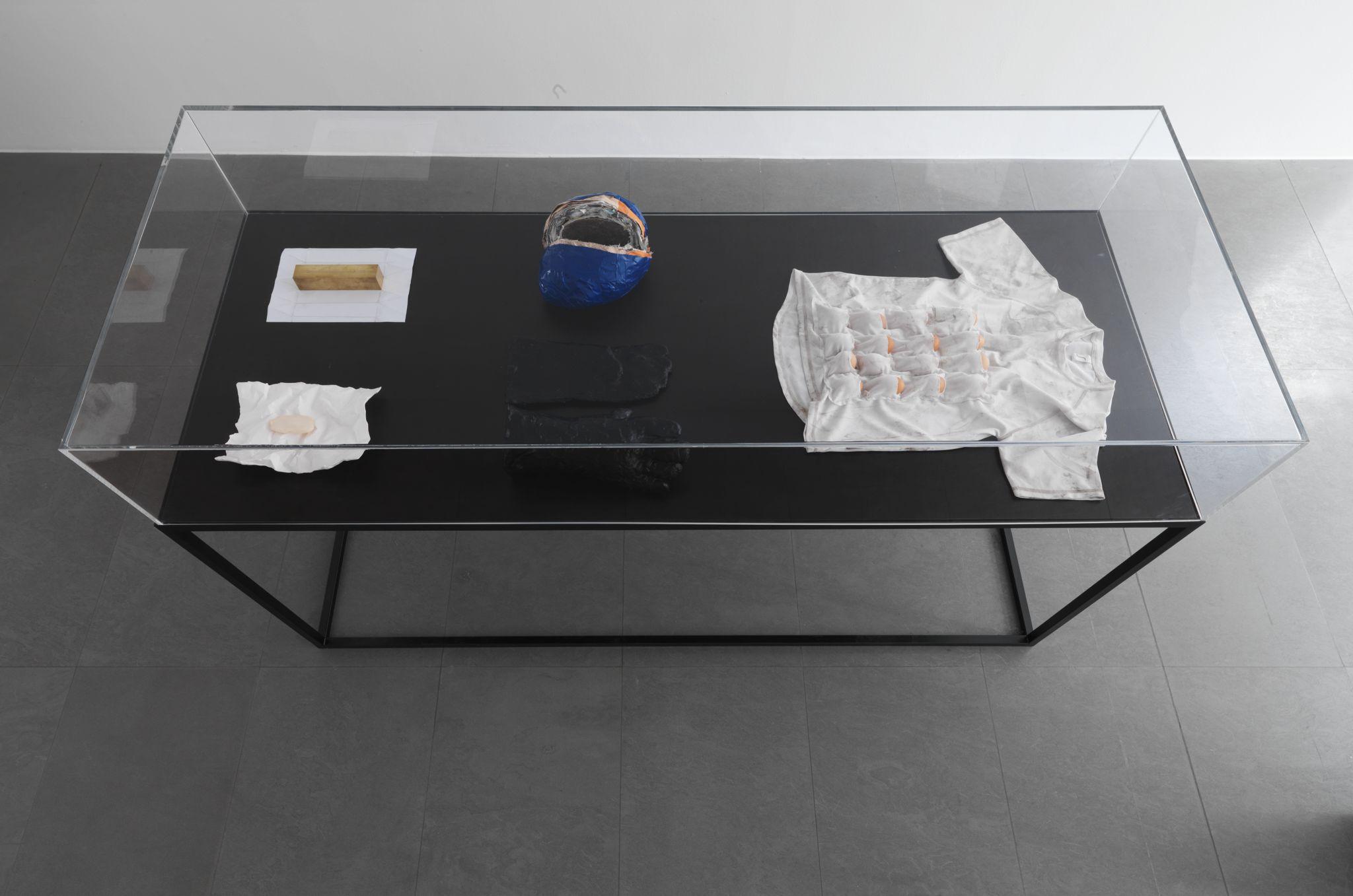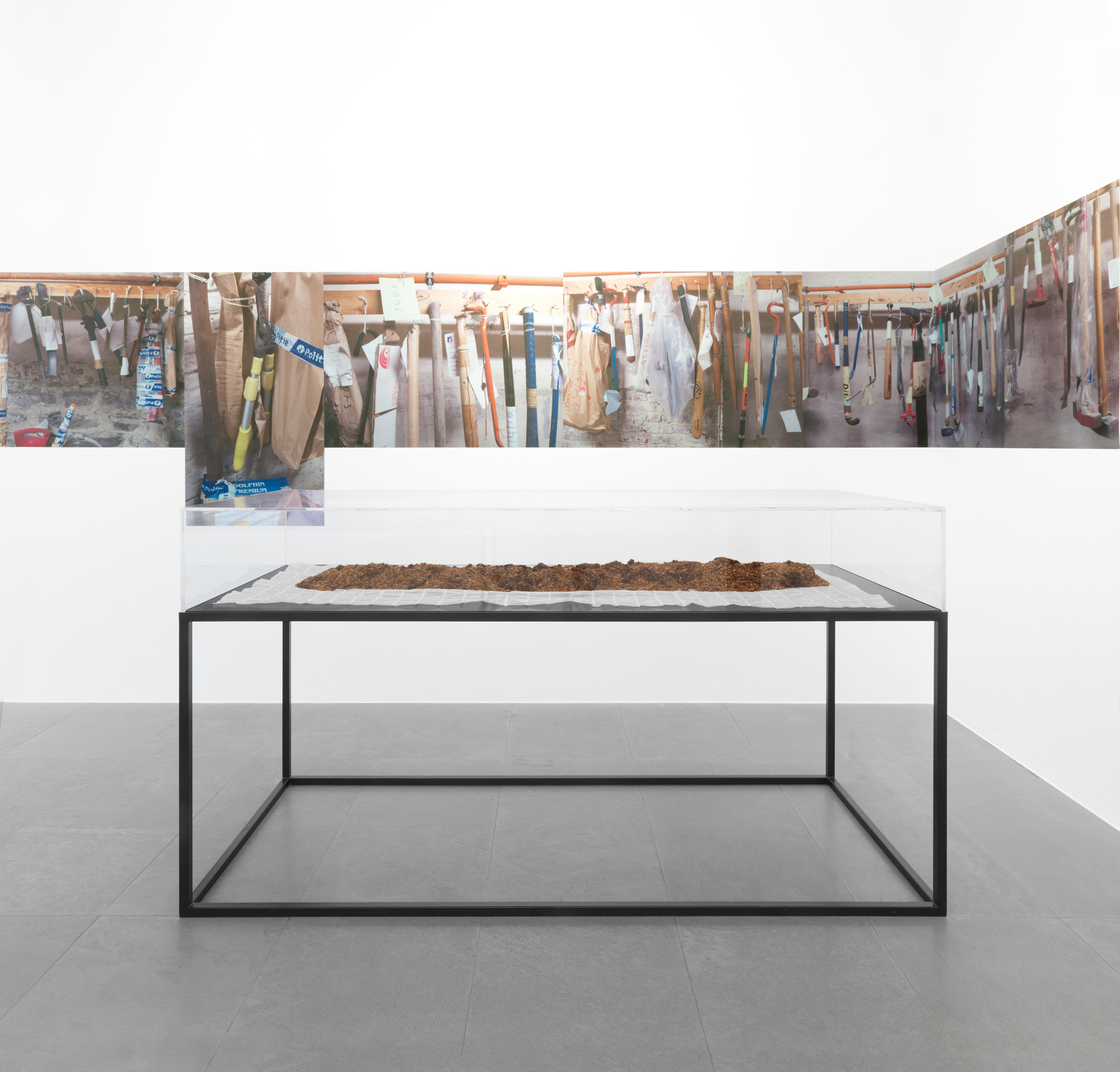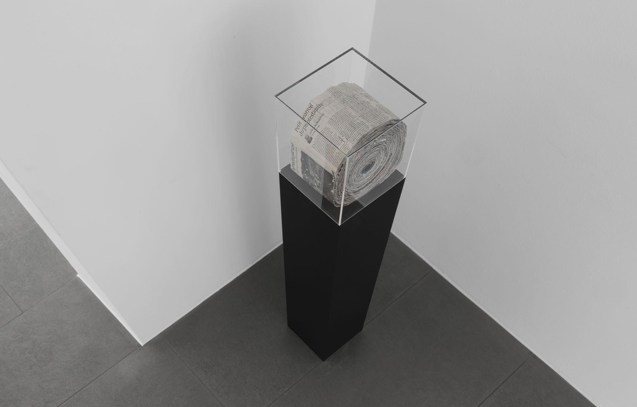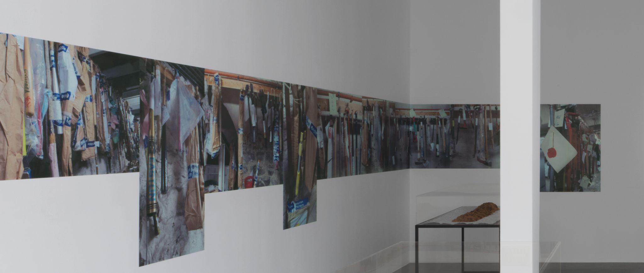 For this exhibition, François started out from a series of photos that he took in the cellar of the Palace of Justice in Brussels, where a huge number of pieces à conviction (literally ‘pieces of evidence’) are brought together, identified, labelled and exhibited. The French title of the exhibition thus describes a document or object that is produced in court as evidence, objects that are often called an ‘exhibit’ in English. The simple act of naming these prosaic objects ‘conviction pieces’ confers a new meaning upon them, and alters the way in which they might be perceived. The exhibition is thus an exploration of cause and effect, and the ways in which simple gestures can change the status of an object and have important consequences.