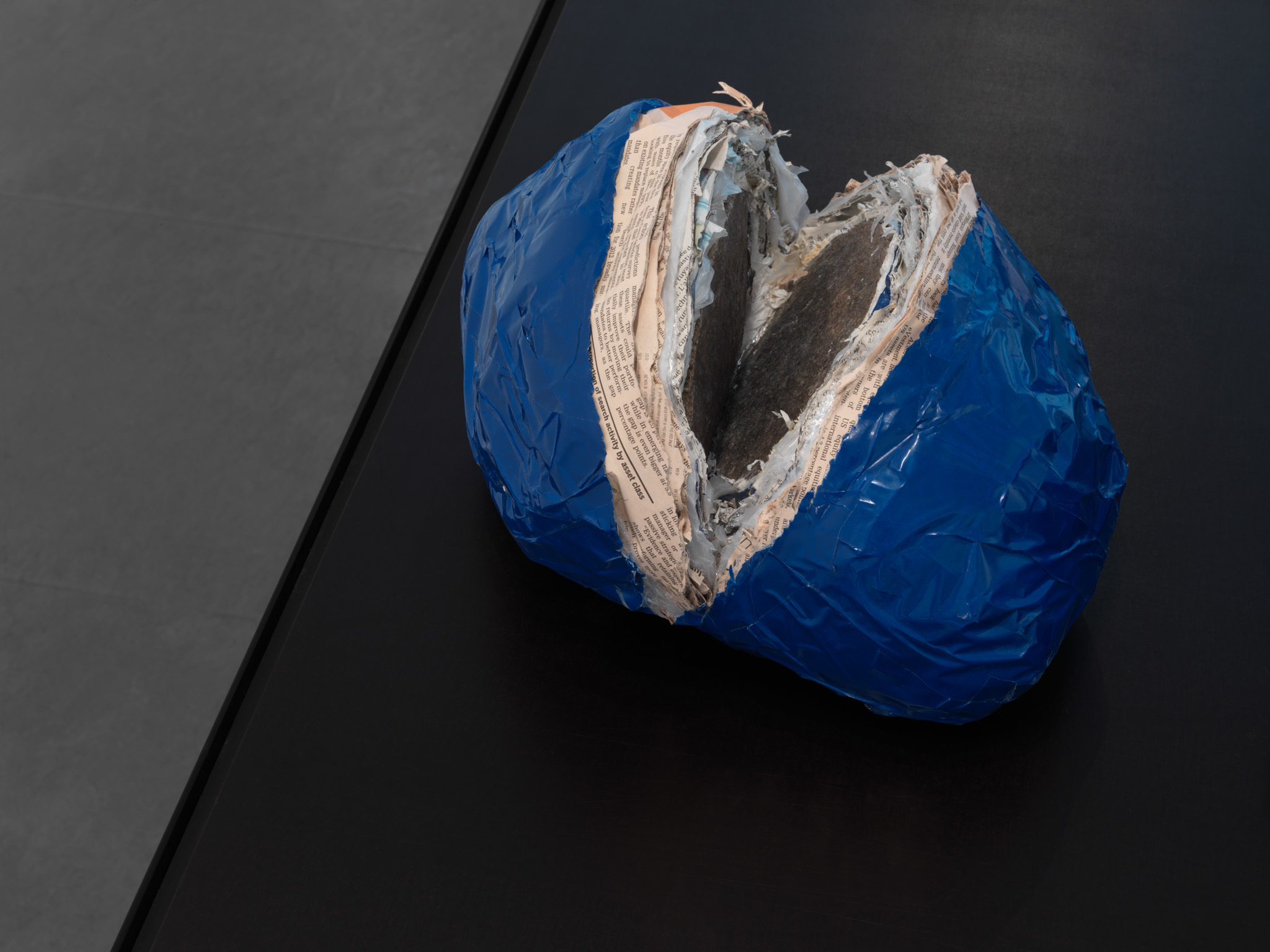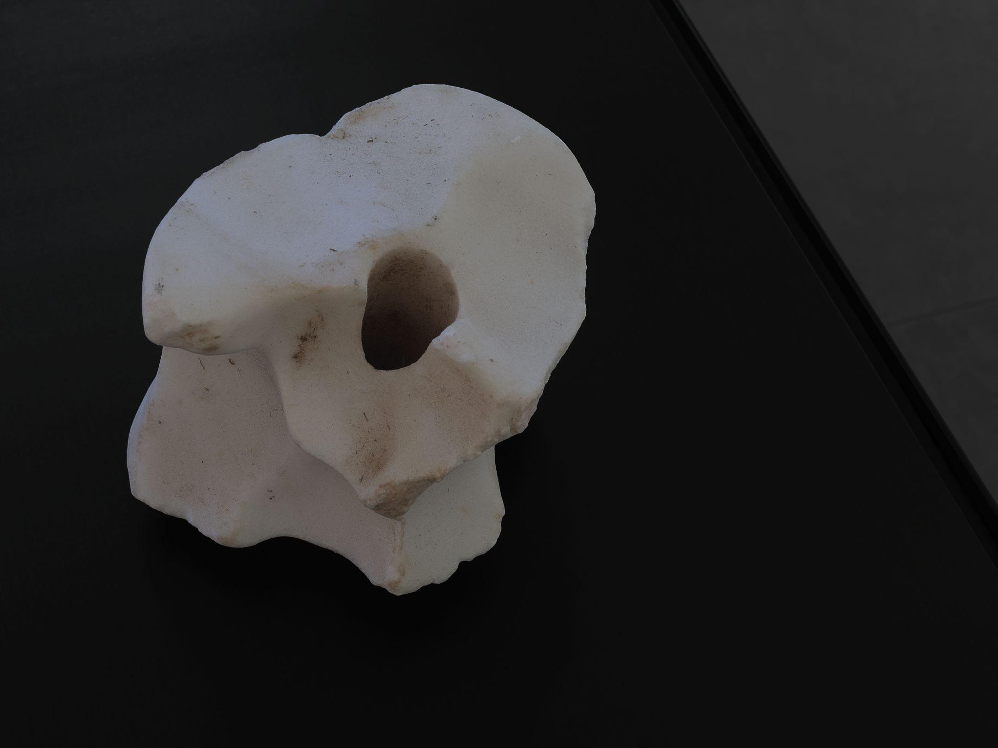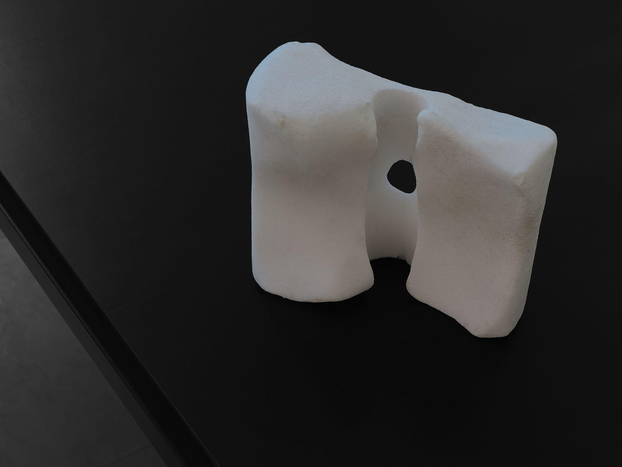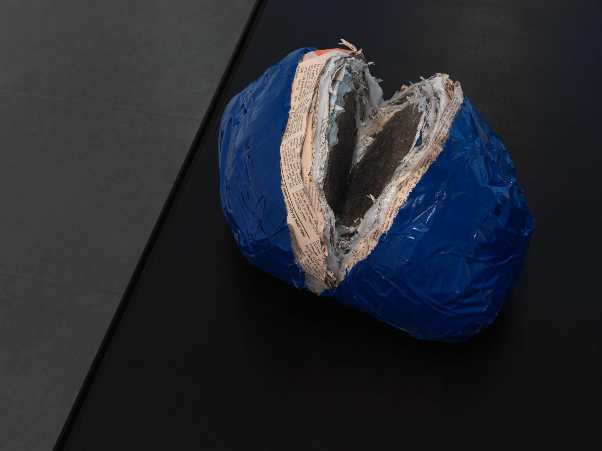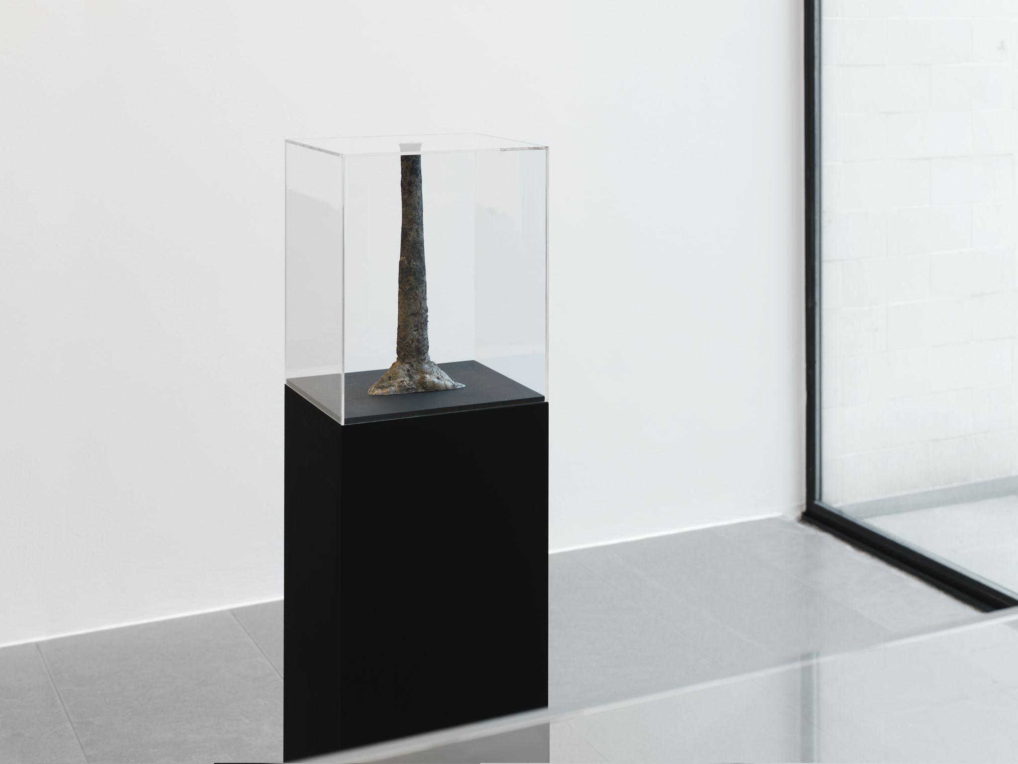 Next to these photographs he shows a number of sculptures that are, without immediately revealing their origins or the way they were made, undoubtedly the result of something that happened outside the exhibition space.