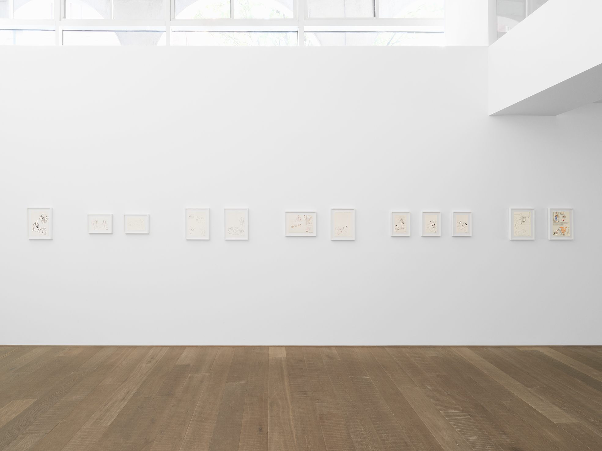 Pierre Guyotat’s drawings were first exhibited in Paris at Azzedine Alaïa’s exhibition space in 2016, then again in 2017. Other exhibitions were held at Cabinet, London (2017); Yvon Lambert, Paris (2018); diaphanes, Berlin (2018); Villa Medici, Rome (2019) and The Box, Los Angeles (2019). Each presentation gathered a few months of the artist’s drawings. This exhibition is the first to provide an entry into the diversity and richness of his work during the last, and perhaps most intense, years of his drawing practice.