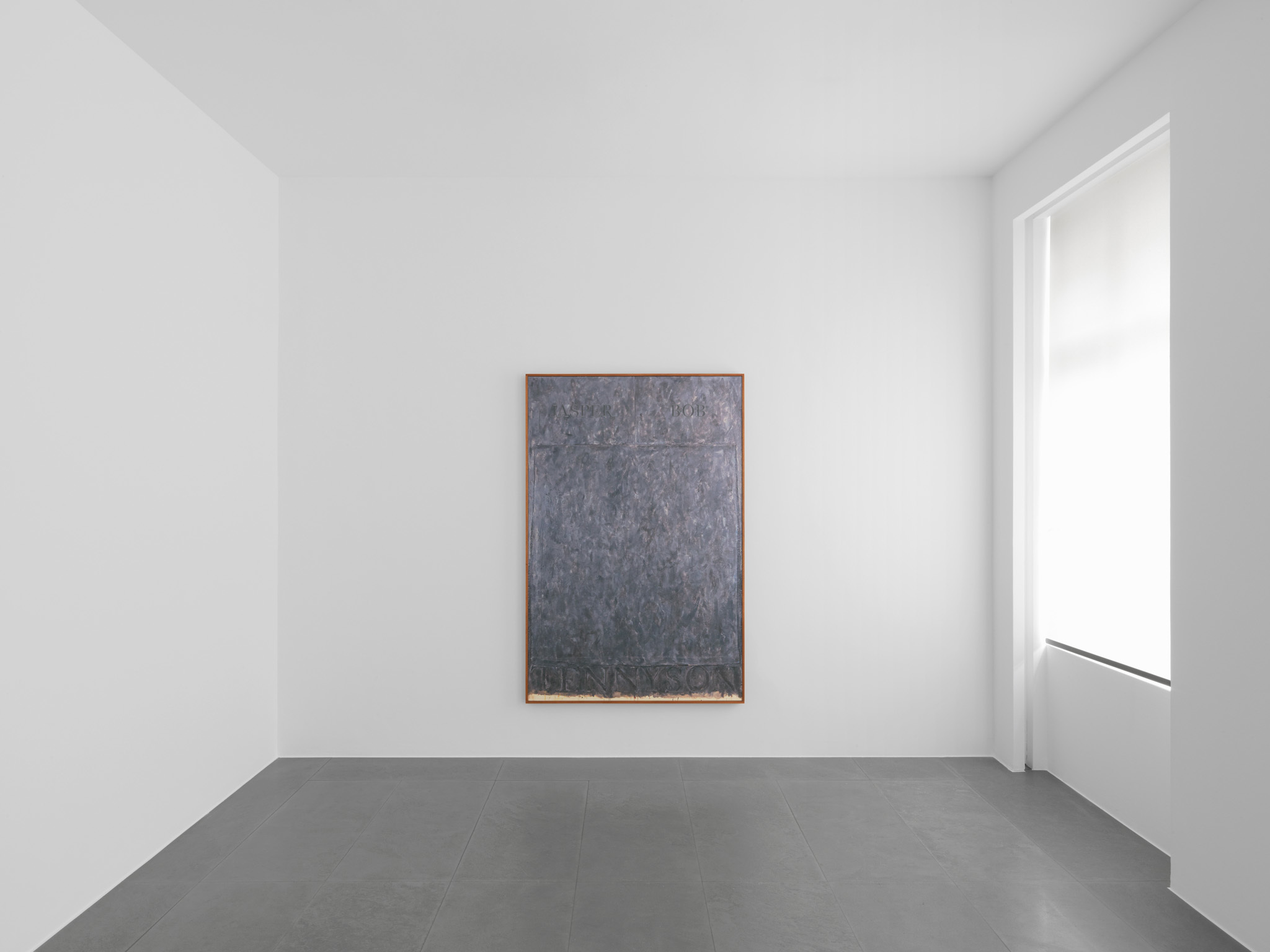 In comparison to the crisp, clear imagery of the above works, Horowitz’s ‘plant’ paintings are both exuberant and abstract: identical in subject (a Philodendron houseplant) and composition, each painting is rendered in different colours and paint application techniques. The gestural brush stokes are, however, contained by the hard edge of a stencil. These works can be interpreted as meditations on the illustrious legacy of American painting in the 20th century (the plant is like a found, Abstract Expressionist composition) and domesticity (the image of an extremely common houseplant), but also as an exploration of the concepts of freedom vs. confinement, nature vs. culture. Tennyson, Jasper and Bob(2014), on the other hand, is a more formal and regimented work that takes Jasper Johns’ 1958 painting Tennyson as its starting point. The Johns painting suggests an image of a bed that, in turn, references Rauschenberg’s seminal painting Bedfrom 1955. In Horowitz’s version, which is related to his celebrated installation Pillow Talk Bed (2002), the Johns painting is reproduced actual size and printed onto canvas. The composition is, however, altered by the embroidered addition of the names ‘Jasper’ and ‘Bob’ over the area of the painting that suggests two pillows.