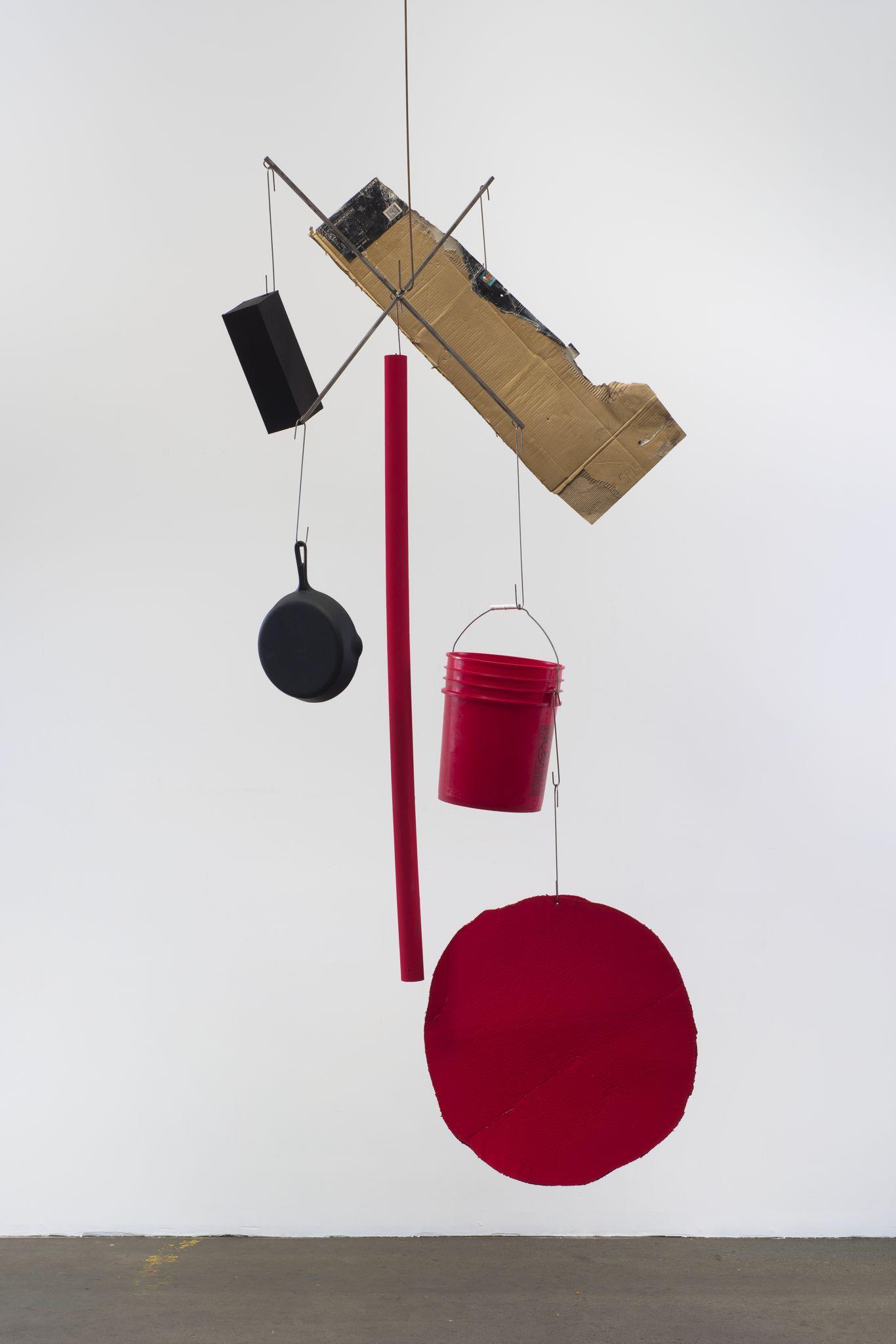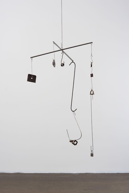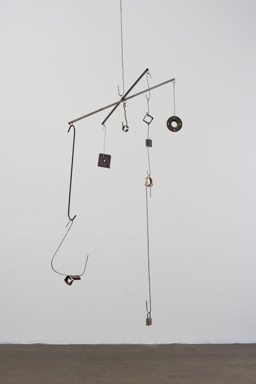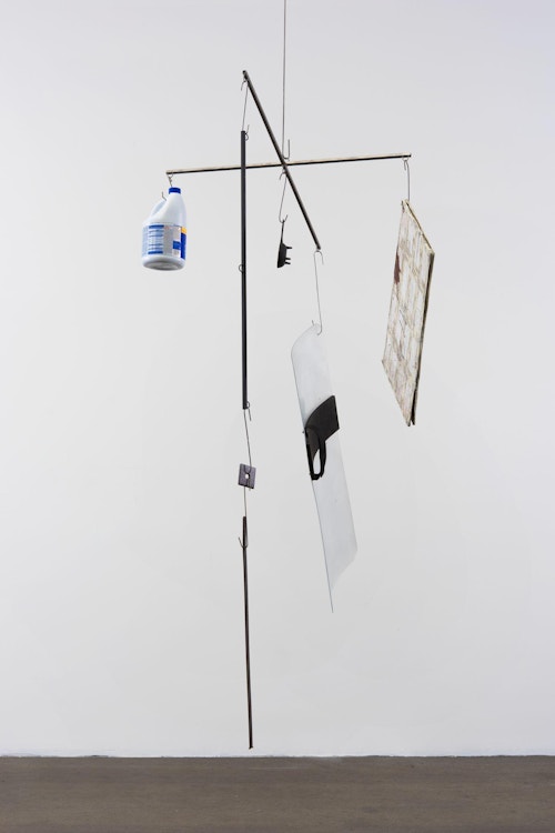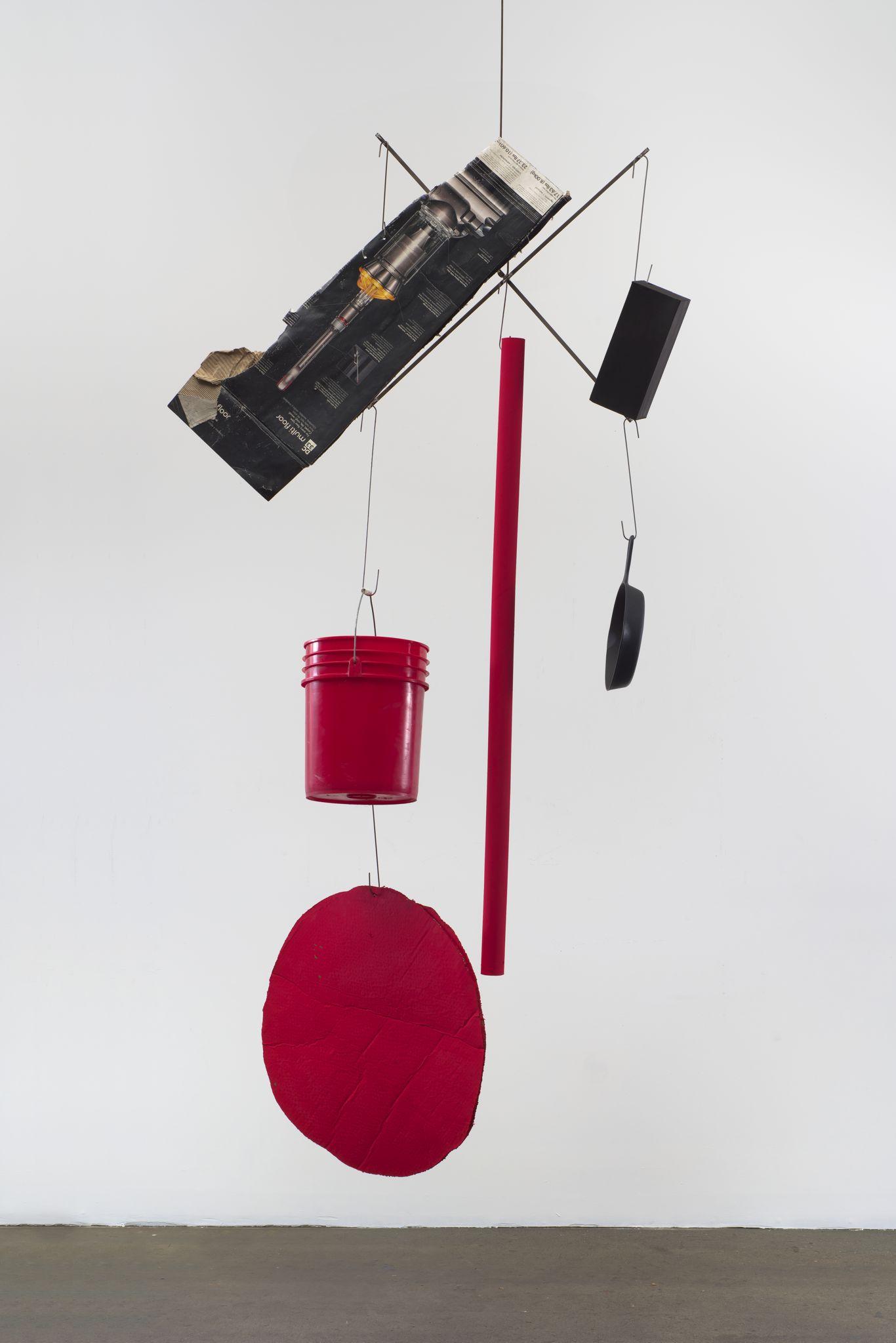 Ruby will also be exhibiting a new group of mobiles in the series known as SCALES. These monumental sculptures, which the artist views as three-dimensional manifestations of his collages, feature identical monochrome shapes to those evident in the ECLPSE series, but this time juxtaposed with identifiable scraps of materials and objects from his studio. These elements lend the works a more narrative aspect. Whilst Ruby is well known for his collages, and has also constructed mobiles in the past, the works presented in ECLPSE and SCALES bear witness to a shift in perspective. Says Ruby: ‘These works are pared down to their basic formal elements. In the past I’ve insisted on seeing the conceptual element, as opposed to feeling confident that it is there even when it is not evident at first glance. They are also playful, in a way, which feels new to me.’