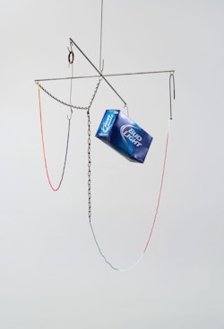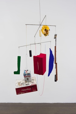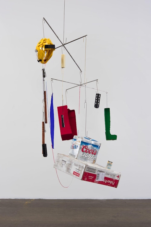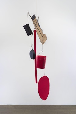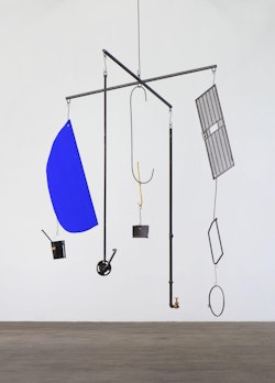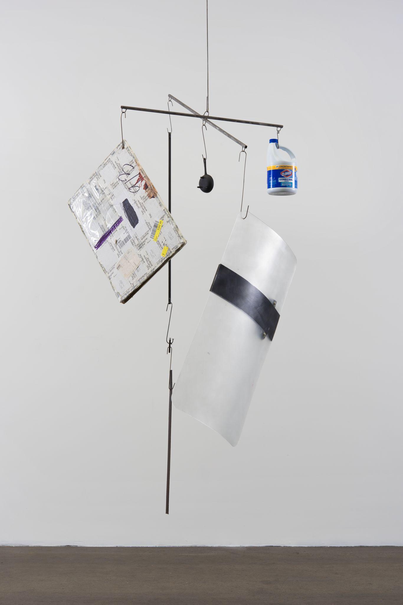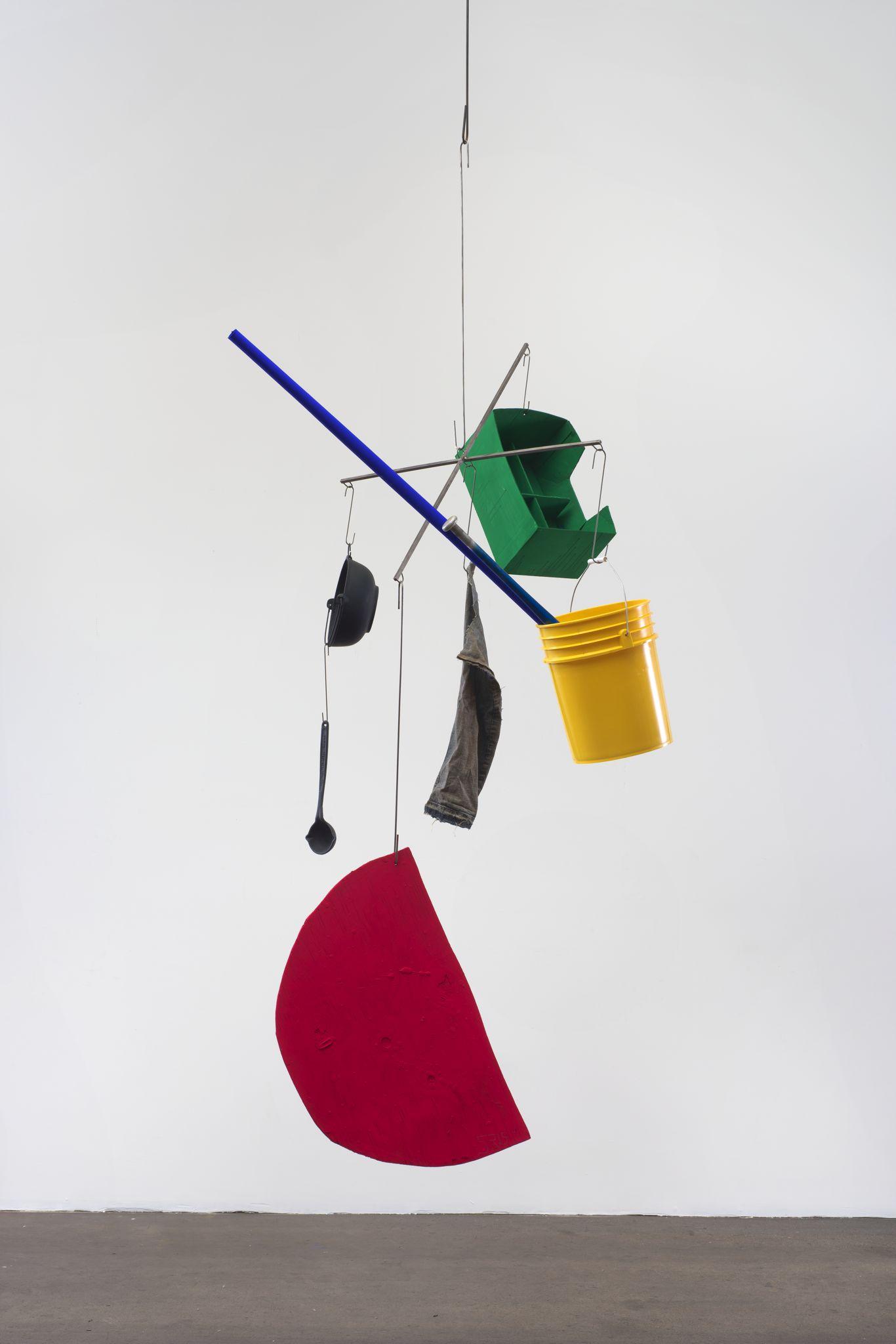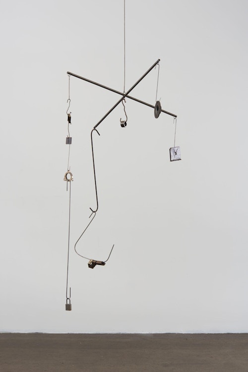 Ruby will also be exhibiting a new group of mobiles in the series known as SCALES. These monumental sculptures, which the artist views as three-dimensional manifestations of his collages, feature identical monochrome shapes to those evident in the ECLPSE series, but this time juxtaposed with identifiable scraps of materials and objects from his studio. These elements lend the works a more narrative aspect. Whilst Ruby is well known for his collages, and has also constructed mobiles in the past, the works presented in ECLPSE and SCALES bear witness to a shift in perspective. Says Ruby: ‘These works are pared down to their basic formal elements. In the past I’ve insisted on seeing the conceptual element, as opposed to feeling confident that it is there even when it is not evident at first glance. They are also playful, in a way, which feels new to me.’