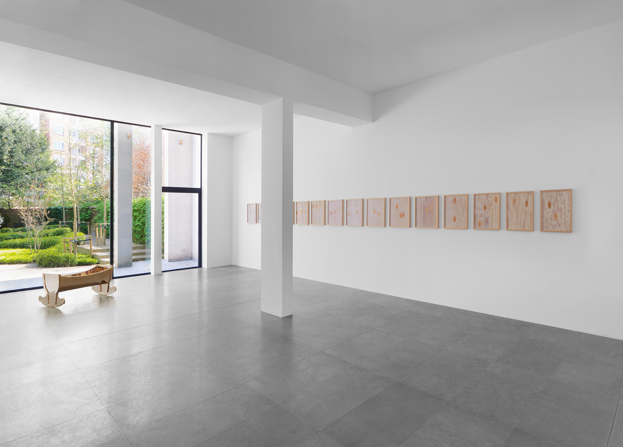 White Moonlight After Man Ray: 1–15, is one of a series of ‘knot paintings’ or ‘not-paintings’ Sherrie Levine began making in 1985. Taking plywood panels, the artist highlights the knots in the grain of the wood by painting them. The series is subtly varied, in terms of ground colour, and number and colour of the spots. The title of this particular work acknowledges a collage Man Ray made in which the grain of a blackened piece of wood suggested the clouds of a moonlit sky.