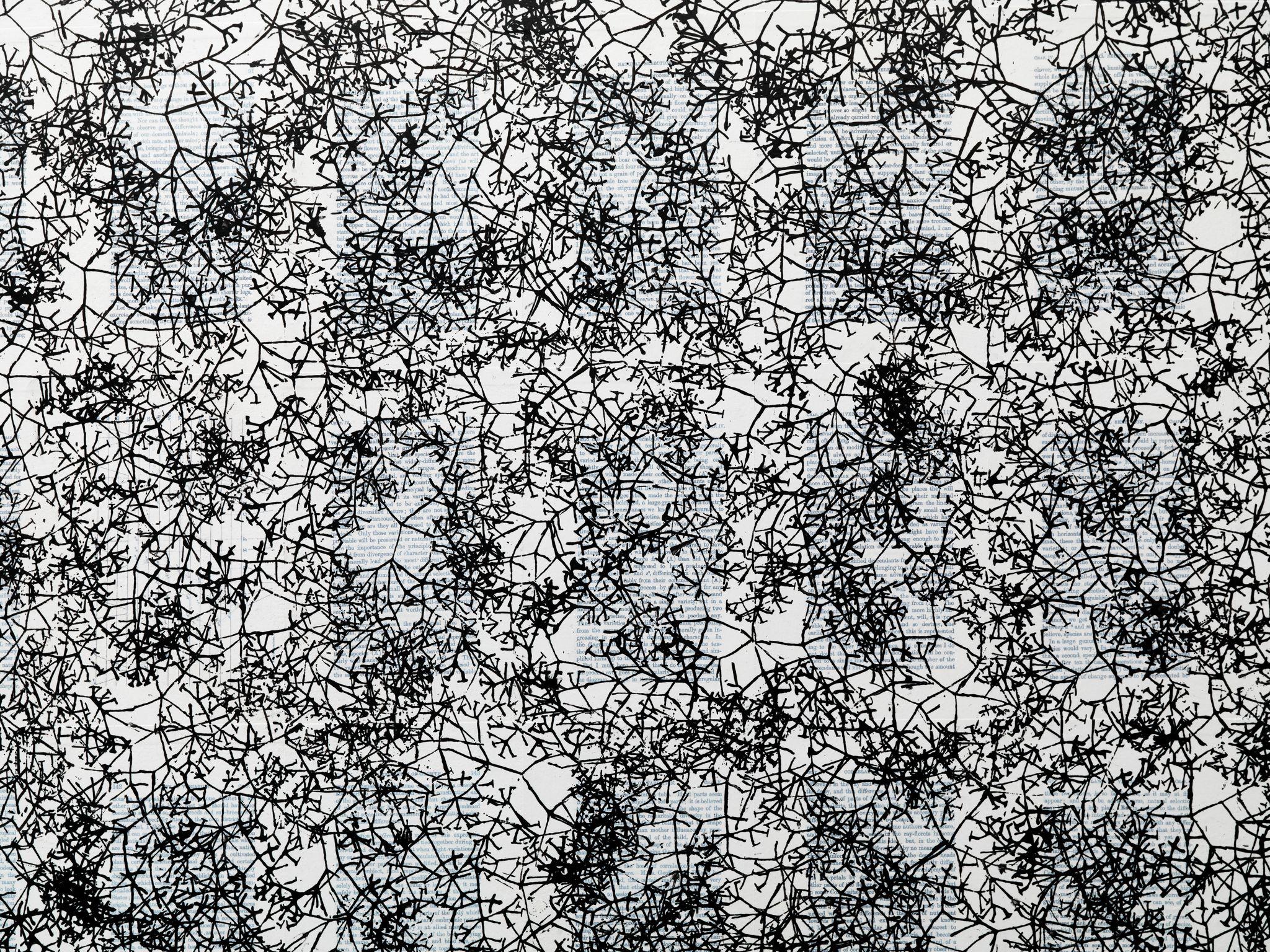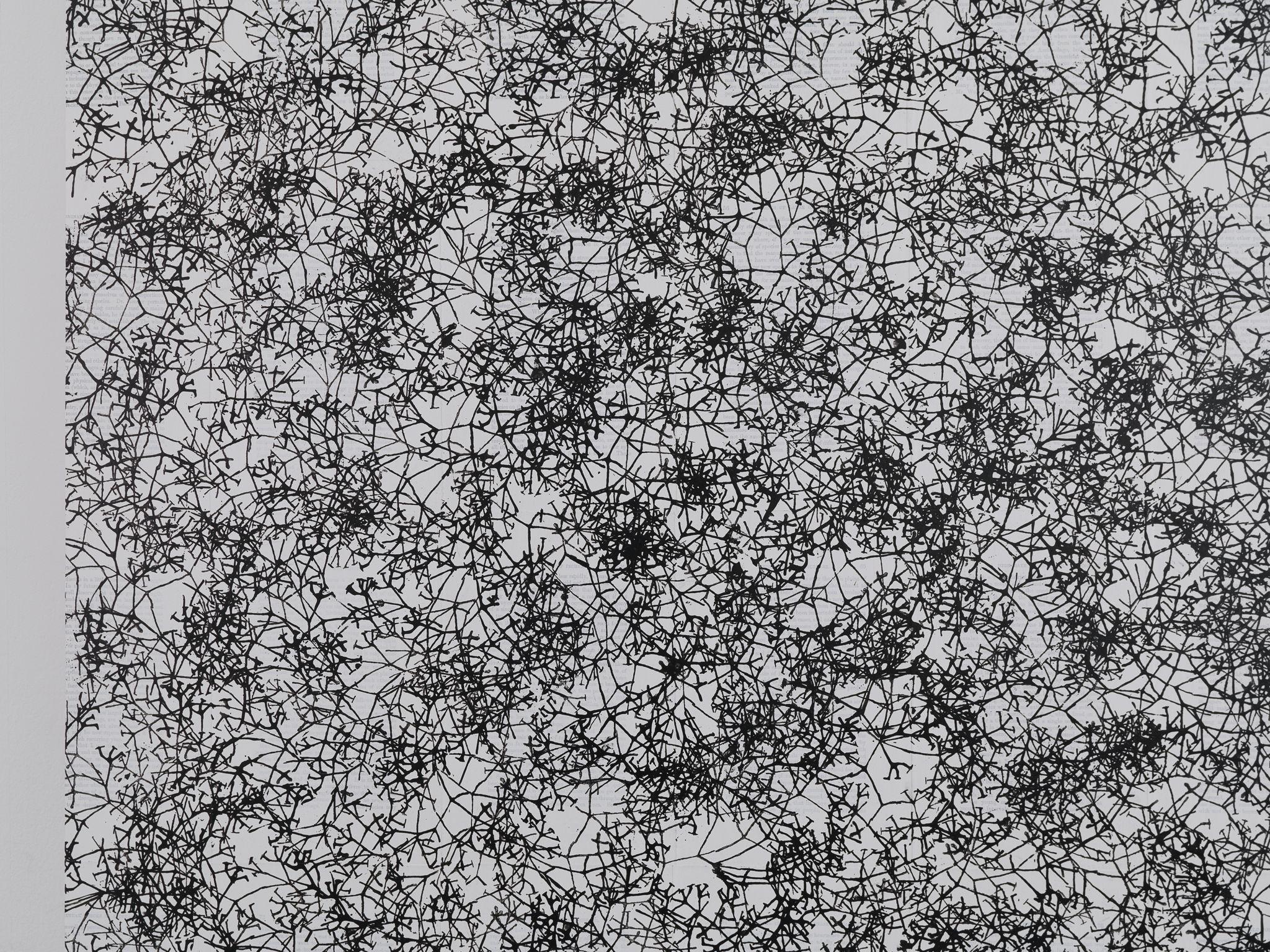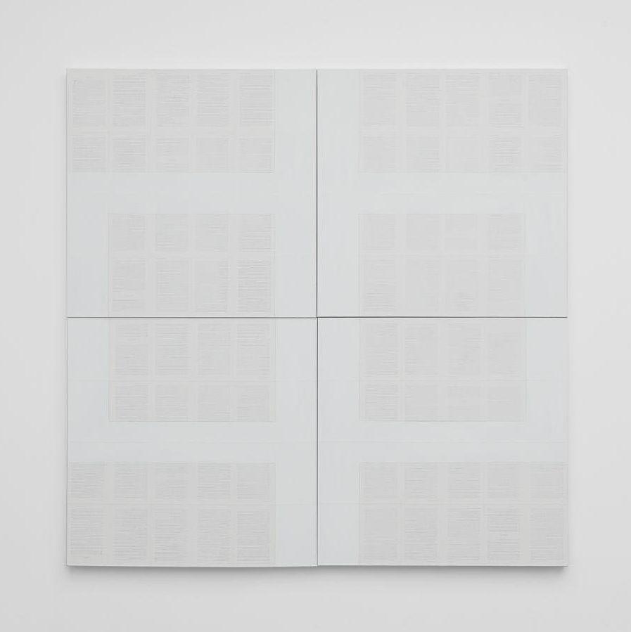 In a process they called ‘jammin’, Rollins or one of the students read aloud from a selected text while the other members drew, relating the stories to their own experiences. Tim Rollins and K.O.S. (Kids of Survival) began producing works of art directly on the pages of these books, which they cut out and placed on a canvas in a grid – a technique that developed into a unique artistic signature. Thirty-one years later, works by K.O.S. members can be found in the permanent collections of over ninety-five museums worldwide. Tim Rollins and K.O.S. continue to conduct art workshops with young people and to produce collaborative works in the form of drawings, photographs, sculptural objects and paintings on canvas and paper.