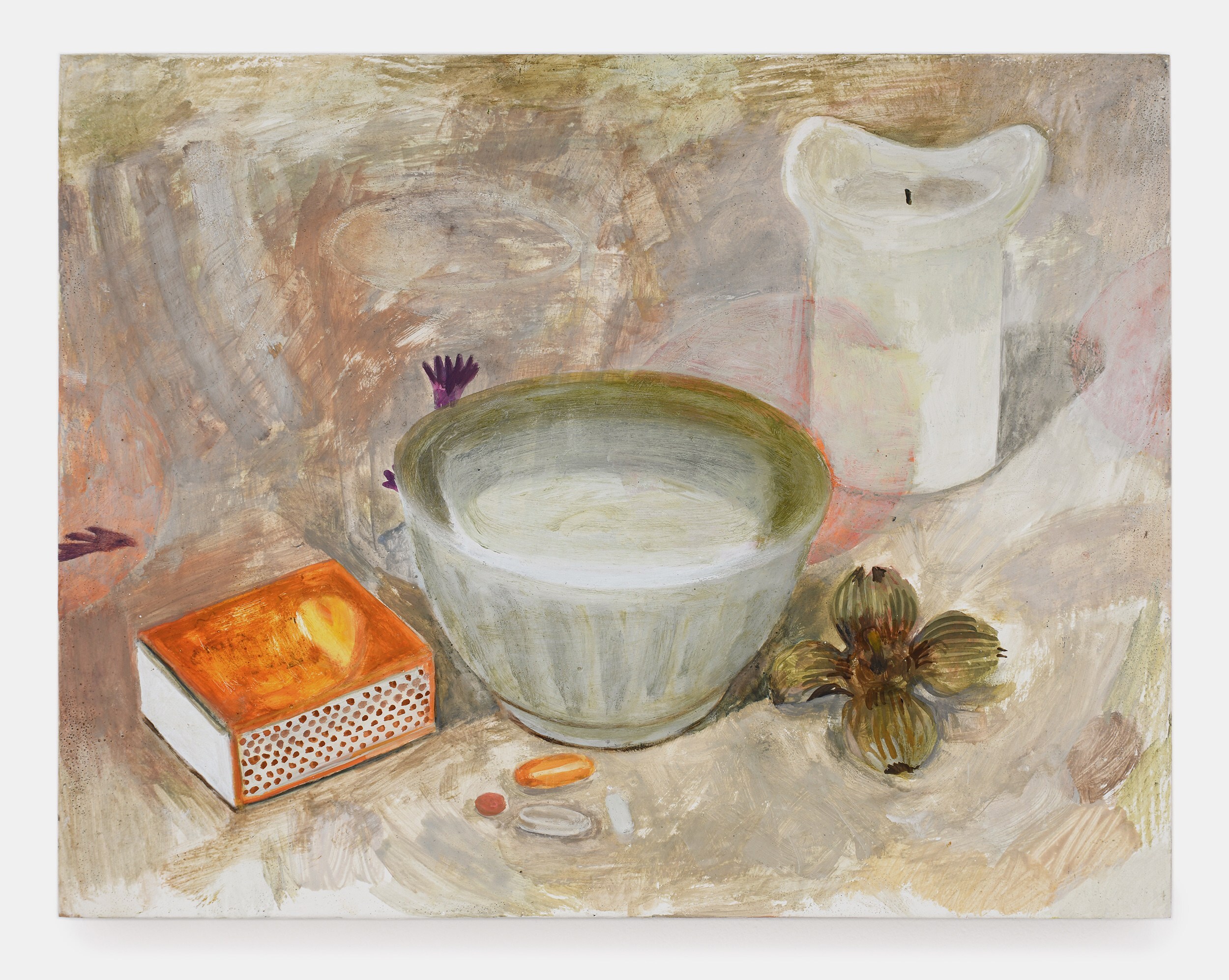 Other paintings, which include still lifes, interiors, landscapes and animals, are painted from photographs or memory. Like snapshots, or visual souvenirs, they depict objects, places and situations that are lodged in the artist’s mind. And while Herbelin’s oeuvre often feels both placeless and timeless, it nevertheless charts a process of movement and displacement between cities such as New York, Strasbourg, Paris and Tel Aviv, or the rural setting of her grandparents’ house in the South of France.