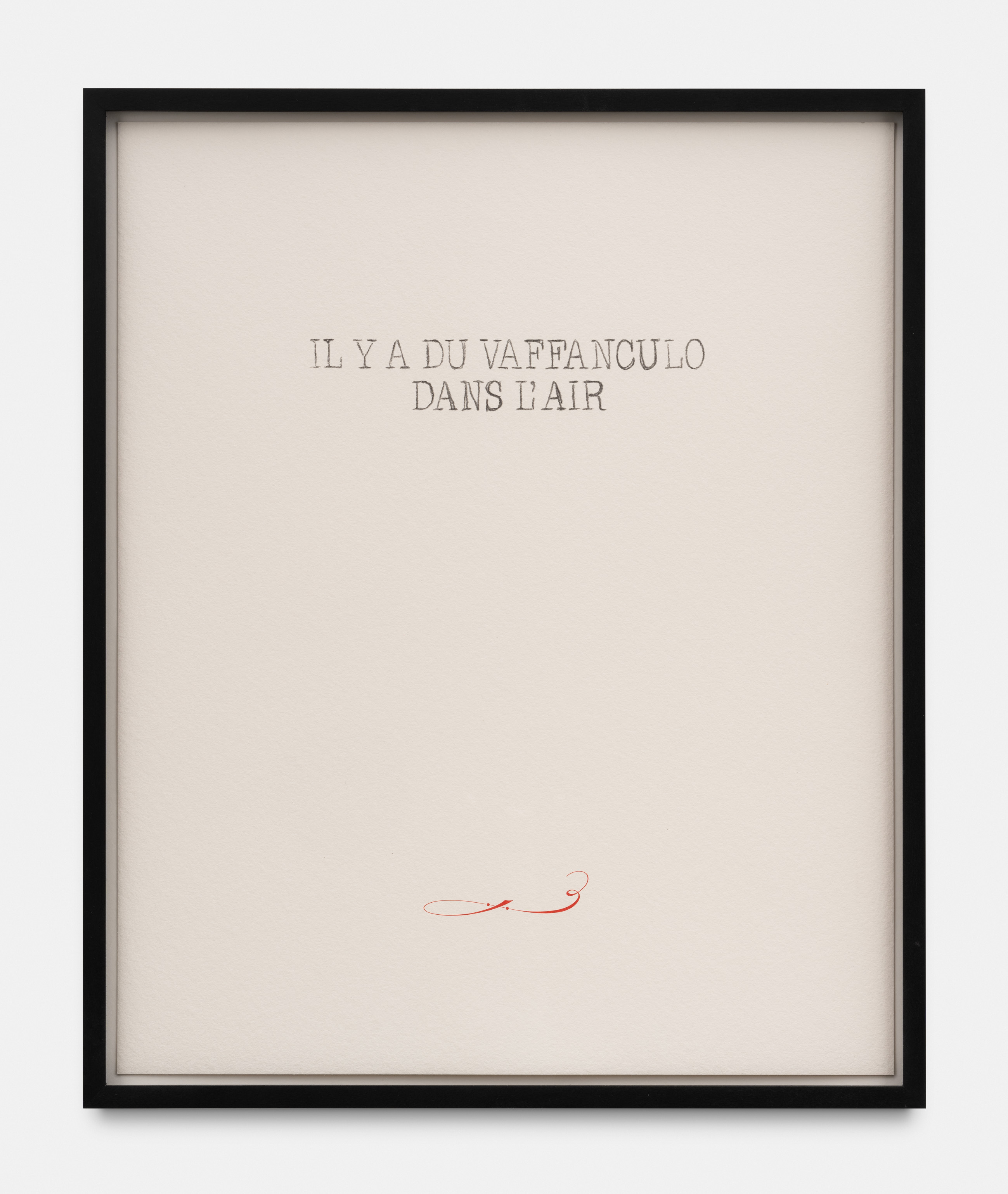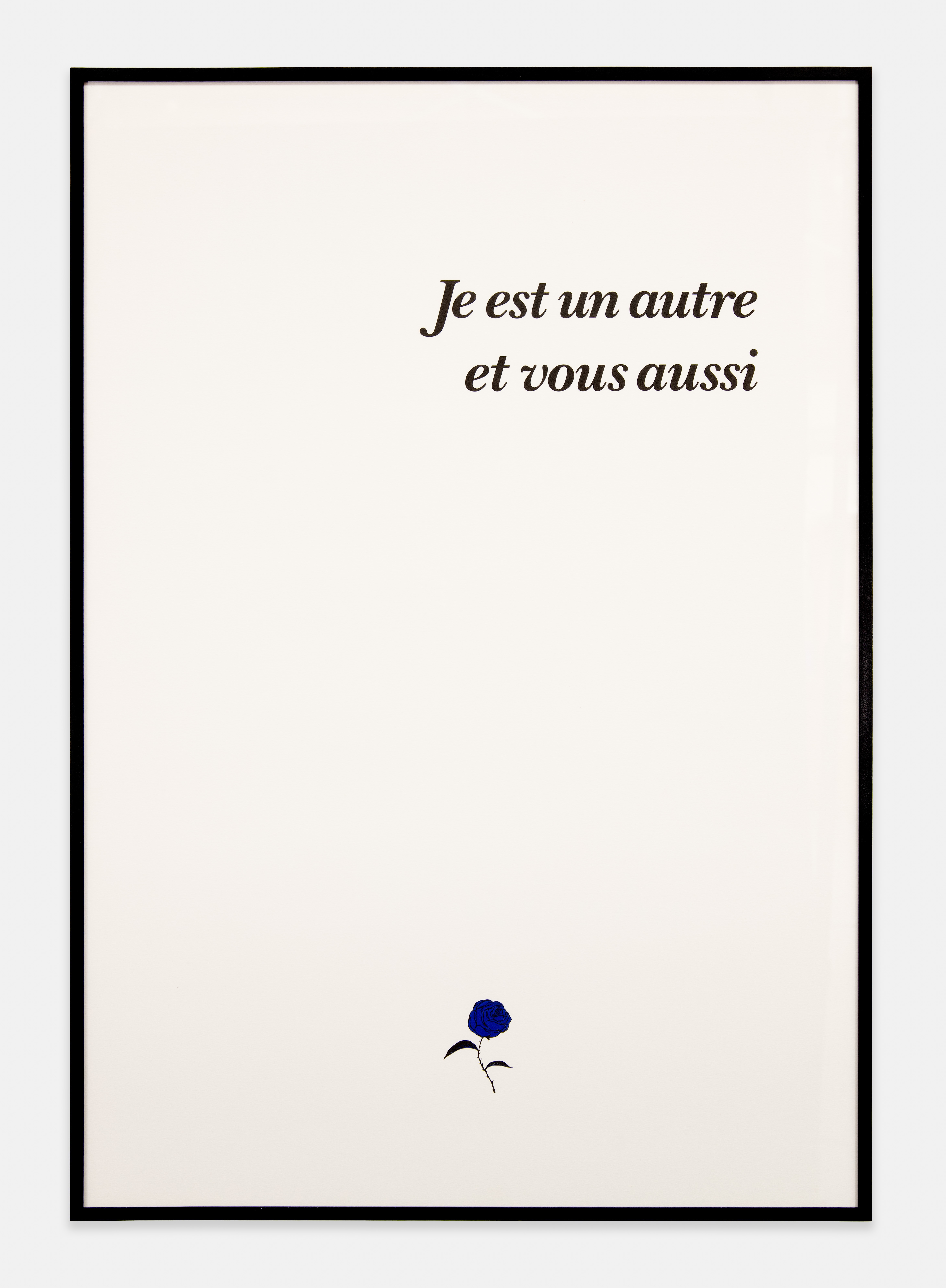 Vie d’Artiste, Vie de Chien, Vie de Prince is an early silkscreen (1976) that could be read as a manifesto for Jan's life, one of total commitment to his work, regardless of the costs or rewards. He had a passion for languages and an ambiguous relationship with his Belgian and Flemish identity. He rarely used Dutch in his work, but he had a deep appreciation for the evocative power of foreign languages such as French, Italian, and English, with which he enjoyed playing. I chose two other editions: Je veux bien finir mes jours comme Nietzsche [I want to live out my days like Nietzsche], or Je est un autre et vous aussi [I is another, and so are you) as another form of self-portraits. Together with his photographic self-portraits, they express the artist’s inability to engage with the everyday, choosing instead to live within an artificial realm of art and shifting identities. In his photographic self-portraits, he is often seen hiding behind masks or playing chess in front of theatrical backgrounds, existing in one mise-en-scène at a time.¹