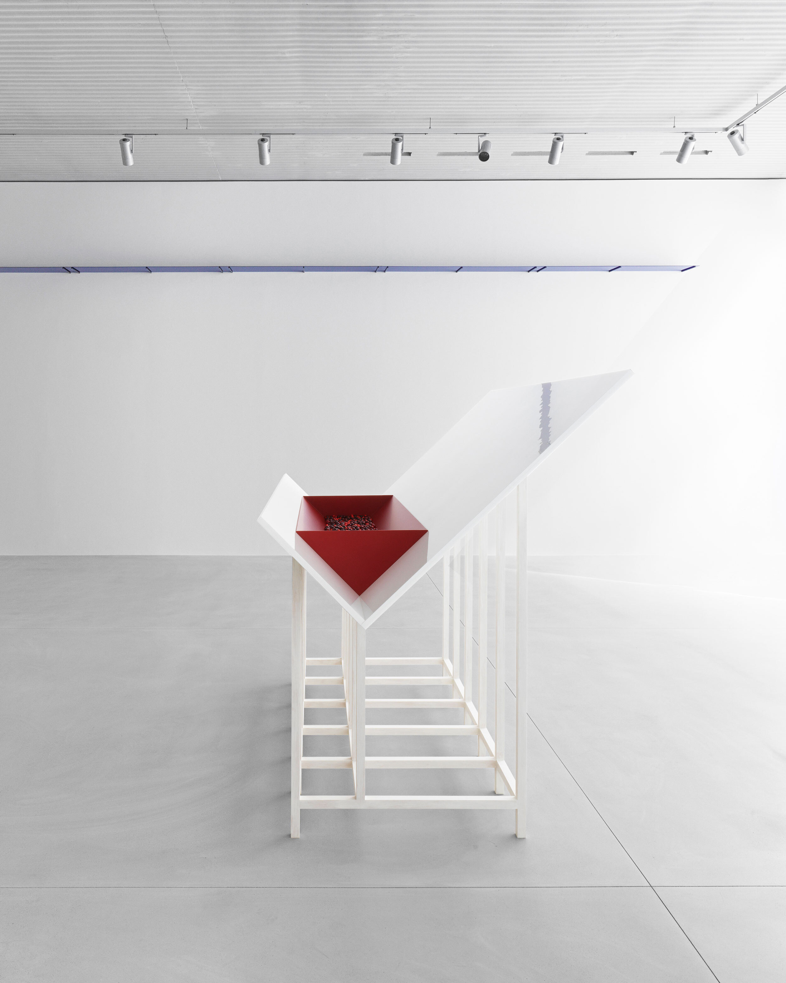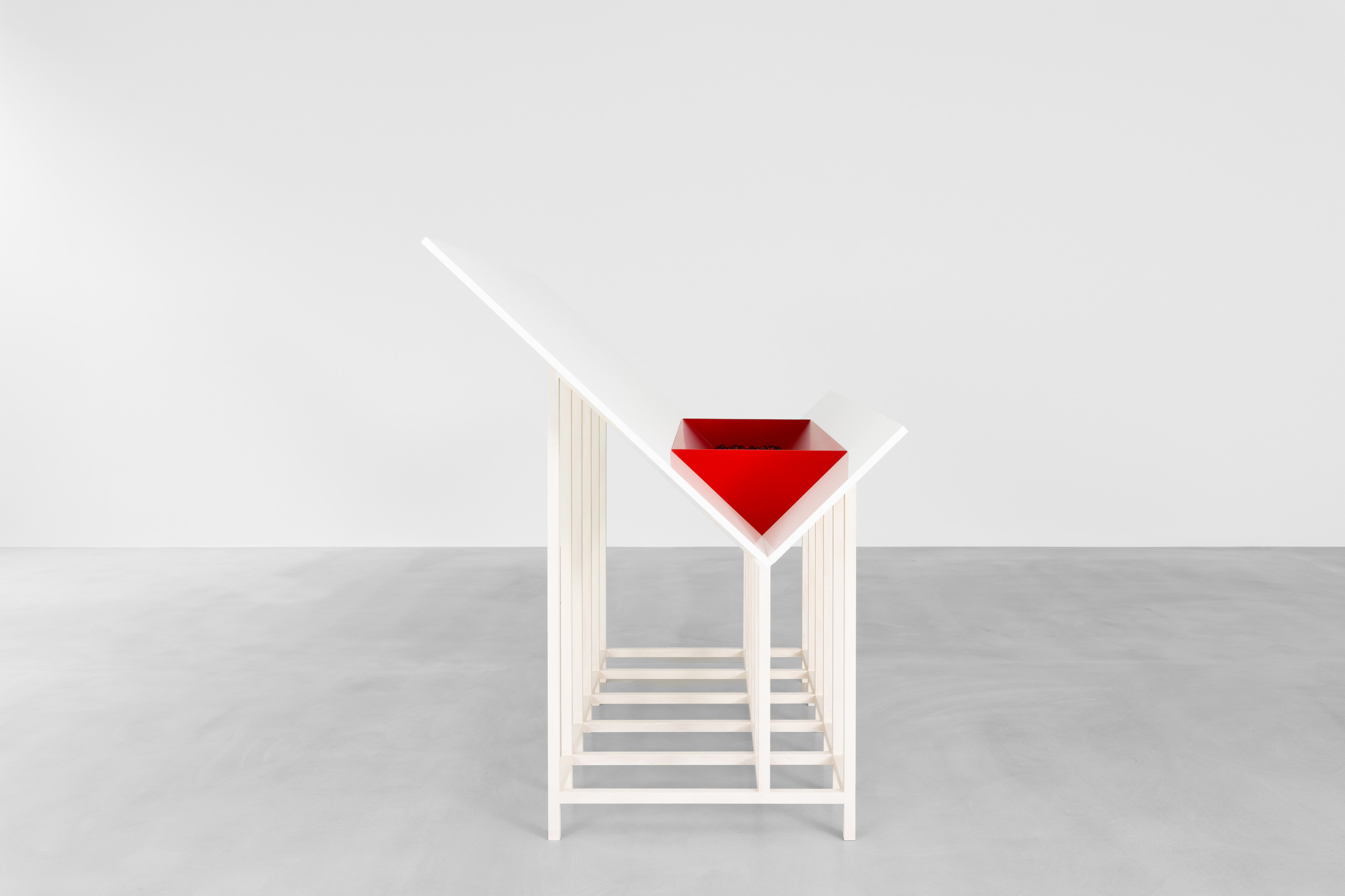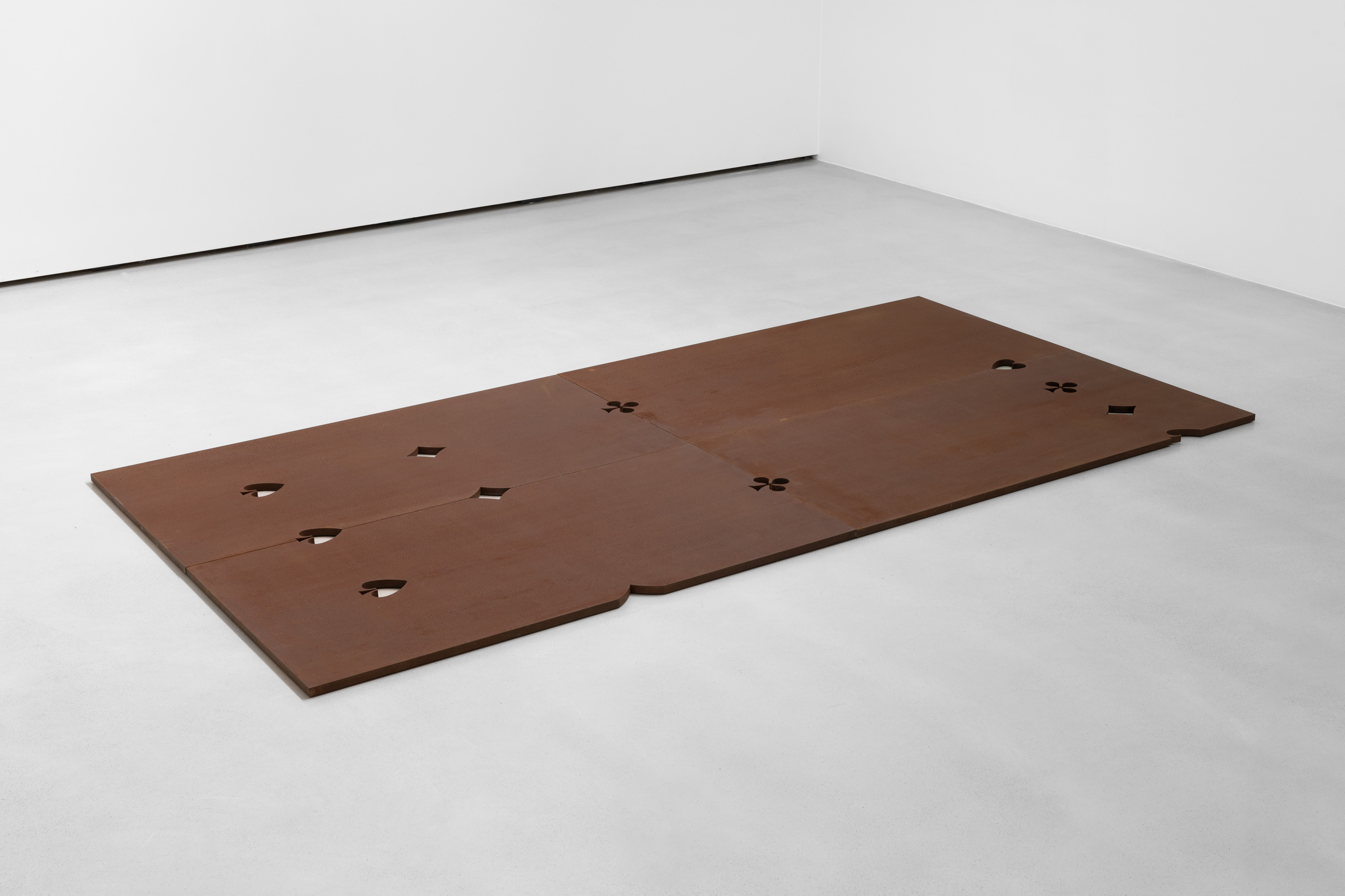 There was a line by Fernando Pessoa that Jan liked to quote: I would have liked to be a simple soul, a man of limited or lofty ambitions, married to the daughter of my washerwoman (‘The Book of Disquiet’). Vercruysse’s work is deeply marked by melancholia—a perverse longing for what is past and can never be again, or for what will never be at all. His art gives sculptural form to a feeling more often expressed in music or poetry. From his first monumental and solemn Tombeaux (a tomb but also a poem to celebrate the dead) or Atopies (simultaneously a non-site and the absence of utopia), Vercruysse moves towards more playful works that integrate tropes such as playing cards, labyrinth, glass marbles or music. He introduces colour, coded languages and deadpan humour. I believe that this prolific period has not yet received the attention it deserves. It represents the other side of the coin: a celebration of earthly pleasures—the things that make life bearable when happiness is unattainable.