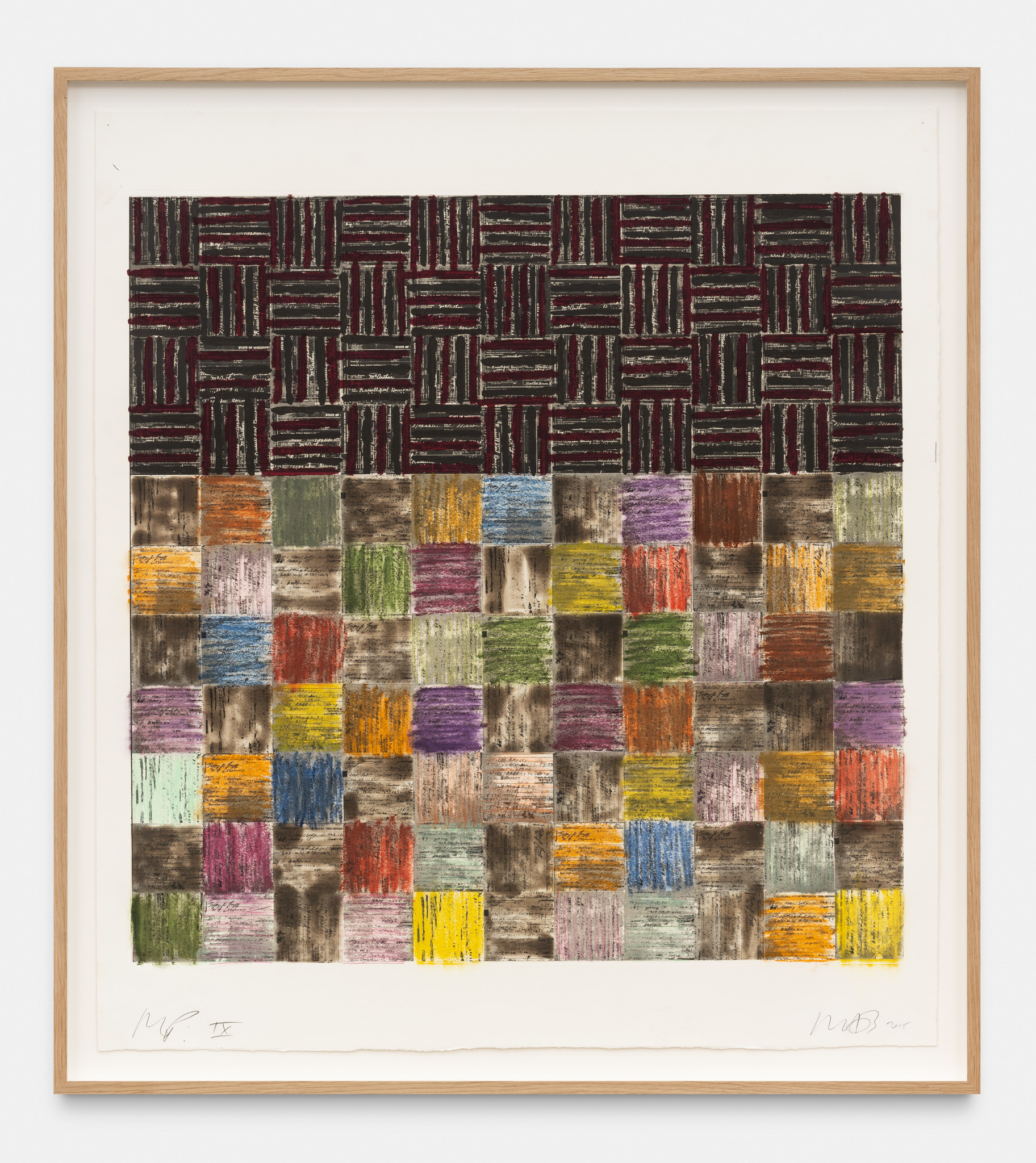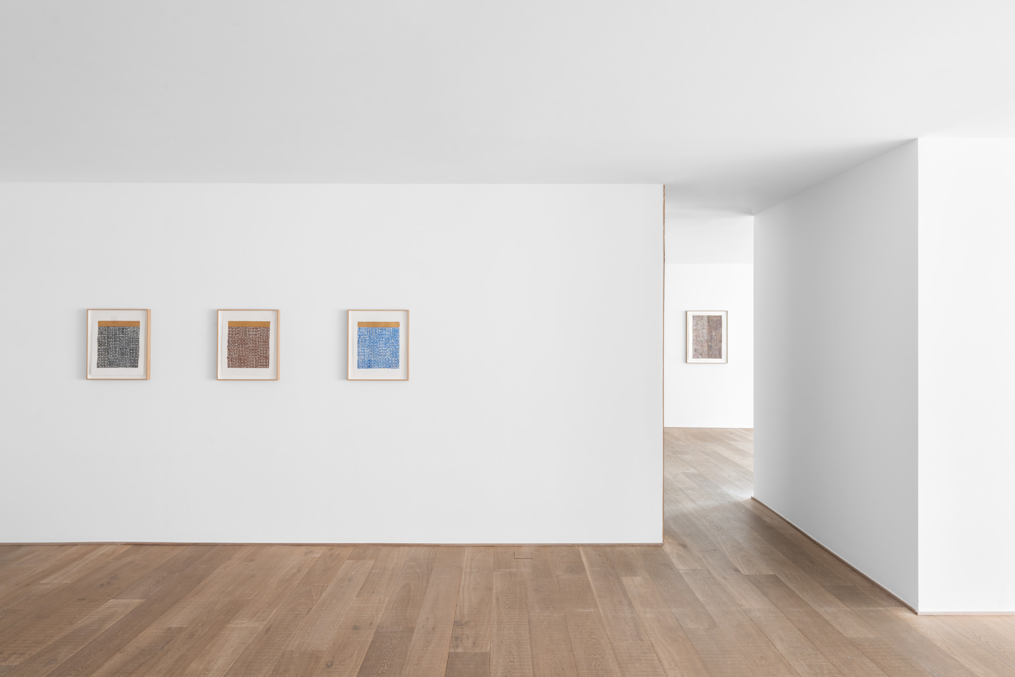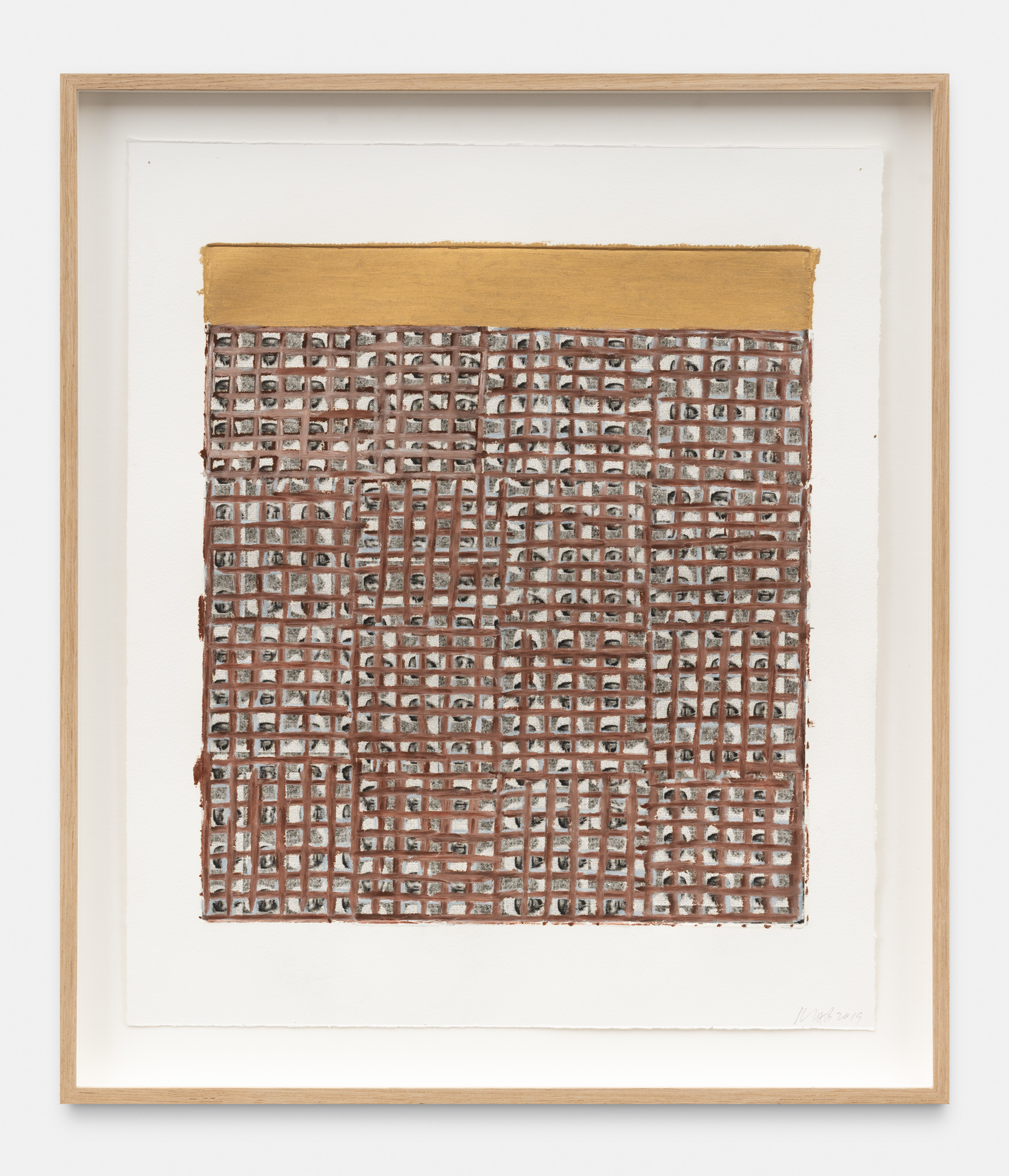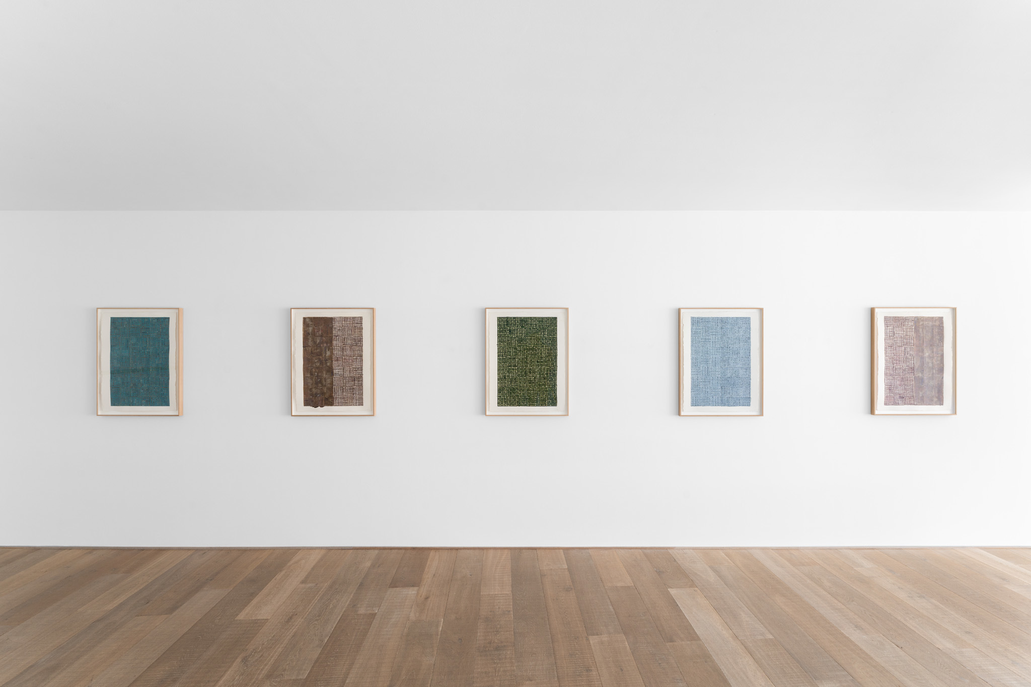 An extensive selection of McArthur Binion’s recent drawings are presented in Paper:Work. The artist creates these studies, as he does his paintings, using a two-handed technique. Replacing the ‘under conscious’ is an initial ground painting to which Binion applies a secondary layer of patterns, and marks, thereby mirroring the dual structure of the large-format paintings. The titles of the drawings, such as DNA:Search and Self-Portrait, allude to their deeply personal significance. Binion has long investigated the work of the black avant-garde through his own identity and broader collective, cultural self-hood. His recent work, titled Modern Ancient Brown, is the perfect summation of Binion’s introspective yet outward-looking quest. It is also the name of the foundation that he established in Detroit, Michigan in 2019. The organisation actively supports the intersection between the visual and literary arts both nationally and in the Detroit community. In Paper:Work, the artist reveals his most personal studies, made during moments of intense concentration when, as he himself says, “I’m not discovering the under-conscious, I’m becoming it.”