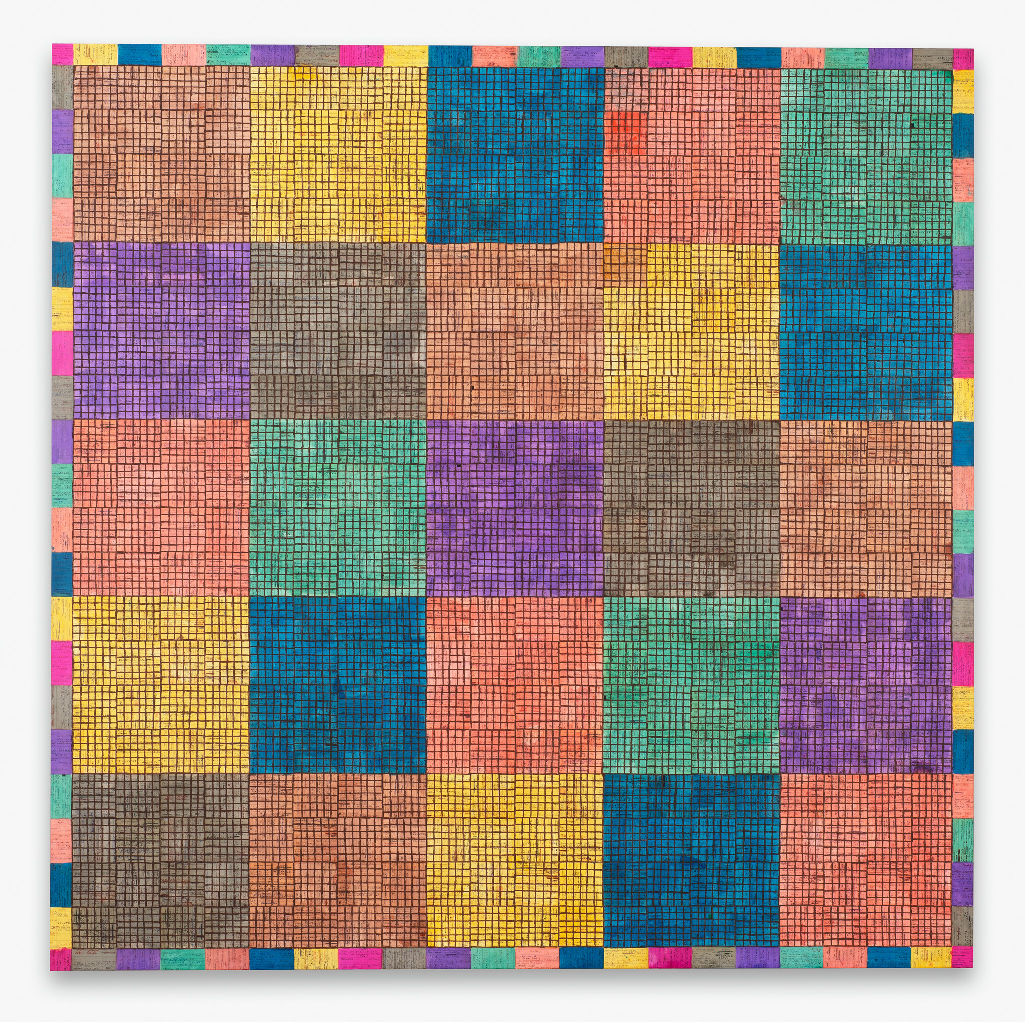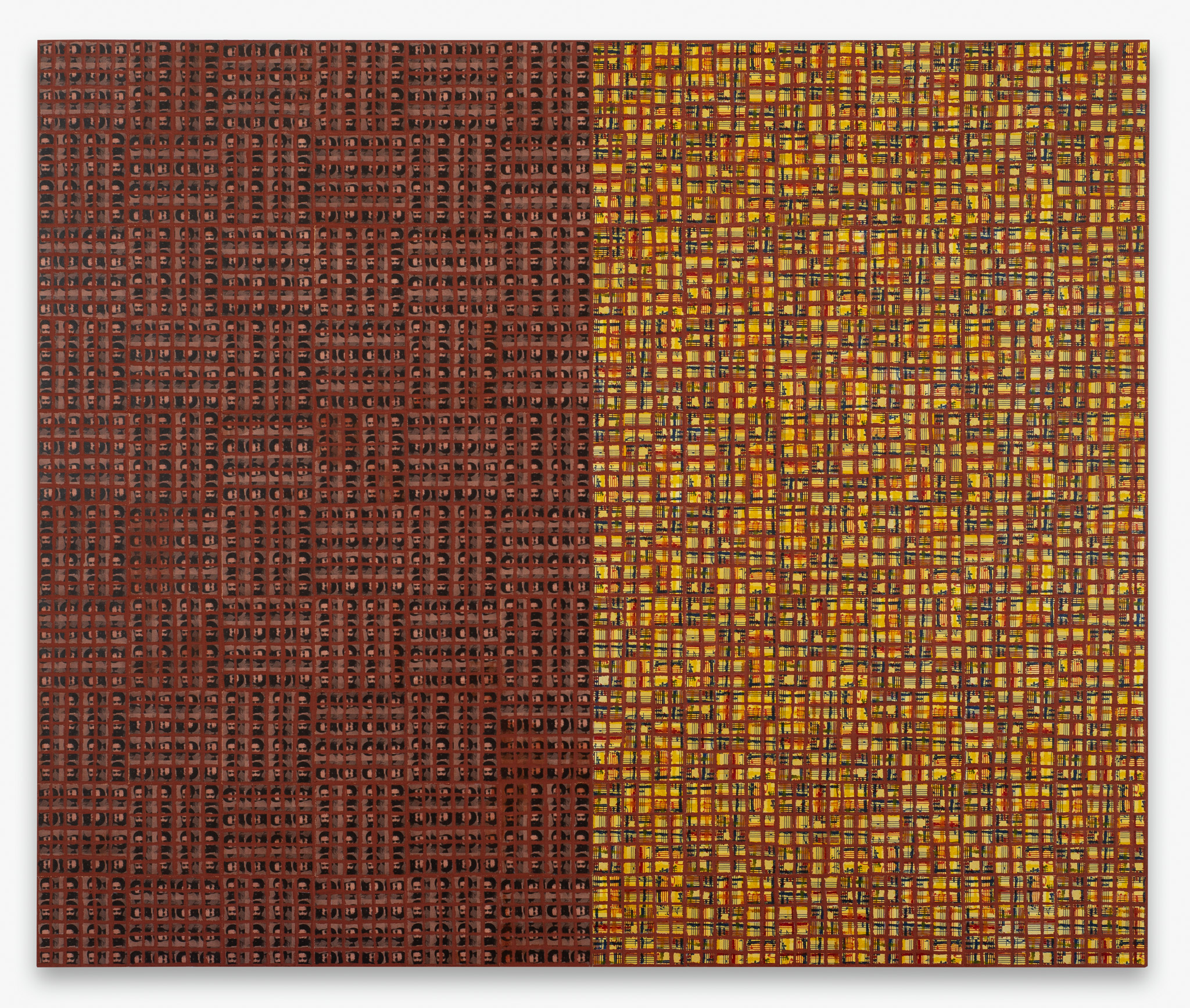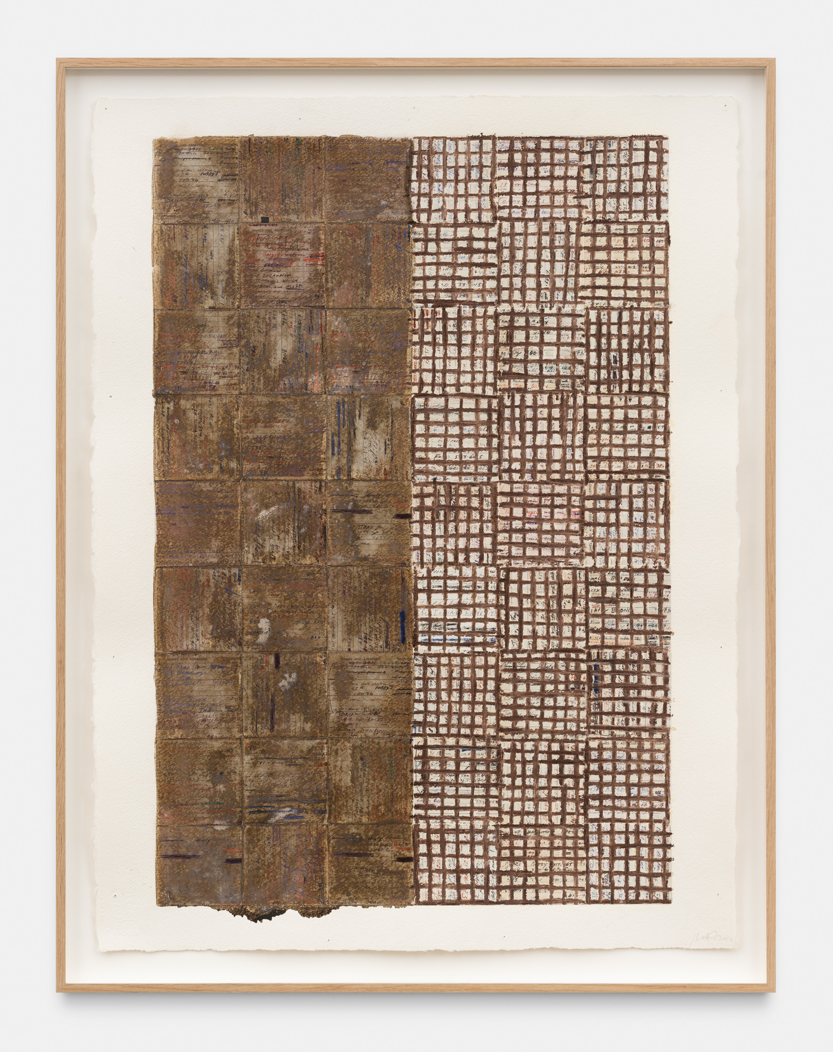 An extensive selection of McArthur Binion’s recent drawings are presented in Paper:Work. The artist creates these studies, as he does his paintings, using a two-handed technique. Replacing the ‘under conscious’ is an initial ground painting to which Binion applies a secondary layer of patterns, and marks, thereby mirroring the dual structure of the large-format paintings. The titles of the drawings, such as DNA:Search and Self-Portrait, allude to their deeply personal significance. Binion has long investigated the work of the black avant-garde through his own identity and broader collective, cultural self-hood. His recent work, titled Modern Ancient Brown, is the perfect summation of Binion’s introspective yet outward-looking quest. It is also the name of the foundation that he established in Detroit, Michigan in 2019. The organisation actively supports the intersection between the visual and literary arts both nationally and in the Detroit community. In Paper:Work, the artist reveals his most personal studies, made during moments of intense concentration when, as he himself says, “I’m not discovering the under-conscious, I’m becoming it.”