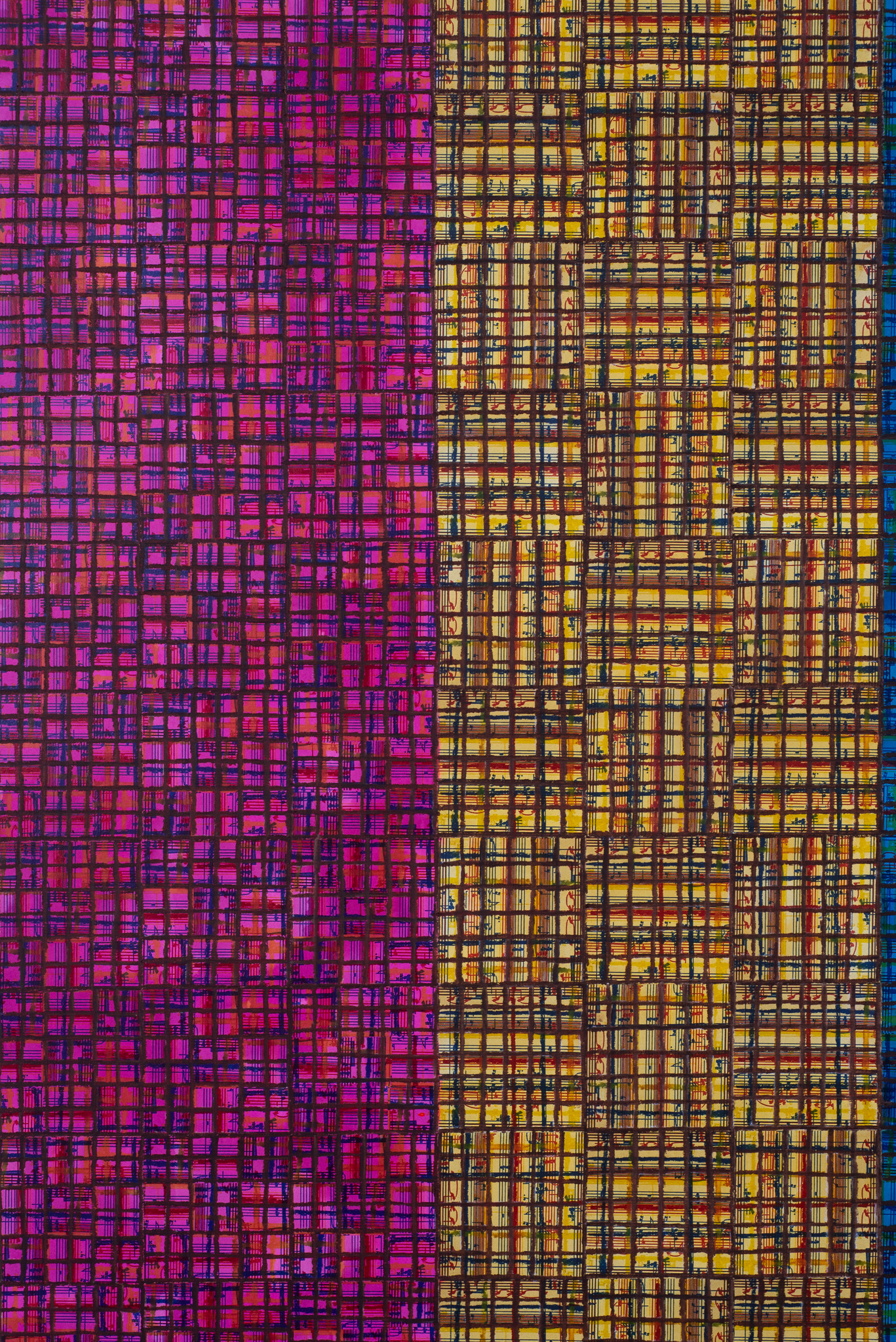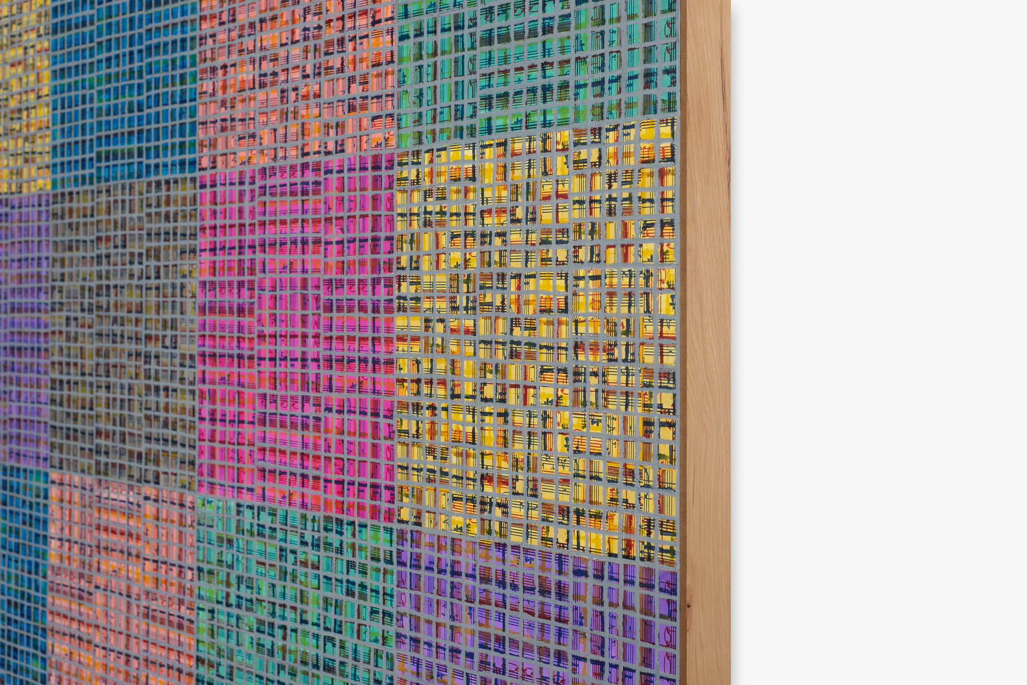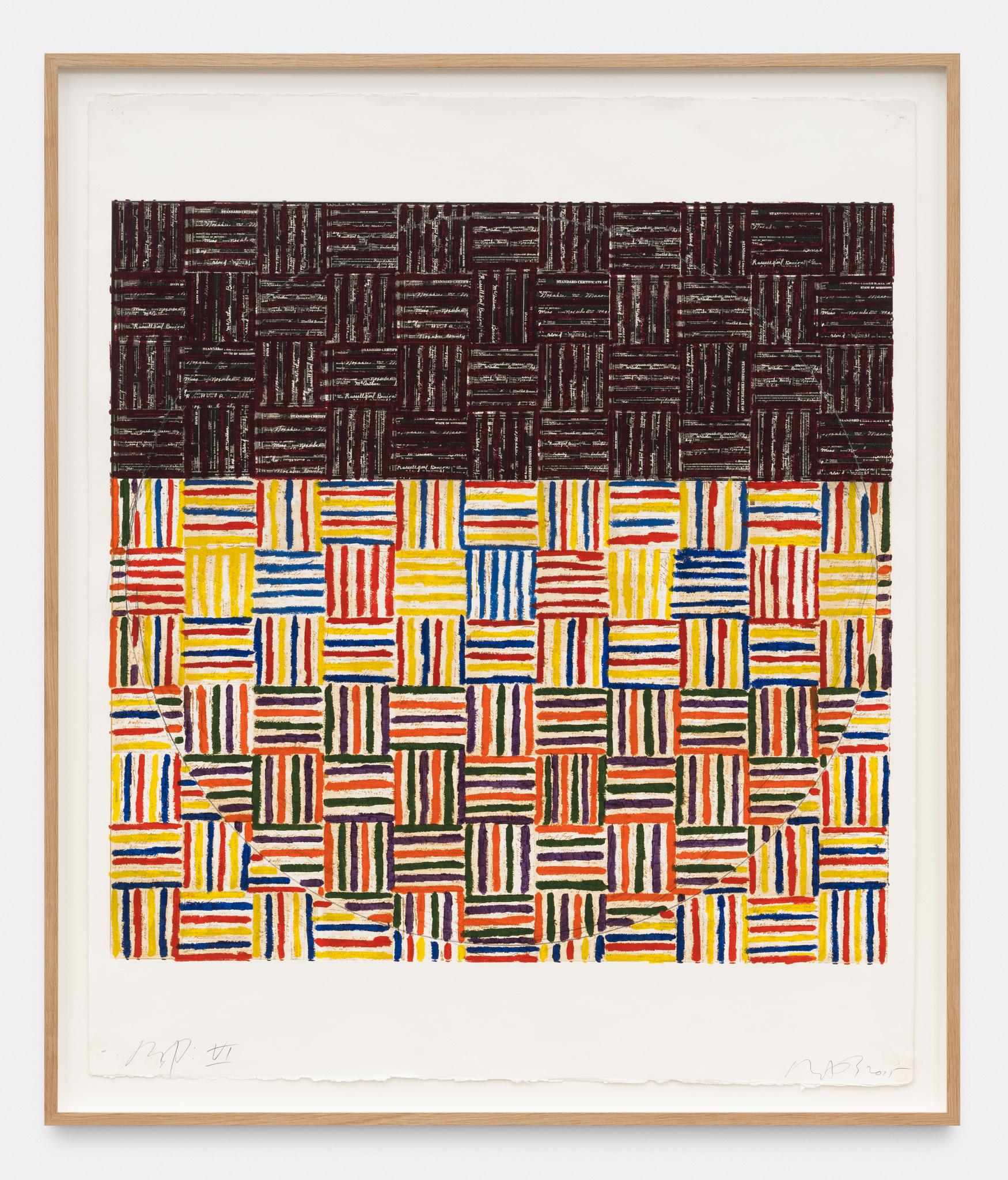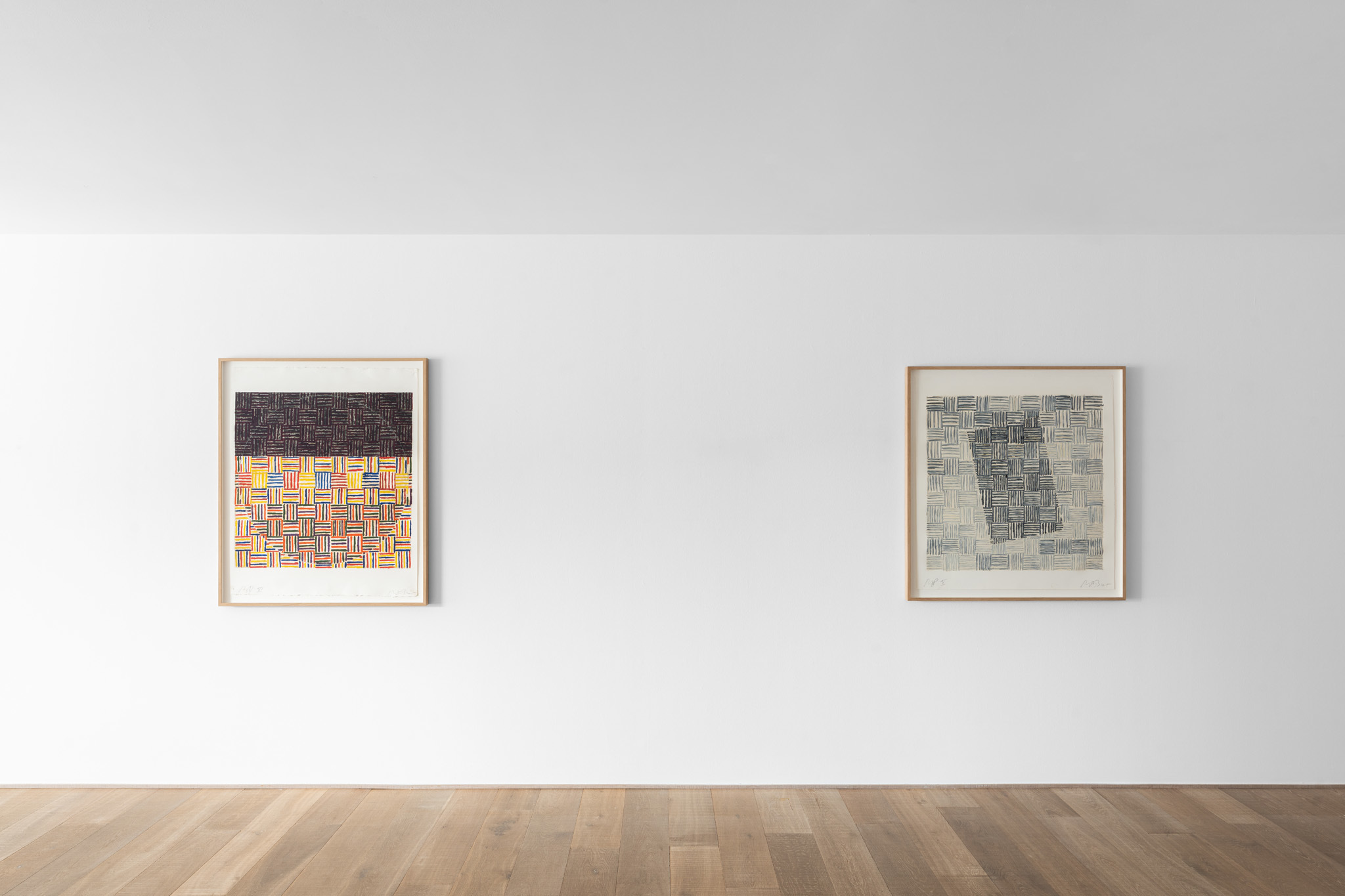 An extensive selection of McArthur Binion’s recent drawings are presented in Paper:Work. The artist creates these studies, as he does his paintings, using a two-handed technique. Replacing the ‘under conscious’ is an initial ground painting to which Binion applies a secondary layer of patterns, and marks, thereby mirroring the dual structure of the large-format paintings. The titles of the drawings, such as DNA:Search and Self-Portrait, allude to their deeply personal significance. Binion has long investigated the work of the black avant-garde through his own identity and broader collective, cultural self-hood. His recent work, titled Modern Ancient Brown, is the perfect summation of Binion’s introspective yet outward-looking quest. It is also the name of the foundation that he established in Detroit, Michigan in 2019. The organisation actively supports the intersection between the visual and literary arts both nationally and in the Detroit community. In Paper:Work, the artist reveals his most personal studies, made during moments of intense concentration when, as he himself says, “I’m not discovering the under-conscious, I’m becoming it.”