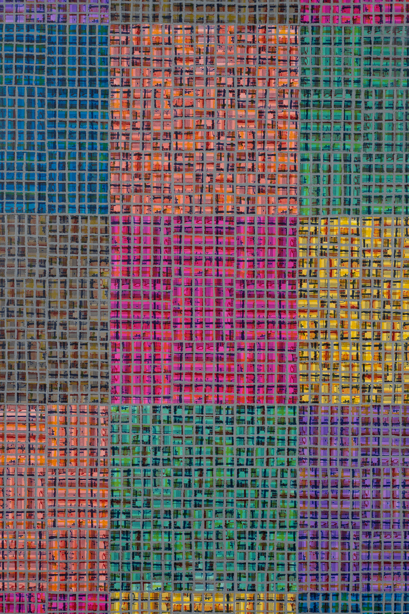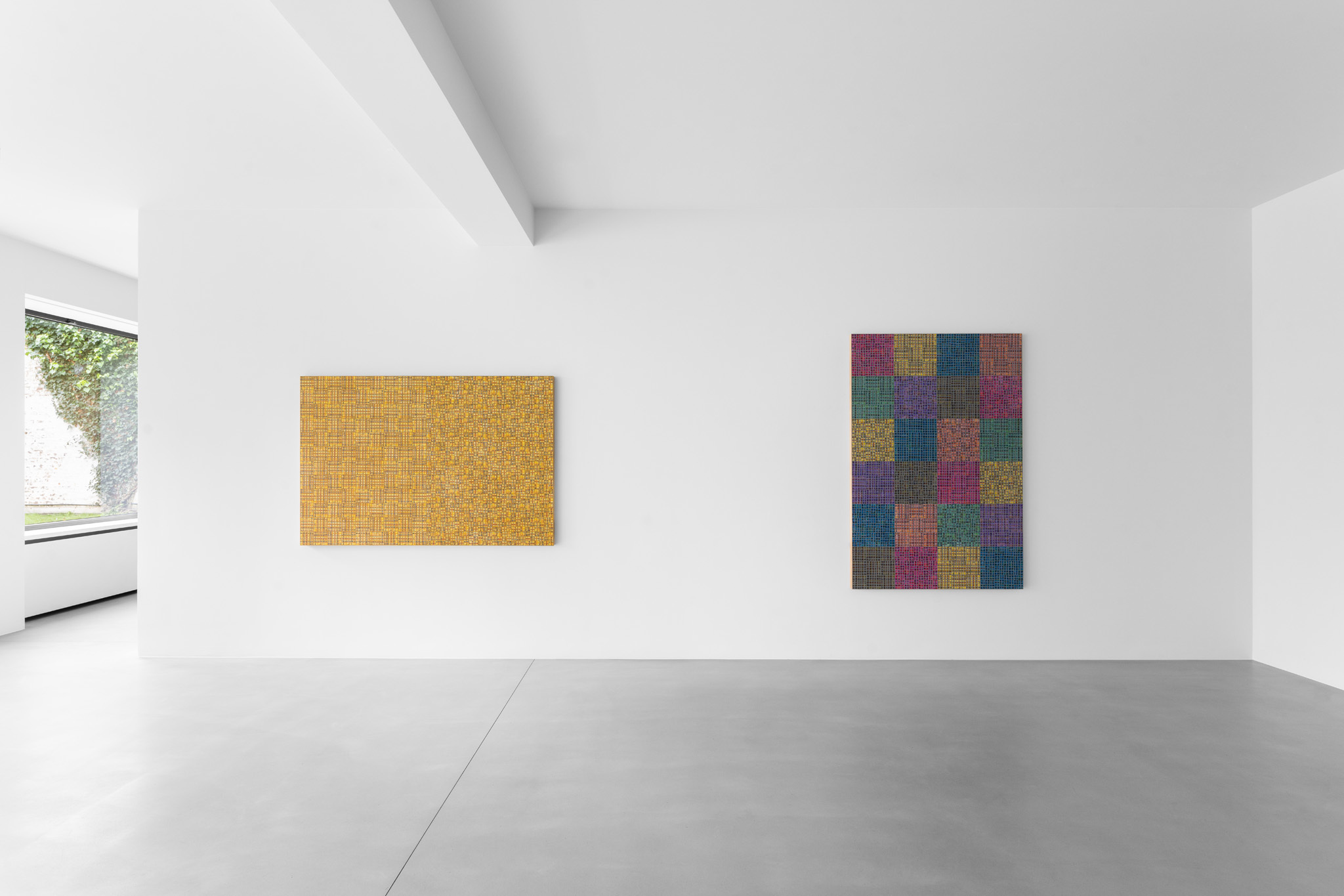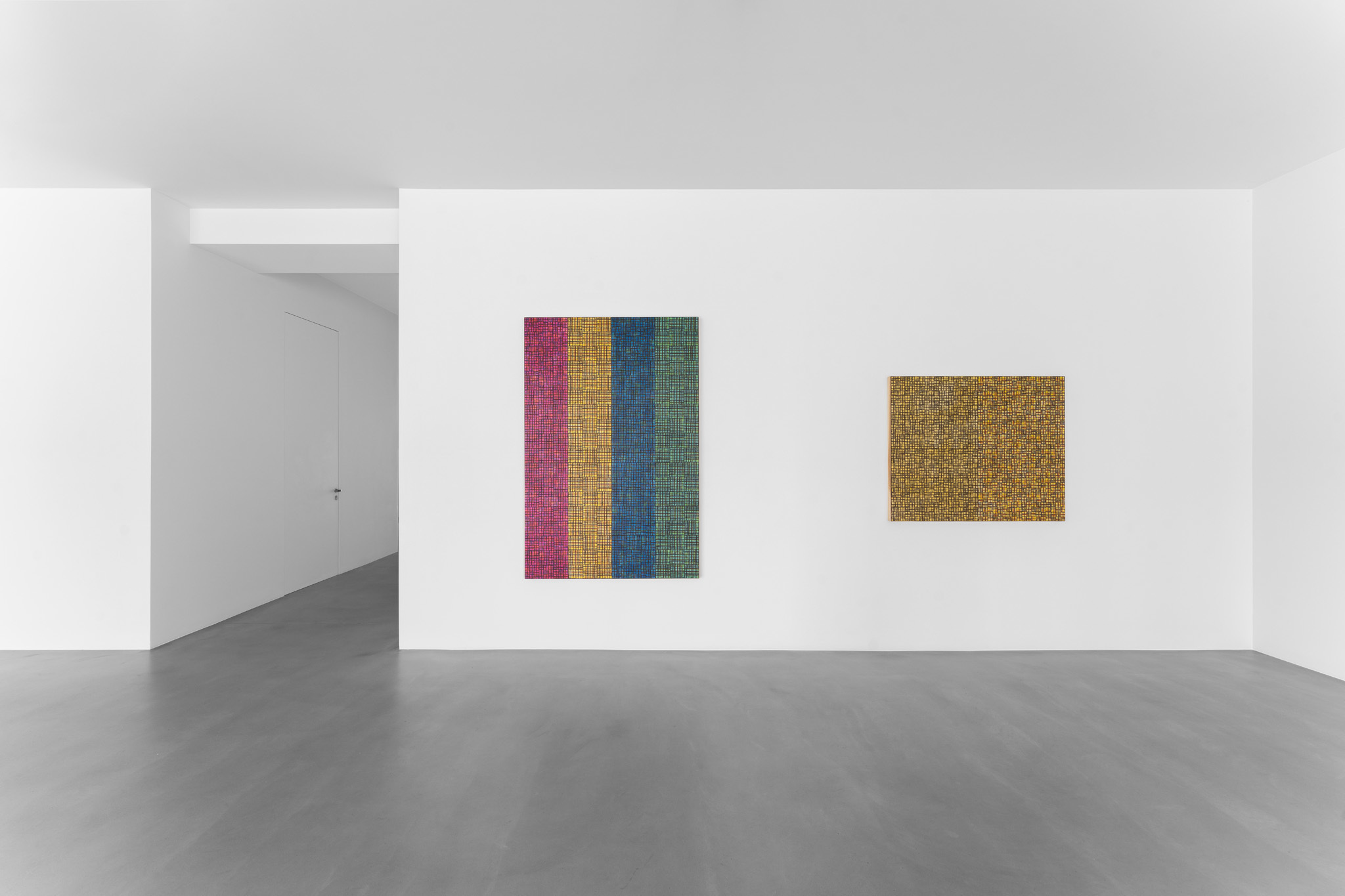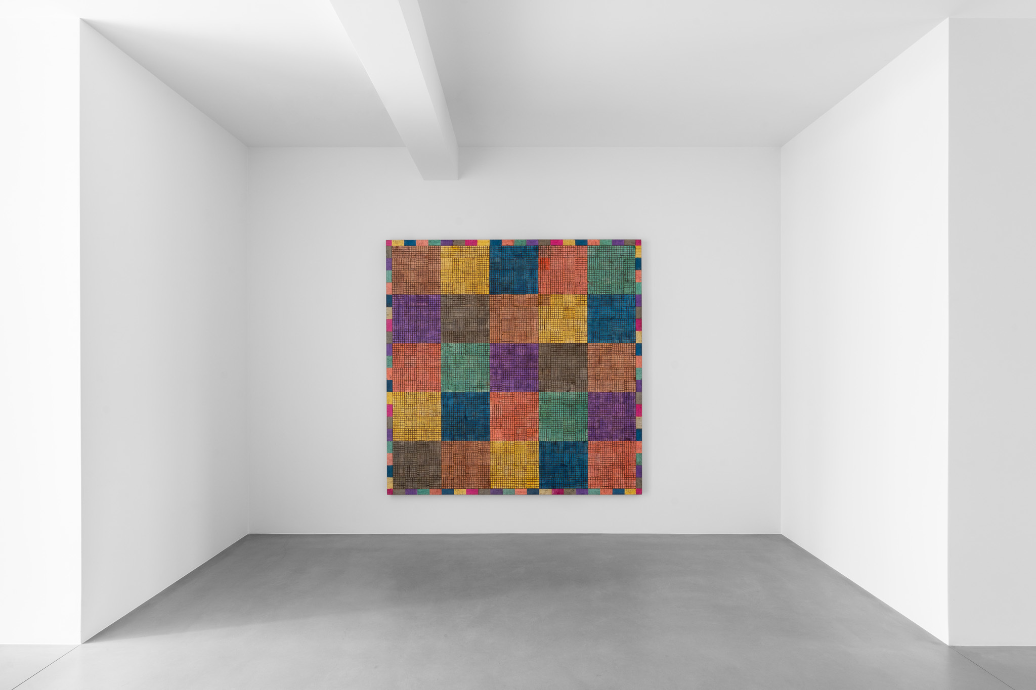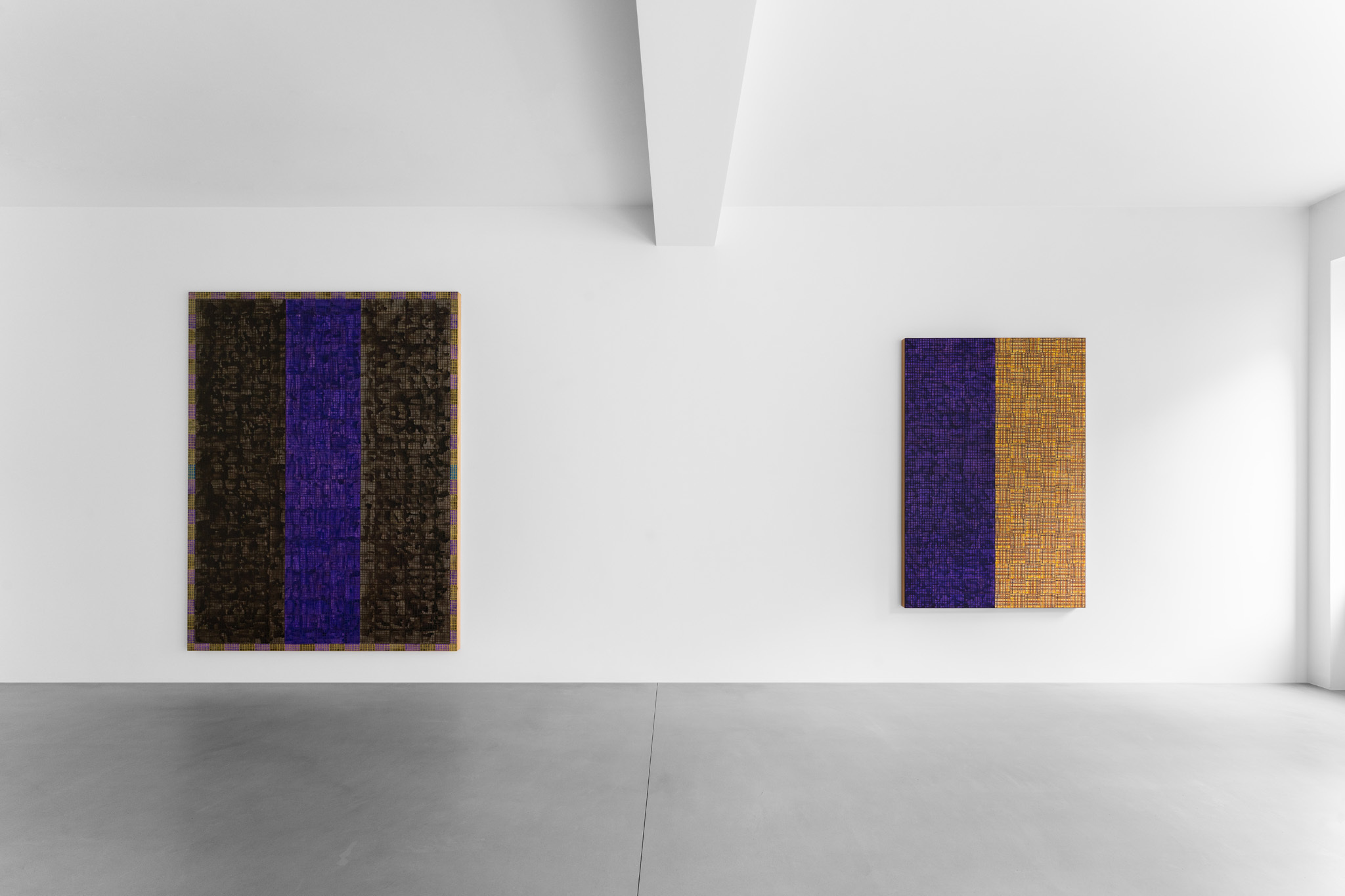 For his debut solo exhibition with the gallery, McArthur Binion (b. 1946, Macon, Mississippi), presents a new body of work created in Chicago, where he primarily lives and works. Large format oil-stick paintings are assembled in the Van Eyck gallery under the title Visual:Ear, a reference to Binion’s abiding interest in the visual translation of music into colour and form. Paper:Work, on show in the Rivoli gallery, presents a corpus of recent drawings. The exhibition provides a comprehensive overview of the artist’s oeuvre across a wide range of scales and showcase the latest developments in his decades-long practice.