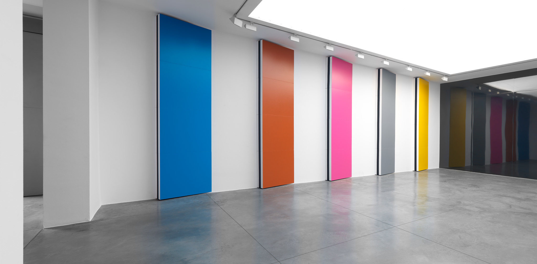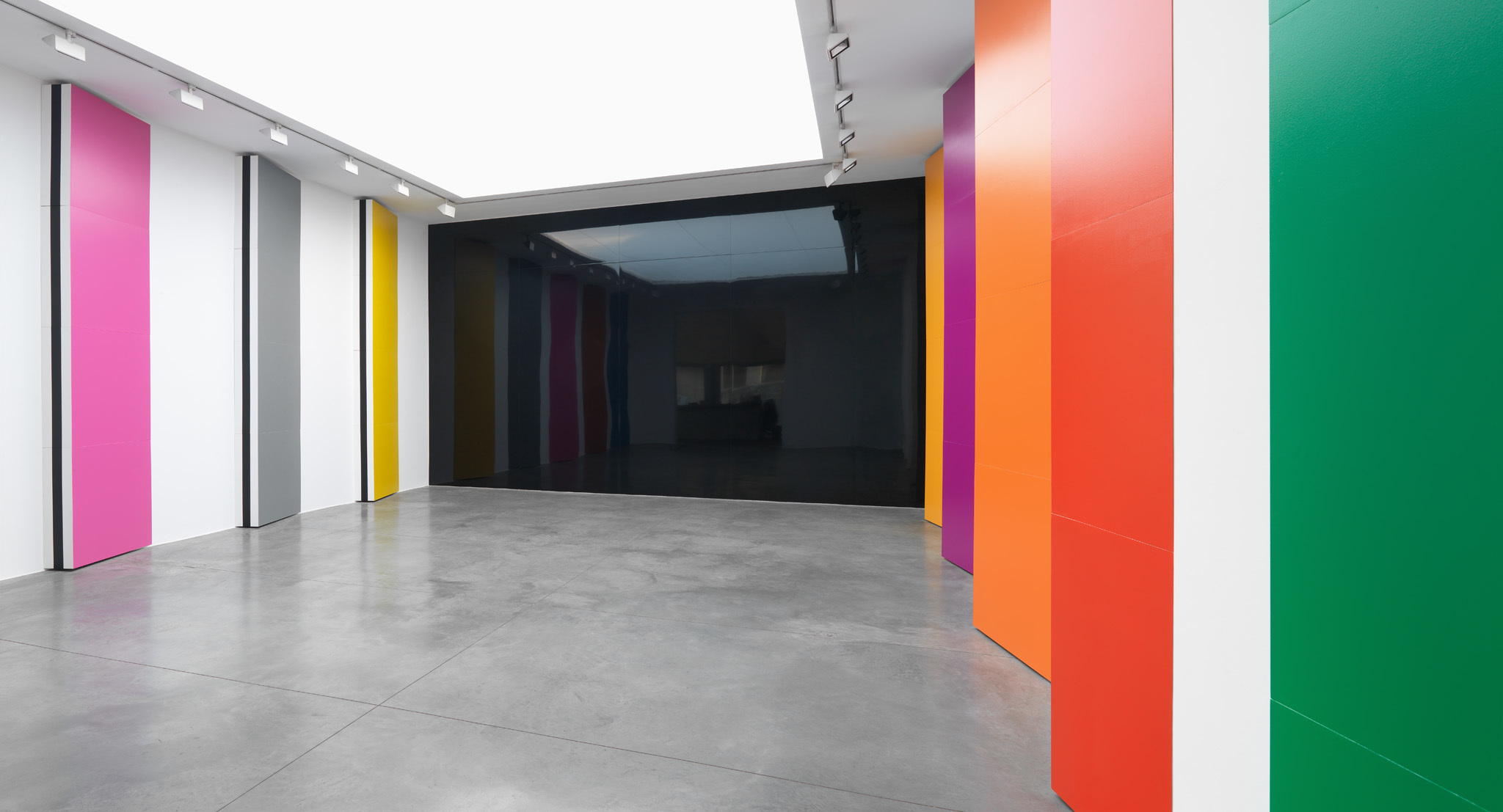Voir Double, travail in situ is the second exhibition by Daniel Buren at the gallery. Daniel Buren has exhibited in some of the largest art institutions in the world, such as the Guggenheim Museum in New York (2005), the Centre Pompidou and the Palais de Tokyo in Paris. He has realized large public projects all over the world and his work is present in numerous public collections. At this moment, Daniel Buren is showing La Coupure, travail in situ, a large in situ installation at the Musée Picasso in Paris.