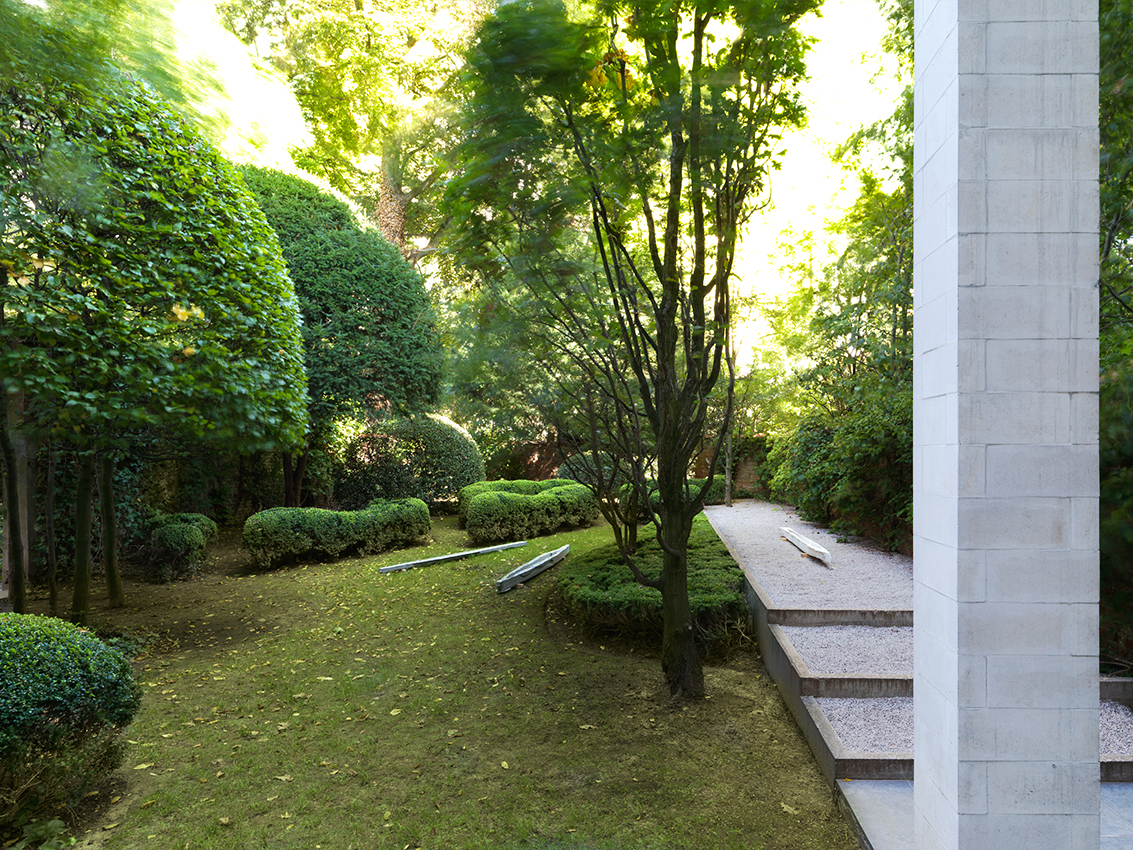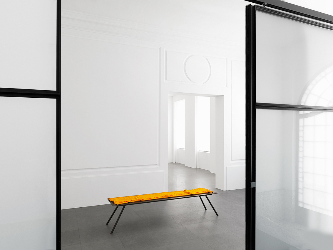 The enigmatic titles of these sculptures, Black Caviar, Secretariat, Grand Flaneur, in reality make reference to famous race horses. The idea of movement, and beyond this of pursuit and flight, thus informs these objects which, set on the ground, seem to have been stopped in their tracks. As at a race course, benches, also designed by the artist, invite us to take a seat to look at the now motionless works. On these benches are laid blankets of the type handed out by various airlines to their passengers on long-haul flights. The promise of a distant journey thus seems to be being made to spectators. Comfortably wrapped in the warmth of the piece of fabric, we are invited to journey towards imaginary horizons, where suns are red and water phosphorescent.