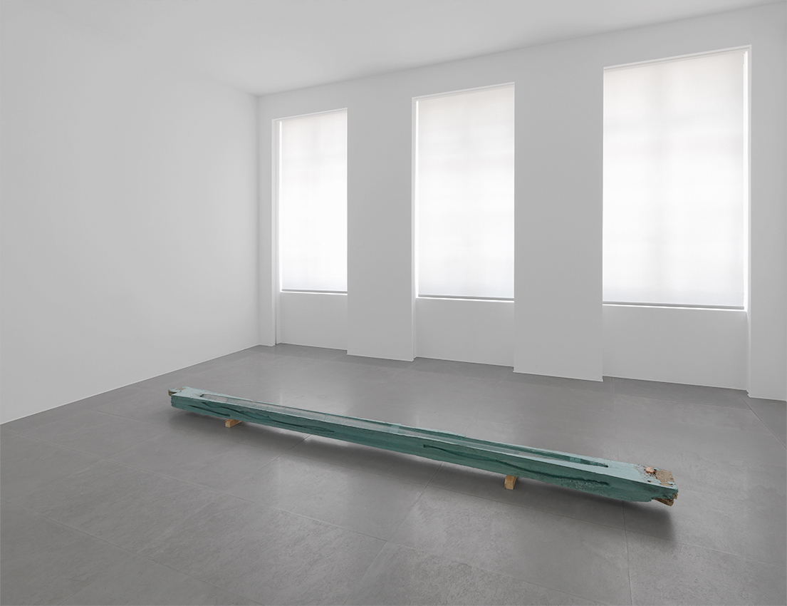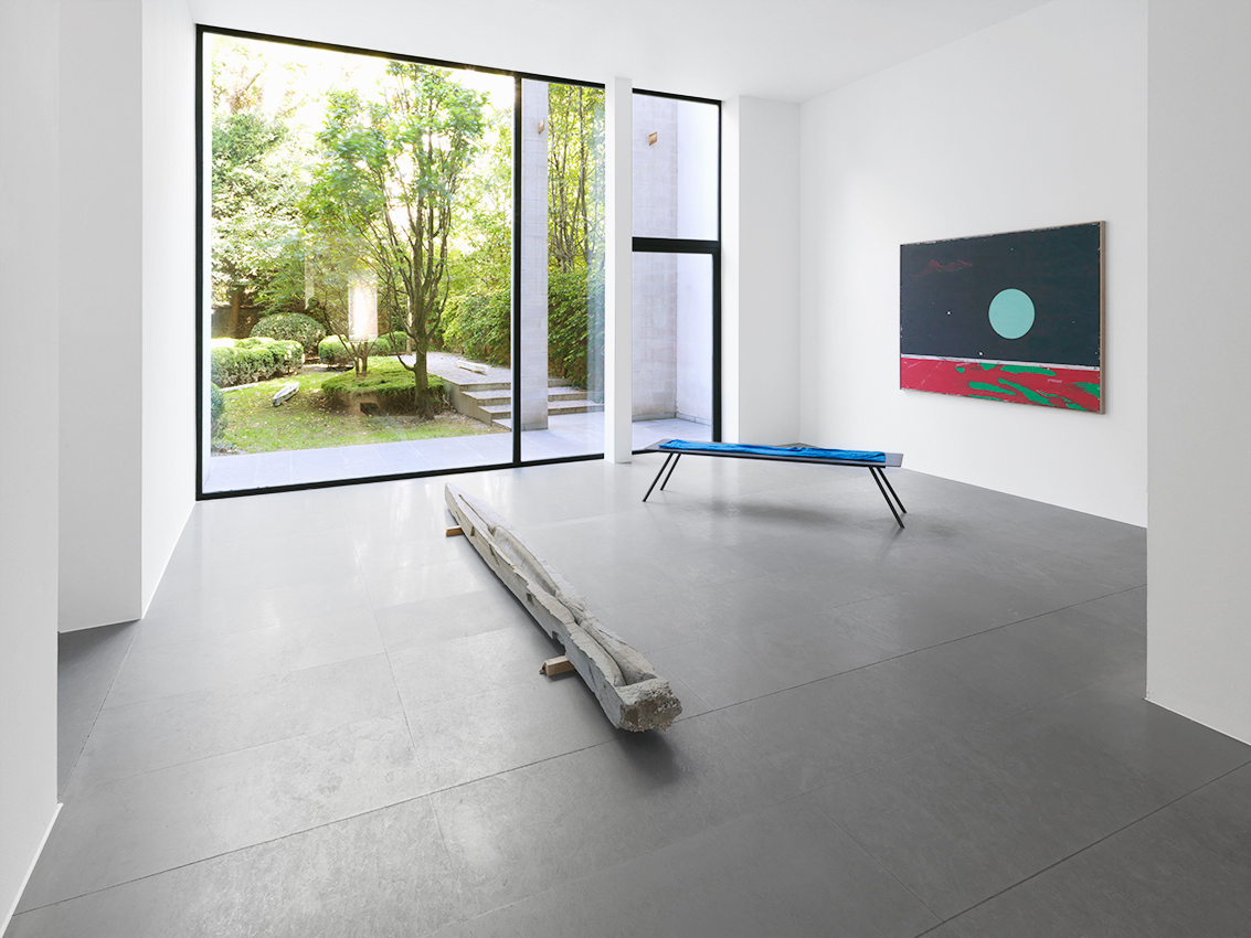 The freeing-up of the colors seems to go hand-in-hand with an emancipation of forms. In his earlier work, Ancart often scaled form down to a trace, an accident, a fleeting deposit of pigments, but he generally preferred geometric shapes. In his new sculptures, he extends his exploration of the fragile balance between shape and shapelessness, completeness and incompleteness, perfection and imperfection, through more organic silhouettes. Some of them conjure up the form of a fish or boat, while their hollow interior reminds us of the form of a canyon, or a drinking trough when filled with water.