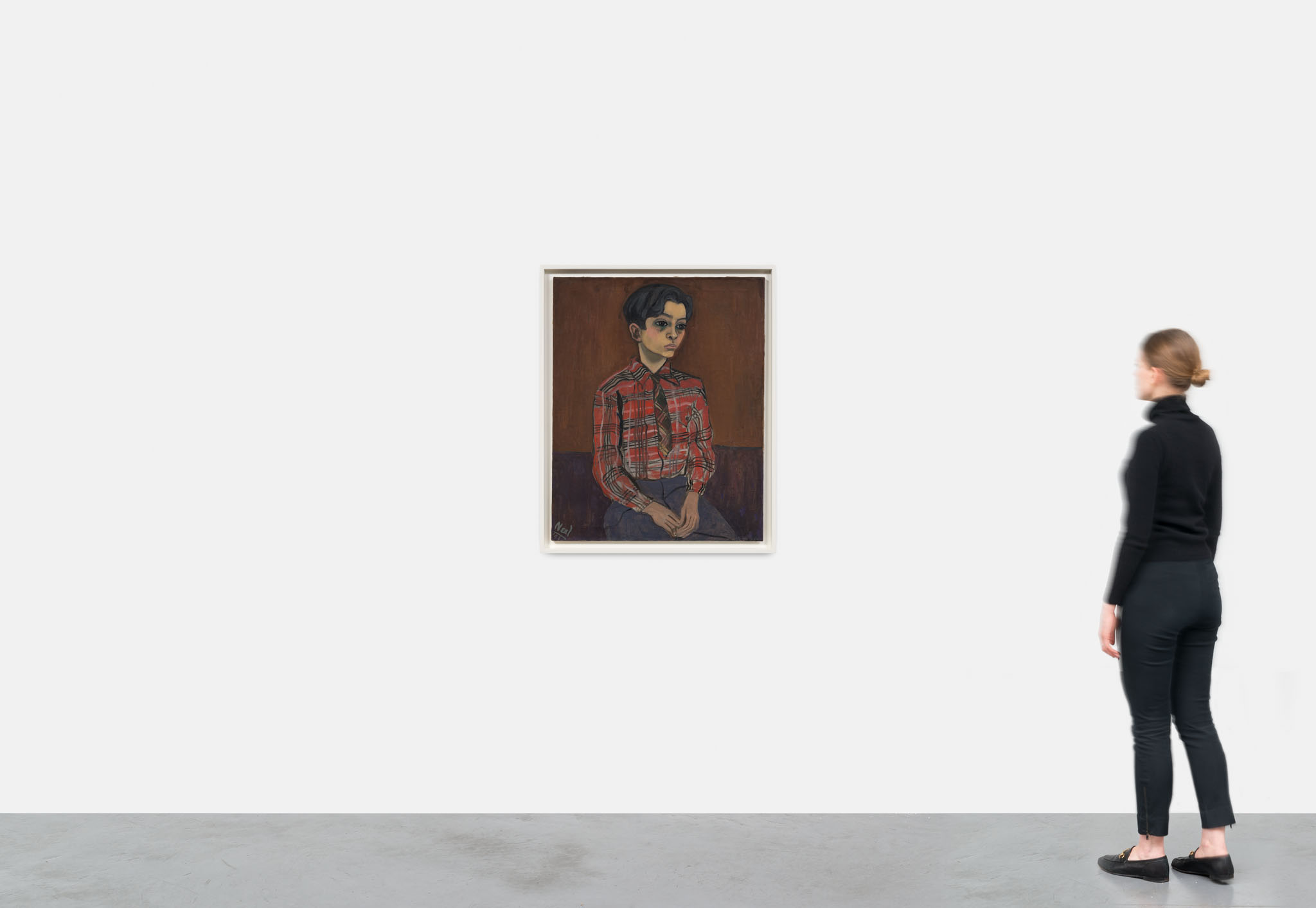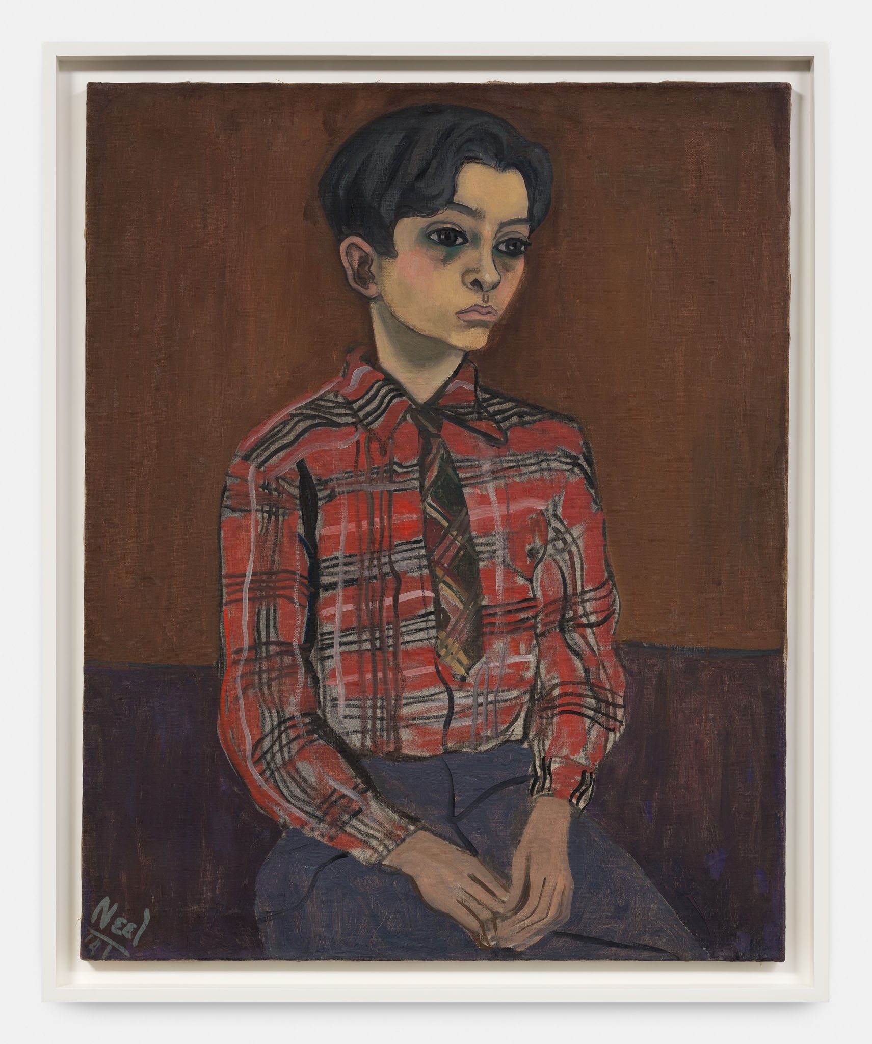 A contemporary of Louise Bourgeois, Alice Neel (1900-1984) is widely recognised as one of America’s most important twentieth-century portraitists. Like the latter, she was also fascinated by the female body, maternity and childbirth and explored these themes in visceral self-portraits and depictions of pregnant women, children, family groups and domestic scenes. The intimate nature of Bathing in a Furnished Room(1927) is typical of Neel’s realistic approach to day-to-day life and a rare survival from her earliest years: the artist lost most of her work from the 1920s when her former partner destroyed the contents of her studio in 1934. The two oils, Young Boy (1941) and Irene (1947), are later in date but executed in the same dark and earthy colours that characterise the beginning of her career.