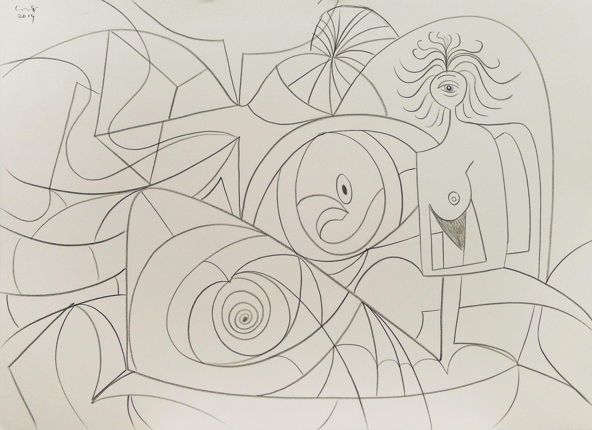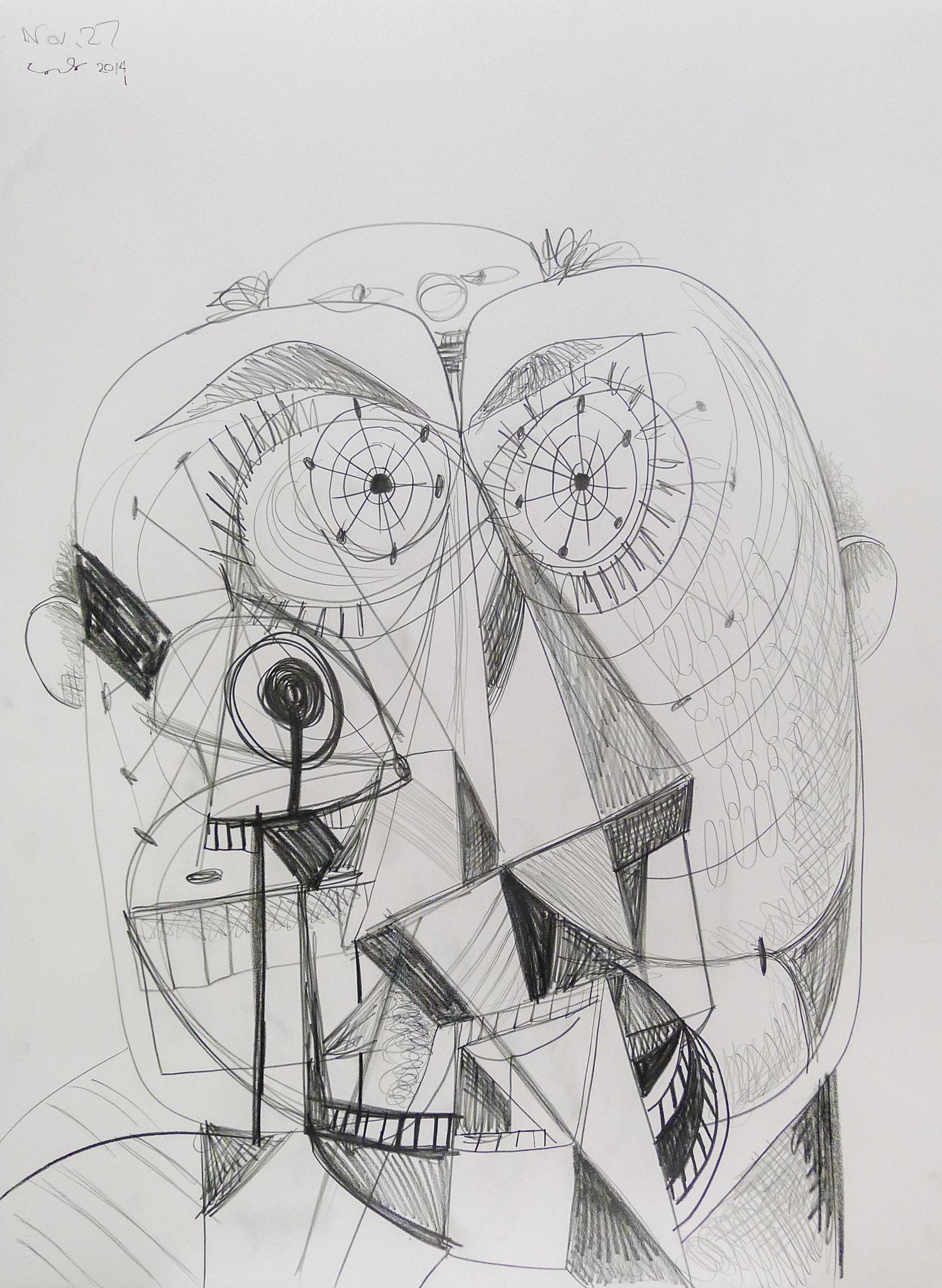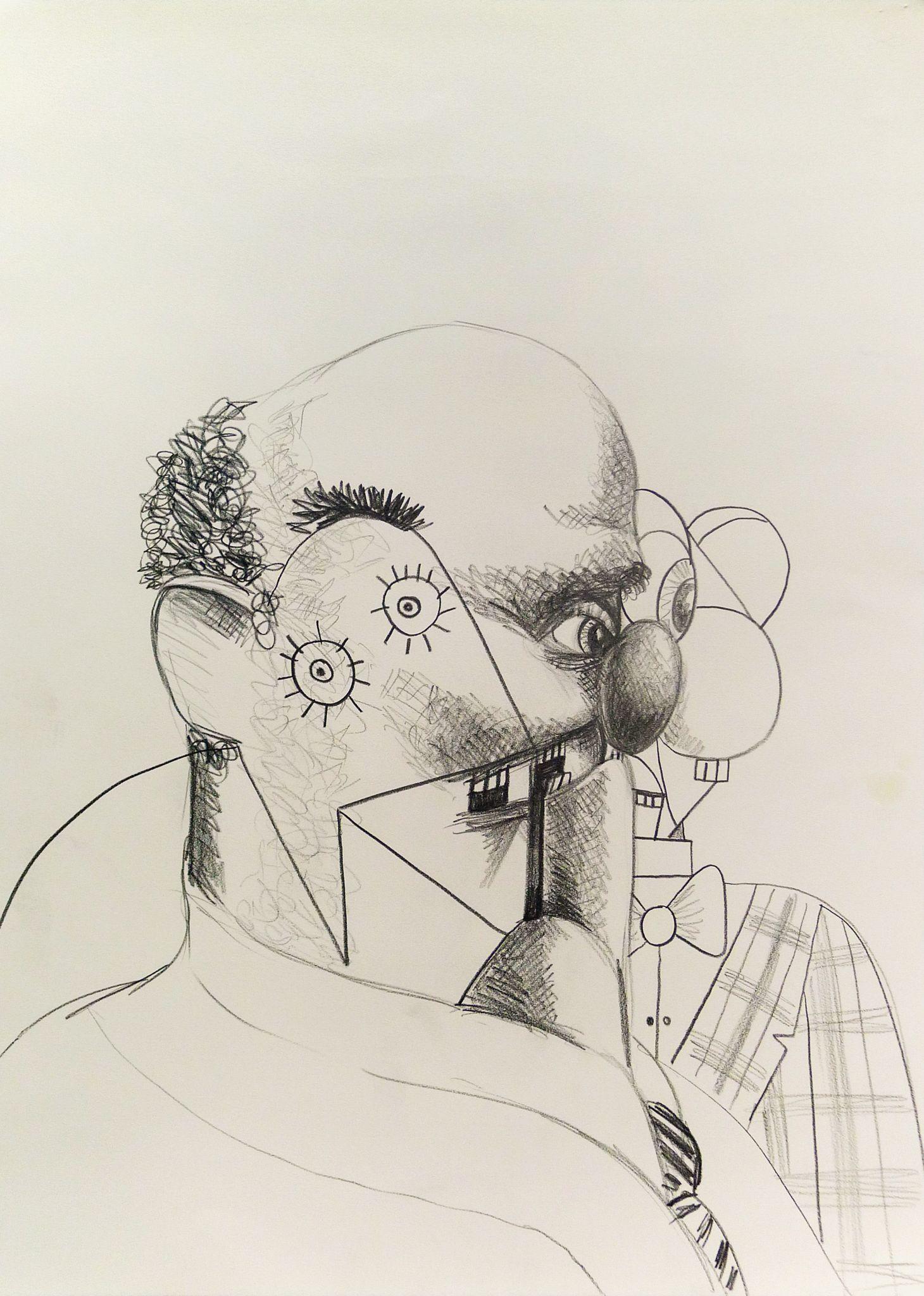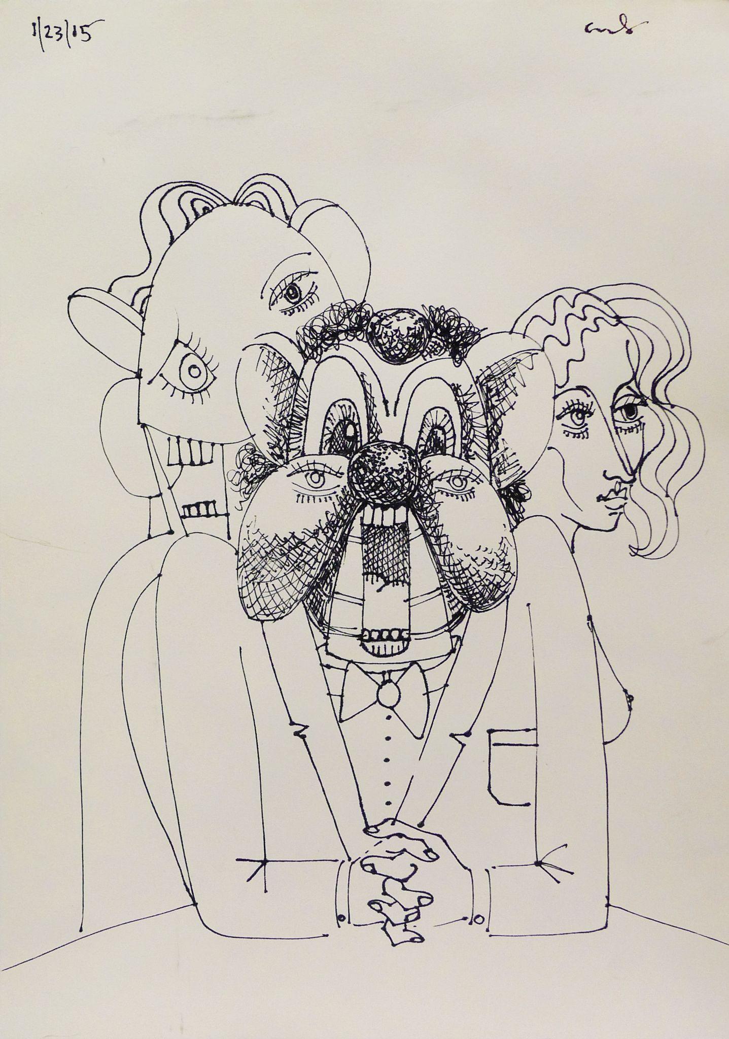 The formal correspondences between Condo’s drawings and Picasso’s cubist period are self-evident, although Condo prefers to define his own art as ‘psychological cubism’. He has said: ‘Picasso painted a violin from four different perspectives at one moment. I do the same with psychological states. Four of them can occur simultaneously… hysteria, joy, sadness, and desperation. If you could see these things at once that would be like what I’m trying to make you see in my art.’