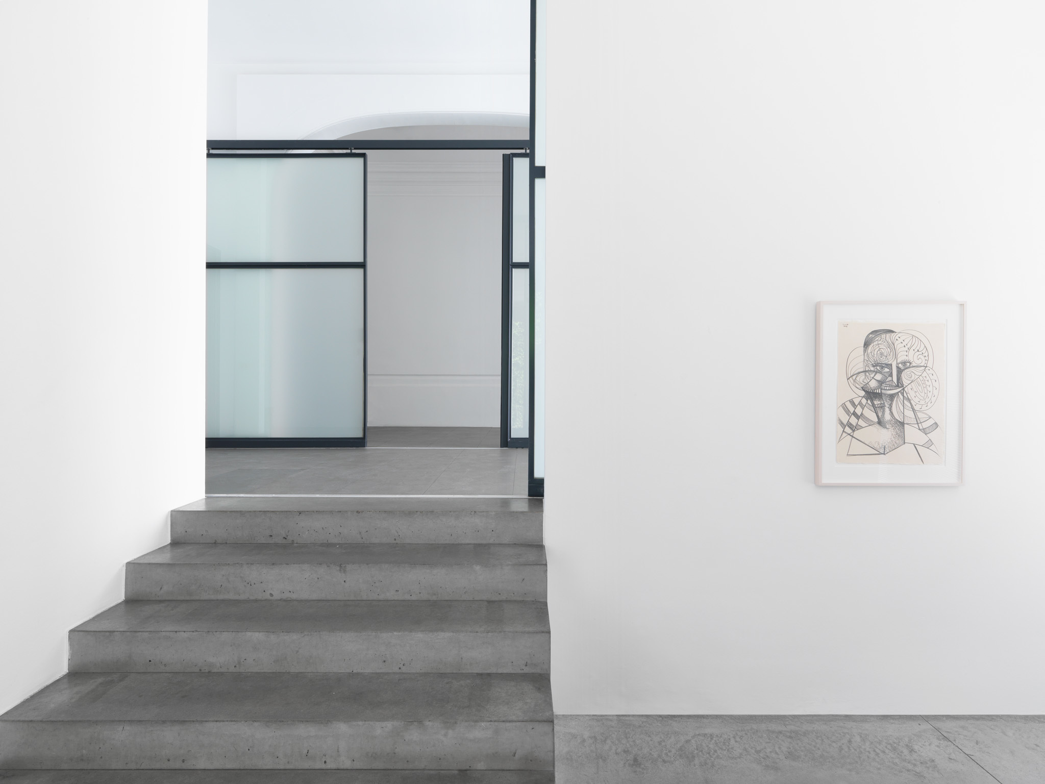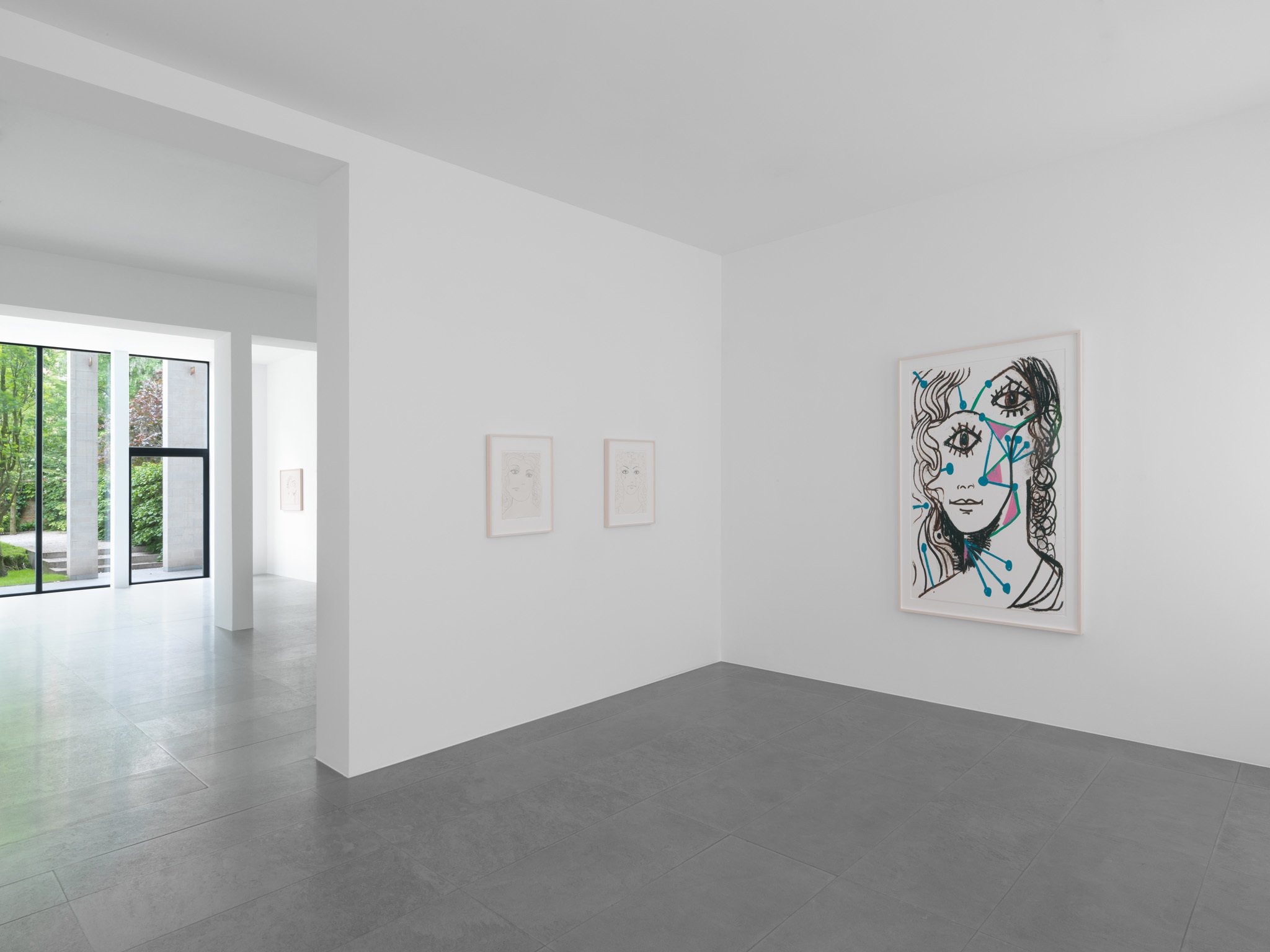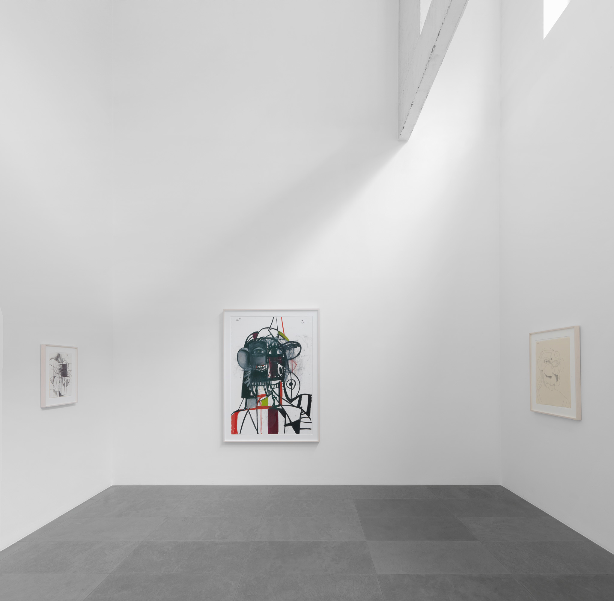 The works in this exhibition underscore the fundamental importance of drawing within George Condo’s practice. Ranging from bold, large-scale works in oil-stick, through to ink and pencil compositions of varying degrees of complexity, the drawings bear witness to the artist’s virtuoso handling of different scales, formats and media. While he rose to prominence as a painter, Condo is a consummate draftsman who does not believe in the traditional art-historical hierarchy that privileges oil painting over works on paper. Says Condo: ‘I want to reverse that, to stand up for drawing.’
