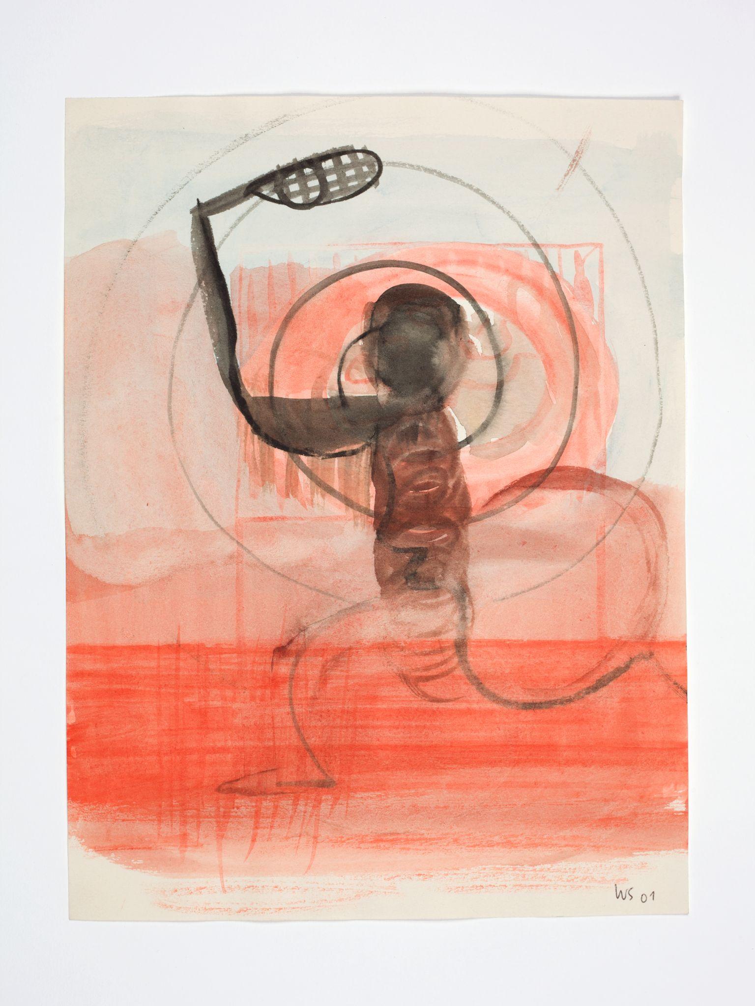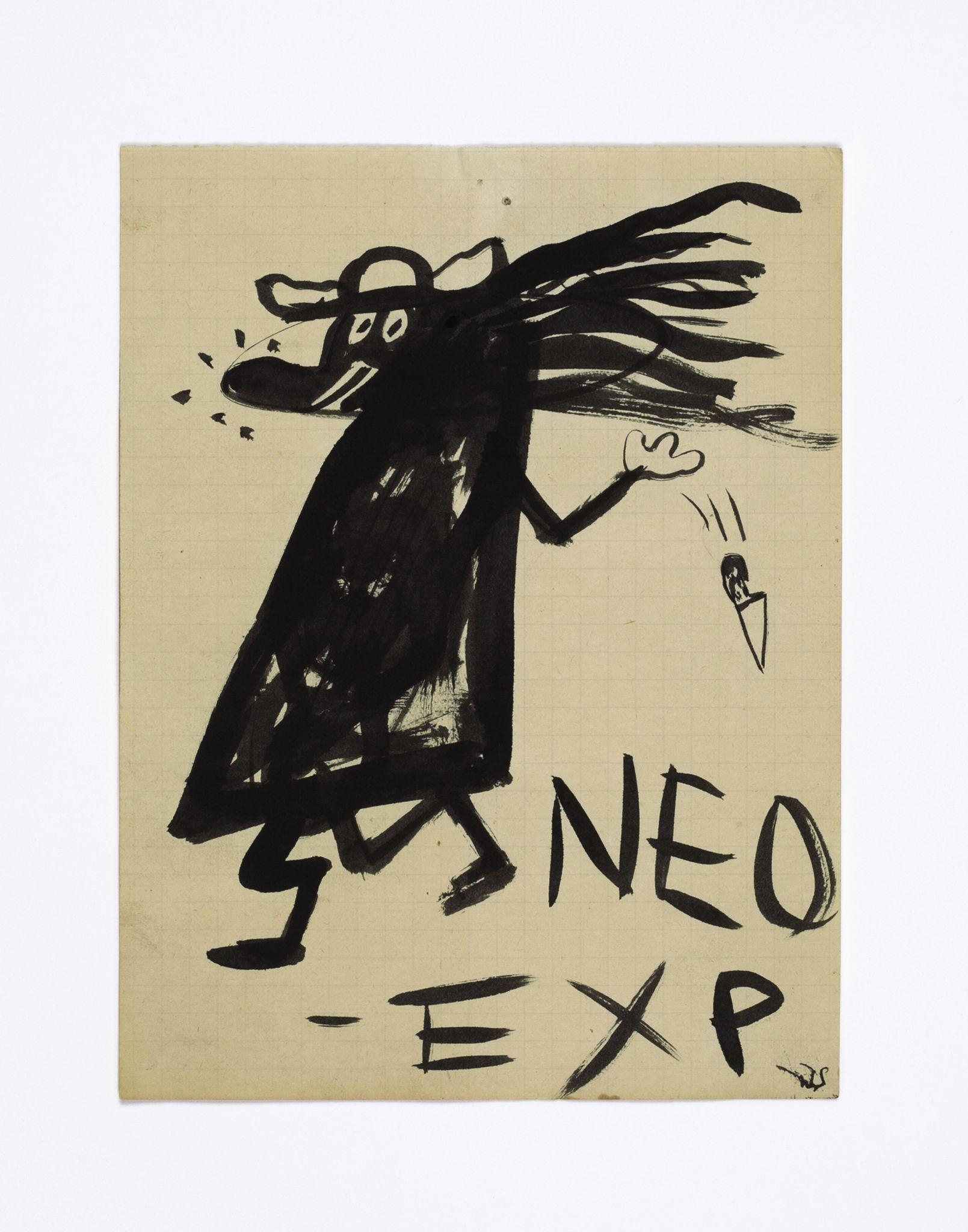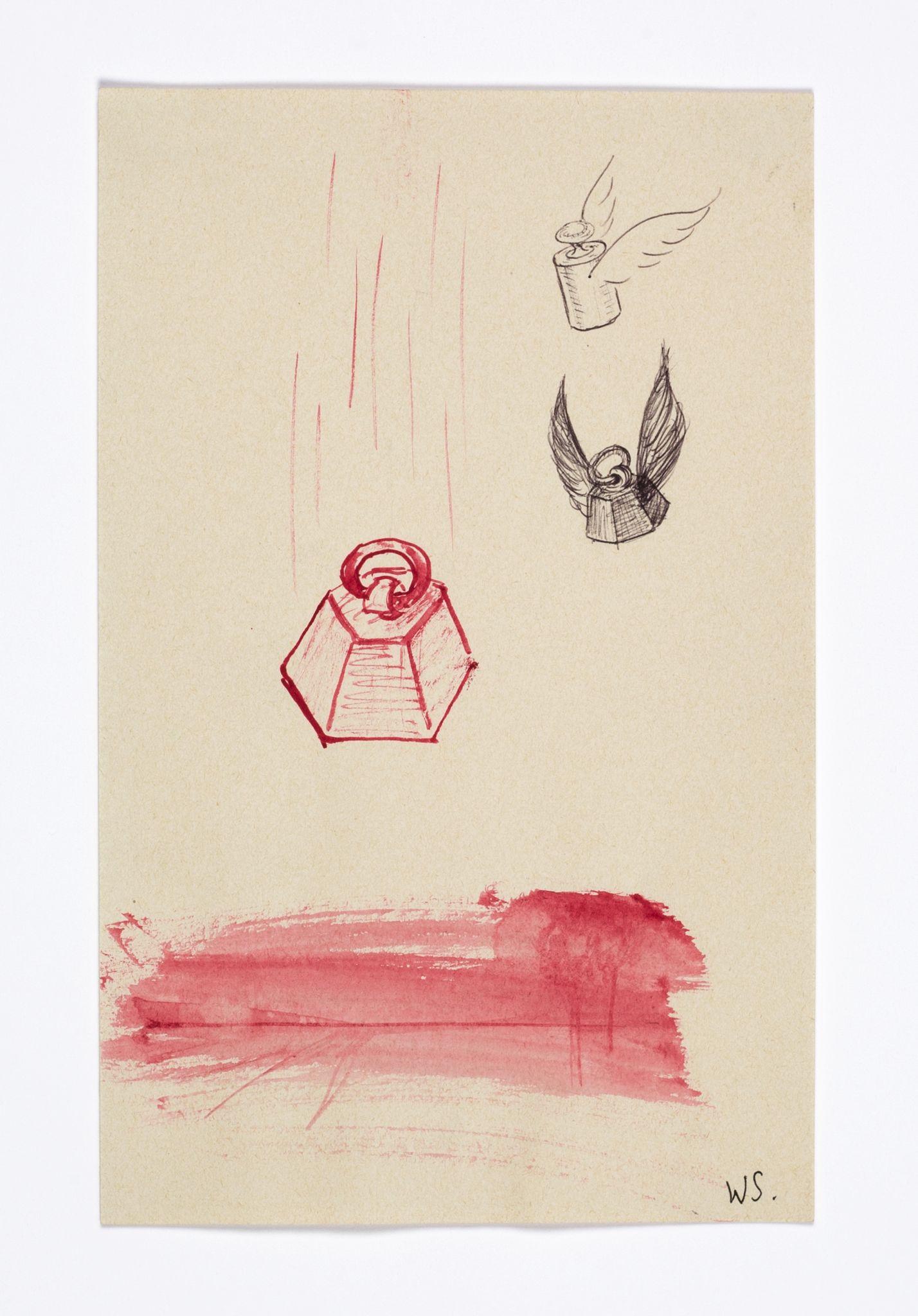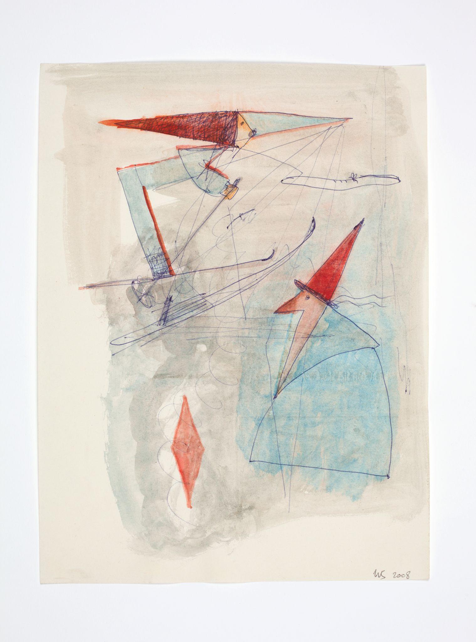 Walter Swennen is a painter and a draughtsman in equal measure. While his works in oil often engage with the complex questions inherent to the art of painting—its potential and limitations; what, why and how to paint — his works on paper can be read as the laboratory that not only fuels his ideas, but also points to possible answers. Like his paintings, Swennen’s sketches take the form of enigmatic compositions of recognisable elements: words, letters, pictograms, heraldic devices, strip cartoon figures, advertising slogans, geometric forms, animals, stereotypical characters and everyday imagery. Although this gives rise to obvious visual correspondences between certain paintings and drawings, and a sketch might form a springboard for a larger work, his graphics are always autonomous creations. Often executed in layers and in mixtures of pencil, ink, watercolour, pen or crayon, they can be viewed as a visual compendium of ideas, insights, discoveries, juxtapositions and associations.