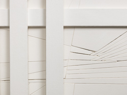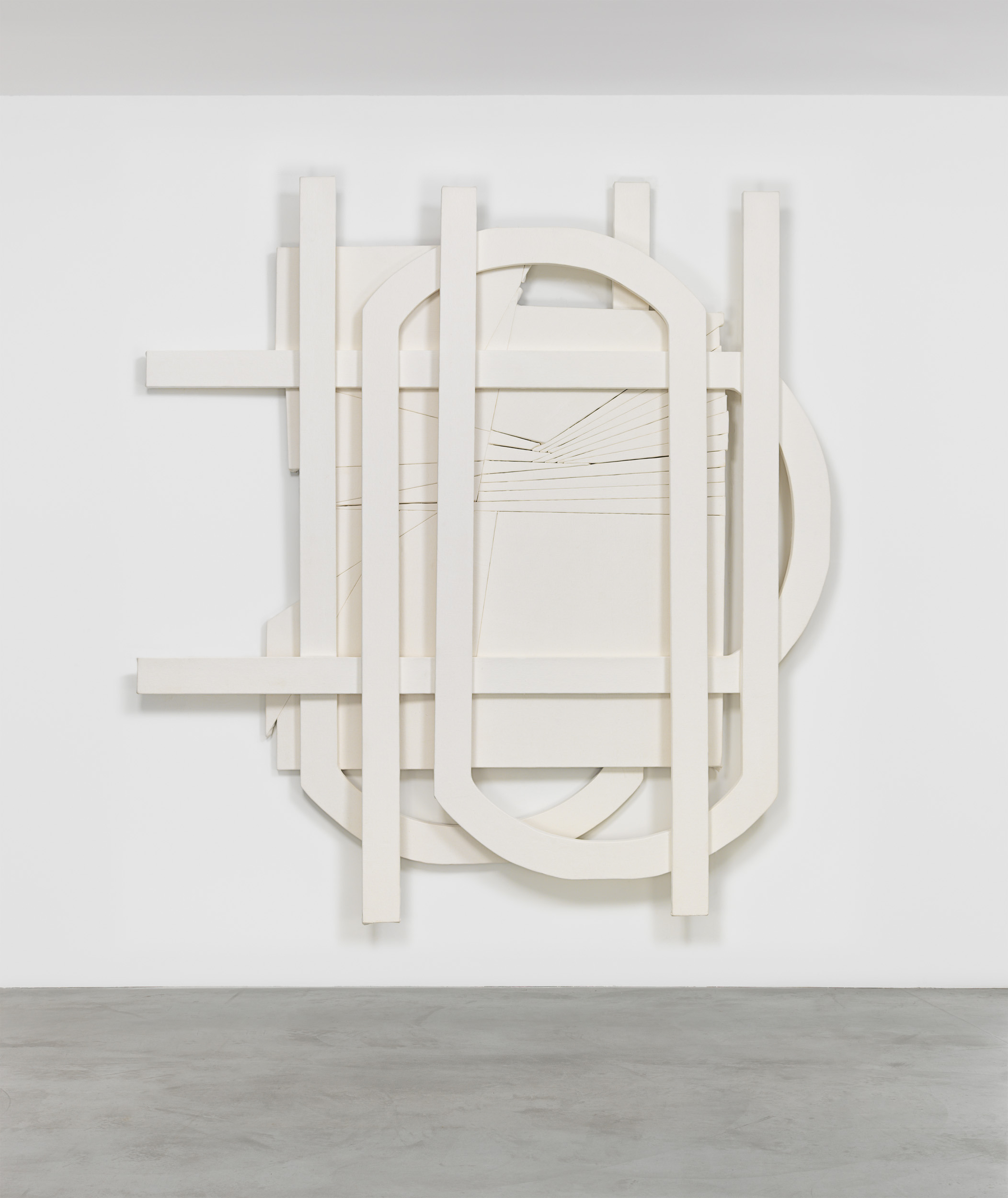 In his most layered work to date, American artist Wyatt Kahn brings his spatial investigation of painting into ever sharper focus. Working mainly in wood, lead and canvas, he creates complex, three-dimensional compositions in which typically sculptural concerns – positive and negative space, depth and shallowness, shadow and light – play a determining role. Comprising large-format reliefs and related graphic works, his new exhibition explores the ideas of fragmentation and cohesion.