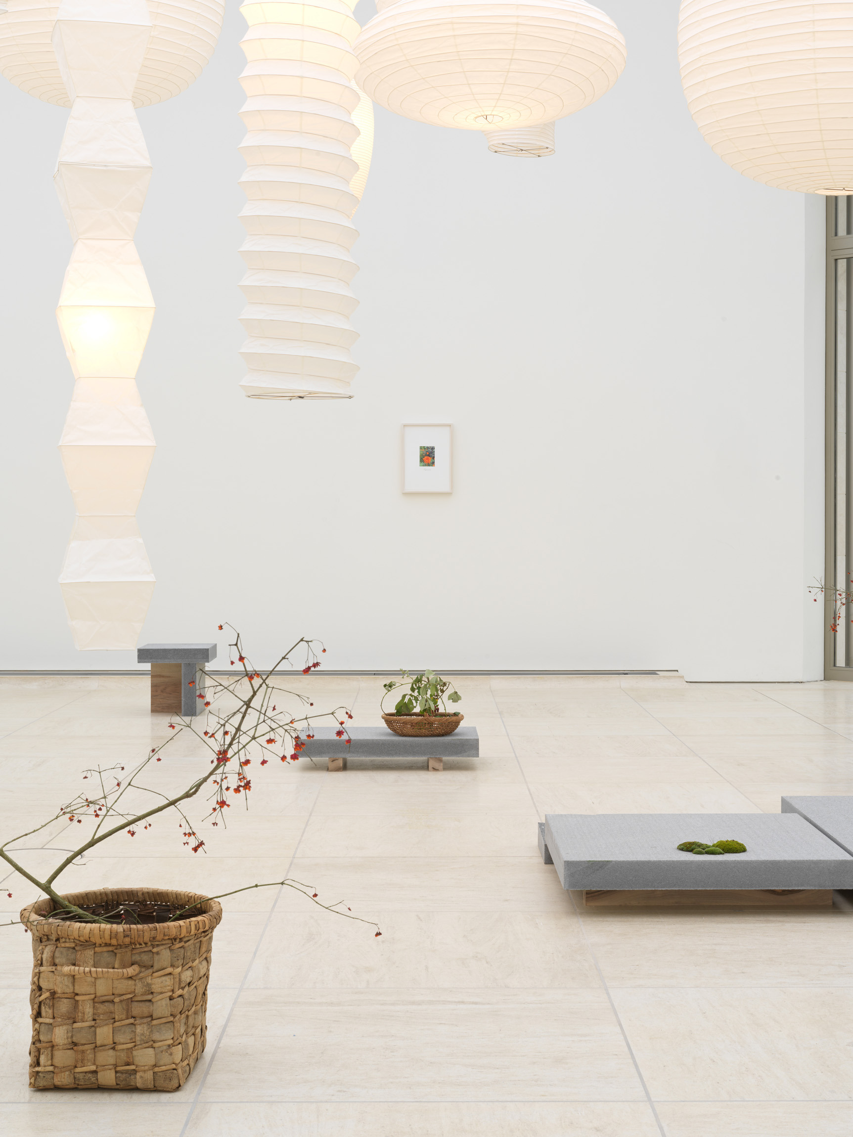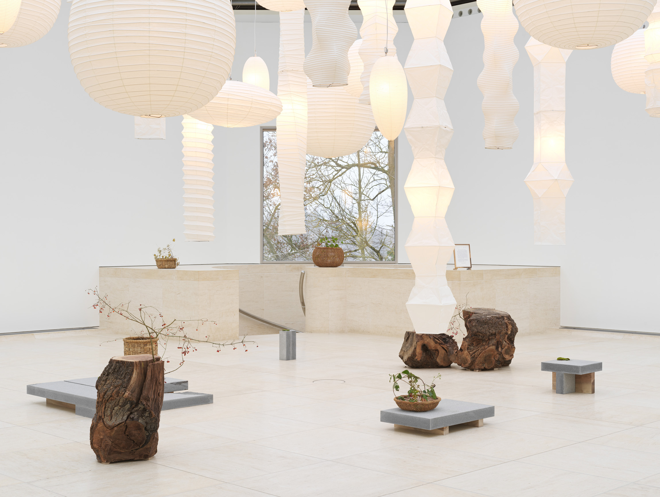 For his exhibition in Mudam’s Henry J. and Erna D. Leir Pavilion, artist Danh Vo (b. 1975, Bà Rja, Vietnam) continues his ongoing meditation on the work of sculptor Isamu Noguchi (b. 1904, Los Angeles – d. 1988, New York City). This new installation is composed by Vo as an intimate dialogue between his own practice and the work of this historical figure of modern art. Noguchi’s cultural identity as a Japanese American, which found expression in a formal experimentation that crossed eastern and western cultures, resonates with formal, thematic and conceptual preoccupations around origins and cultural translation that run through Vo’s sculptural works and installations. Considering the pavilion’s architectural features – its height and light as well as its exterior setting, the Park Dräi Eechelen – Vo has created a conceptual garden comprising a selection of Isamu Noguchi’s historic Akari lamps and a new mineral- and plant-based installation by Vo.