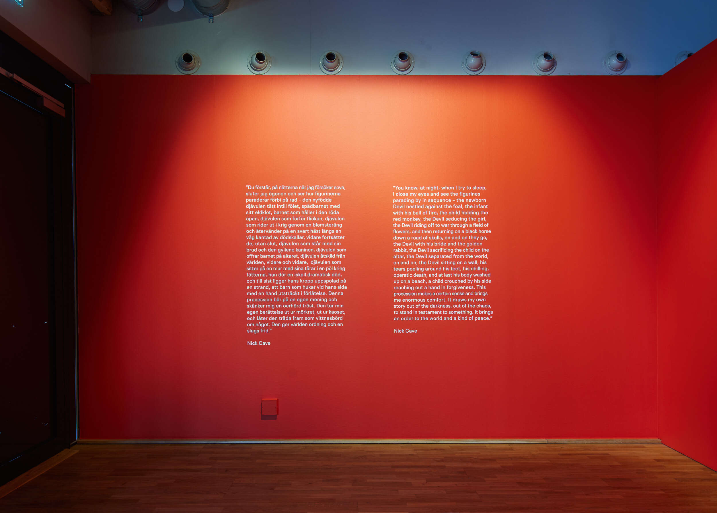 The Devil – A Life ceramic series is inspired by Victorian Staffordshire figurines, which depicted everyday and biblical scenes in miniature. In Nick Cave's series, the figurines form a coherent narrative in 17 stations, where the devil is portrayed as a deeply human, imperfect, and vulnerable character. The story follows him through childhood, love, family, tragedy, and regret, culminating in the final figurine, The Devil Forgiven.