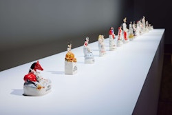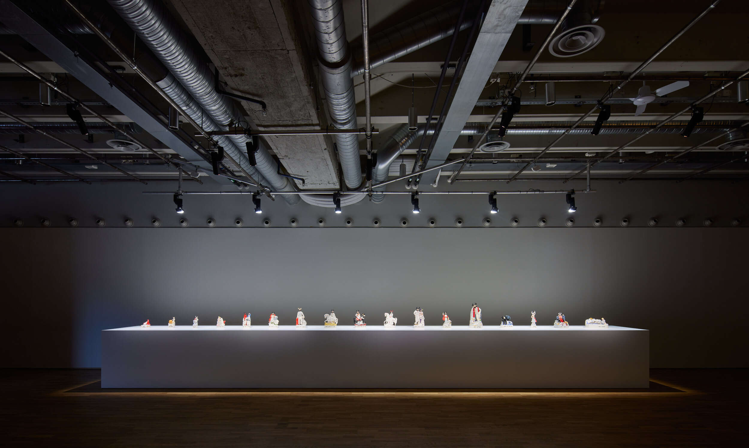 The series of 17 ceramic figurines is on loan from Museum Voorlinden in the Netherlands and was first exhibited at Xavier Hufkens in Brussels.