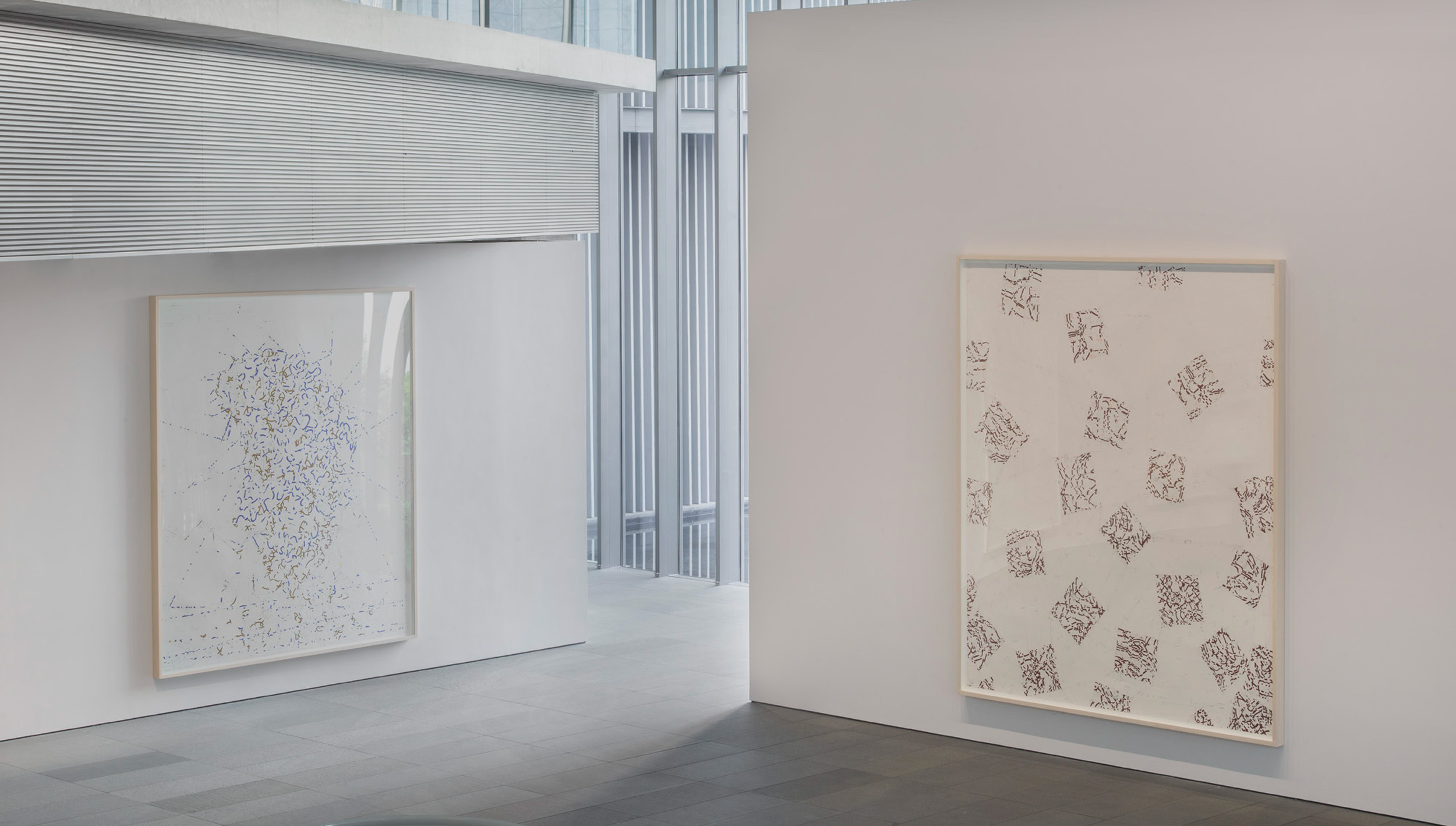 For Horn, drawing is a primary activity that underpins her wider practice. Her intricate works on paper examine recurring themes of interpretation, mirroring and textual play, which coalesce to explore the materiality of color and the sculptural potential of drawing. Horn’s preoccupation with language also permeates some of her drawing. Words are her images and she paints them expressionistically, which—combined with her method—causes letters to appear indeterminate.