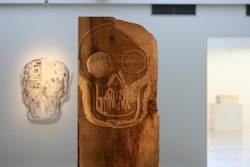 Also presented in public for the first time, a range of sculptural works by Brad Pitt includes – amongst other works – a molded plaster panel depicting a gunfight narrative scene, cast using multiple impressions of the human body, as well as a series of plinth-mounted, house shaped sculptures molded in clear silicone that each have been shot with a different gauge of ammunition, revealing its trajectory and freeze framing the destructive motion. Another house structure – Pitt’s first ever sculpture, entitled House A Go Go (2017) – is a 46 cm tall composite of timber off-cuts.