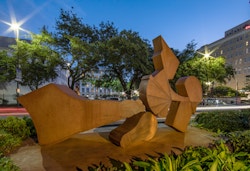 Parade, a monumental piece by New York City-based artist Wyatt Kahn, is the fourth sculpture this year to be installed. Located on the Poydras Street neutral ground between Carondelet Street and St. Charles Avenue, it combines abstract figures with everyday objects. Crafted from Cor-ten steel, creating a striking rust-colored exterior, it weighs over 3,300 pounds and measures more than 15 feet wide. Parade features a surreal geometrical shape alongside a large foot and a lightbulb, an interplay that encourages a reflection of the dynamic relationship between art and everyday existence; and challenges us to reconsider the transformative power of familiar objects when reimagined as sculptural expressions.